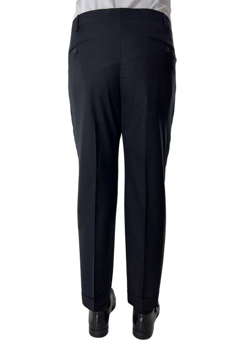 Pantalone uomo nero chiusura prolungata doppia pinces in fresco lana super 130’s Vitale Barberis Canonico
