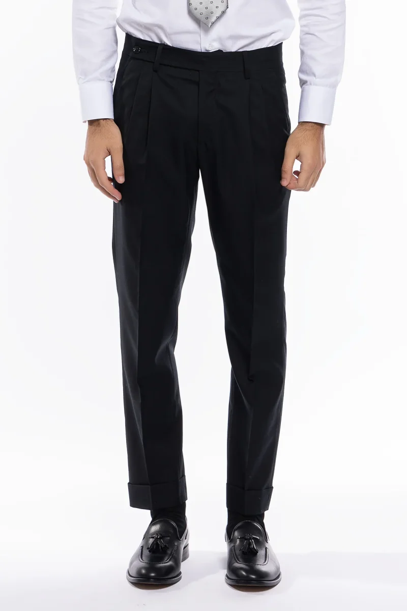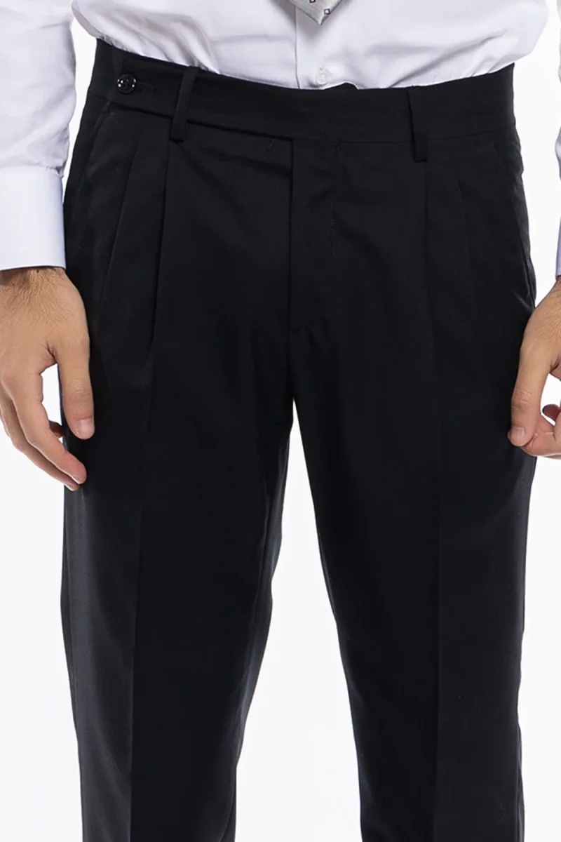 PANTALONE UOMO NERO CHIUSURA PROLUNGATA doppia pinces