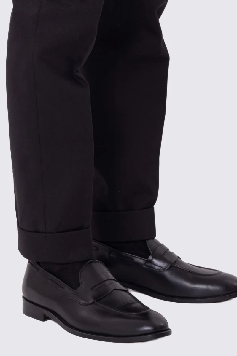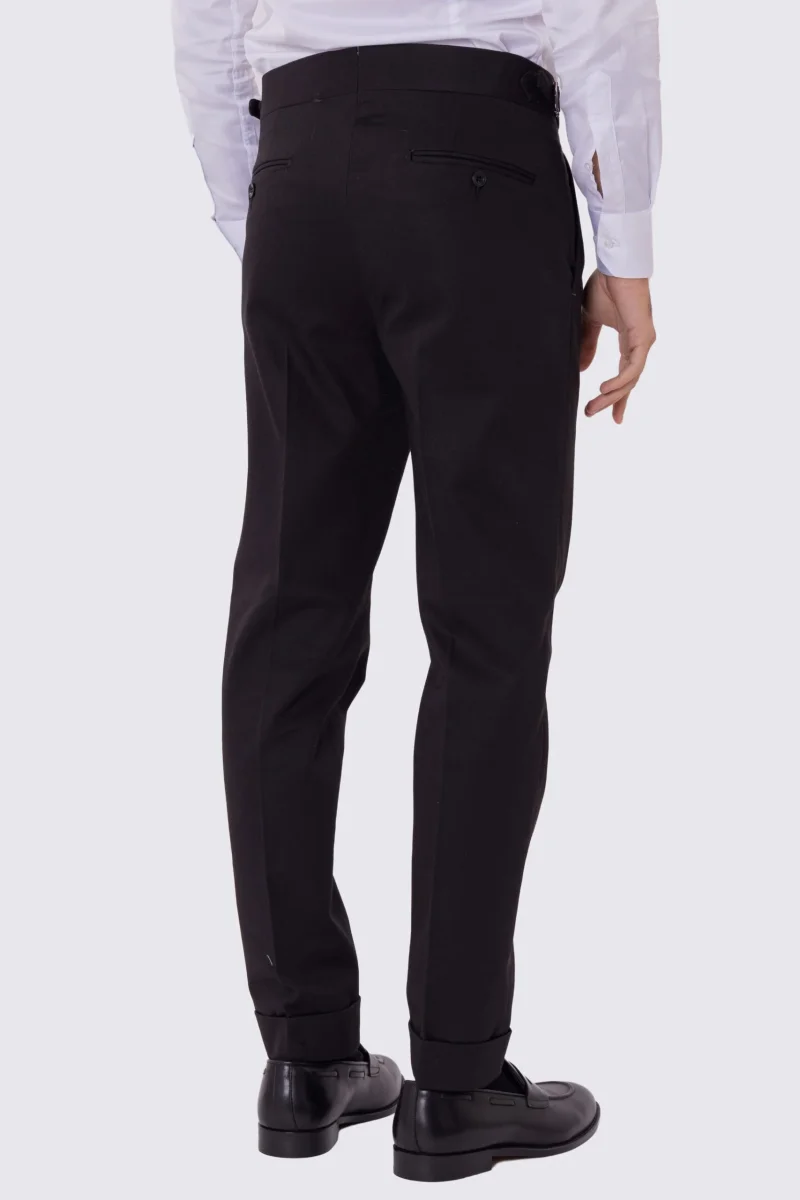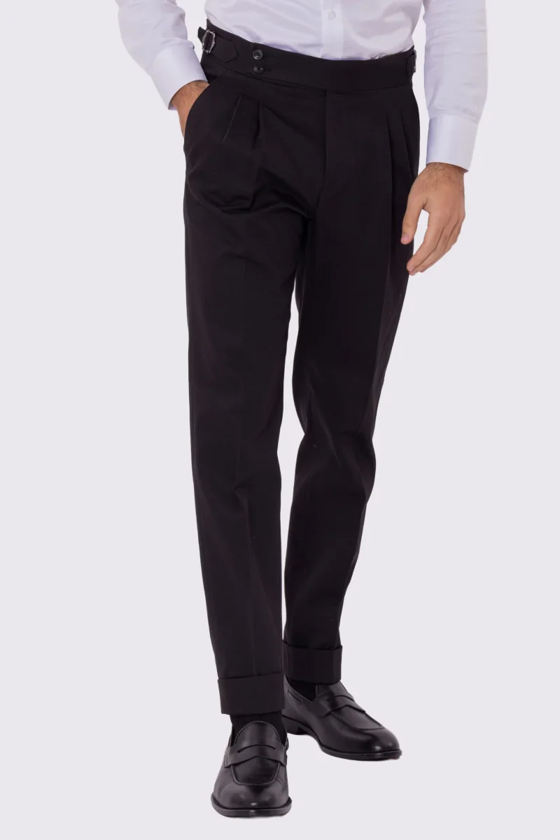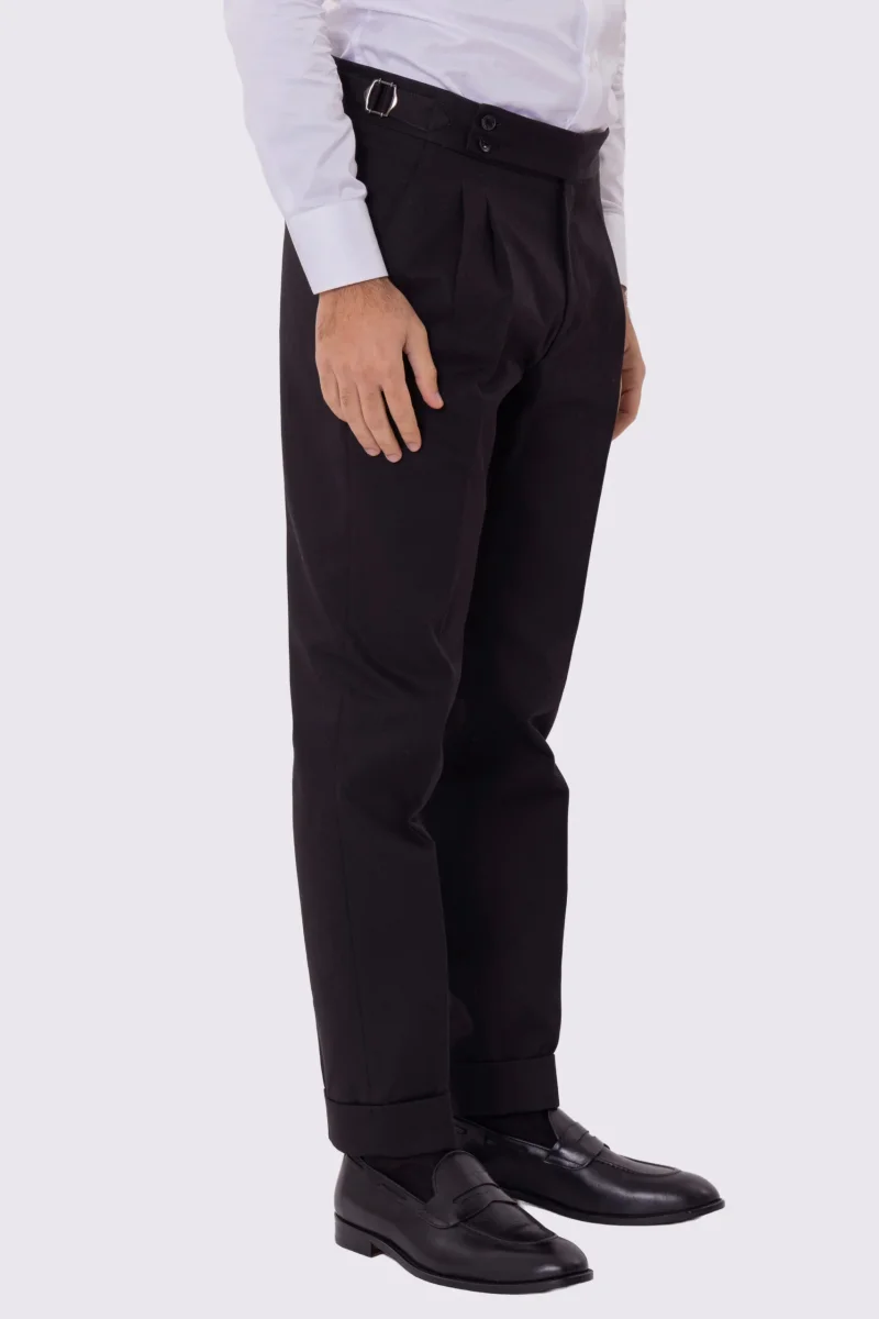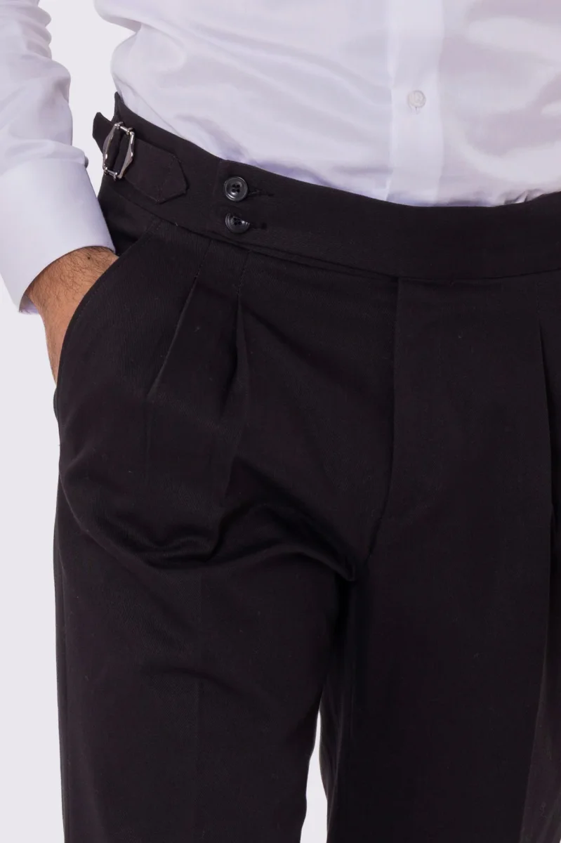 Pantalone uomo Nero vita alta con fibbie laterali e doppia pinces tasca america in lana flanella mista 290gr invernale risvolto 5cm made in italy