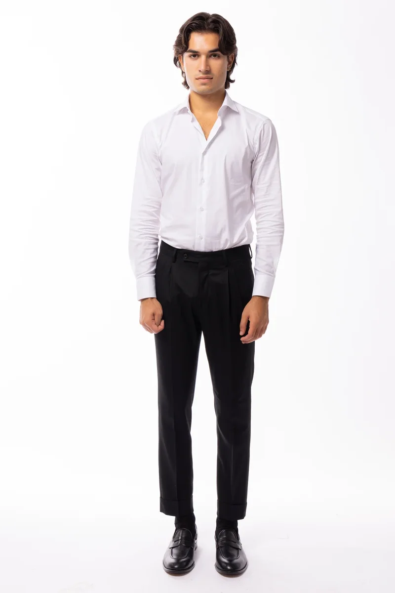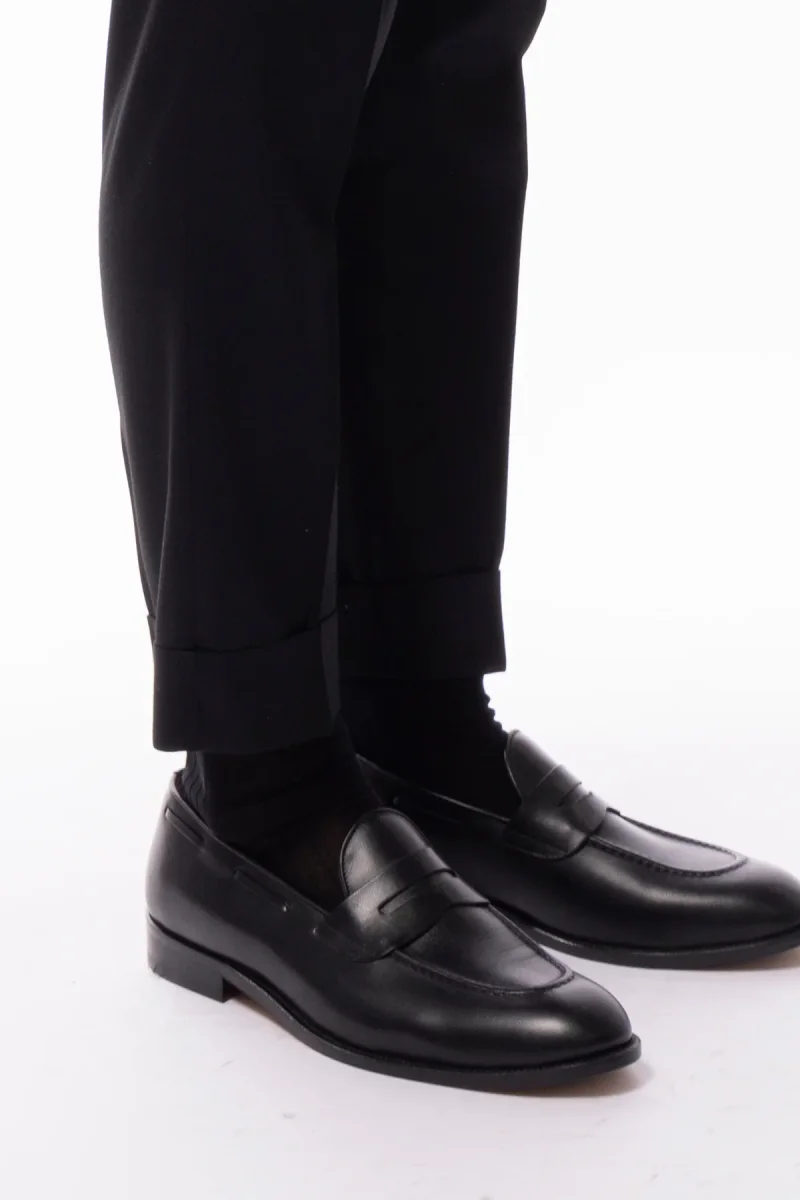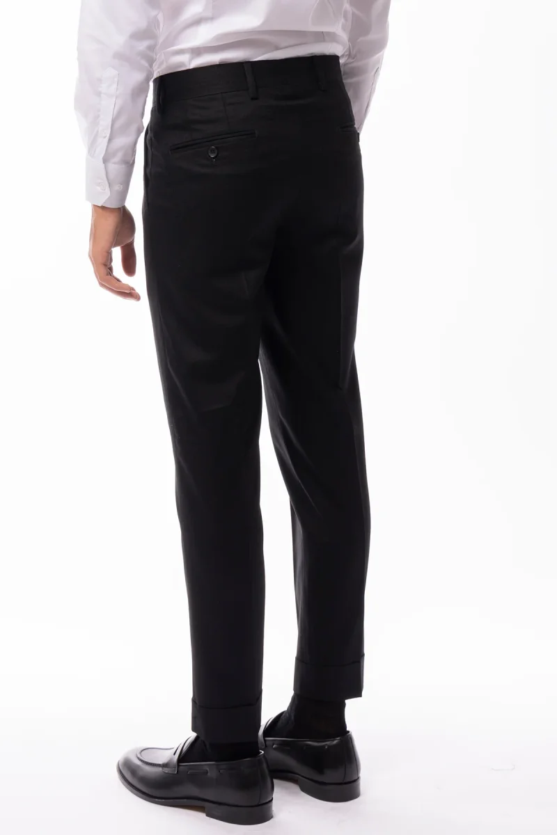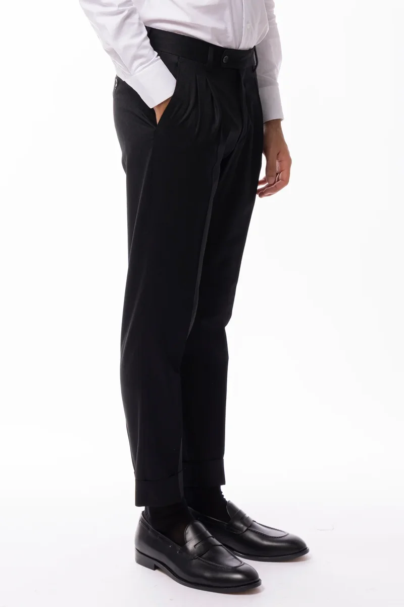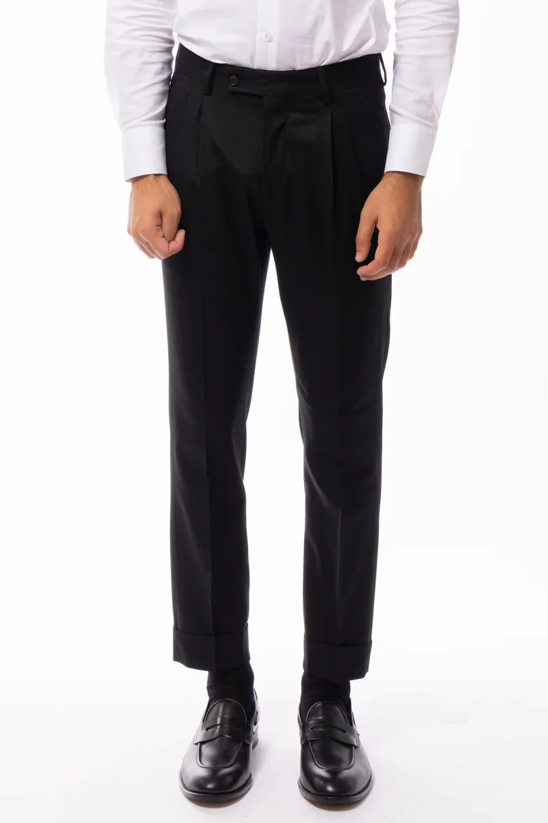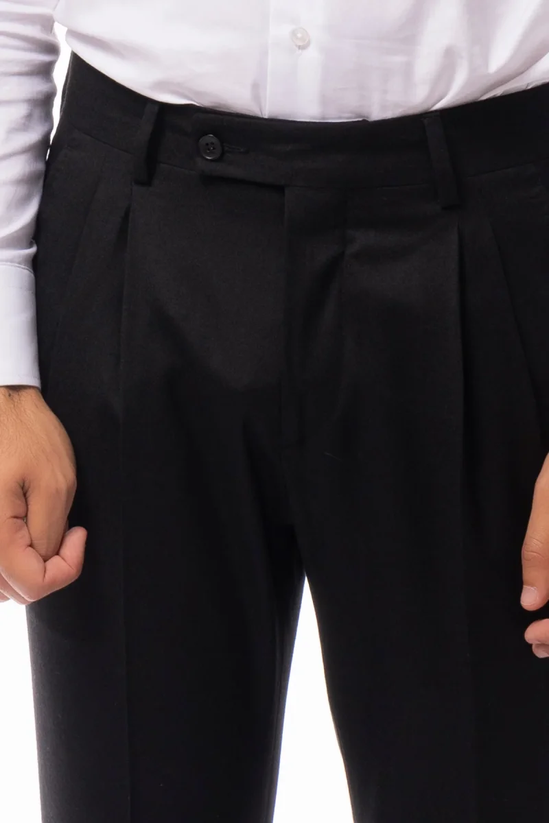 Pantalone uomo nero vita alta tasca america in lana flanella con doppia pinces Vitale Barberis Canonico