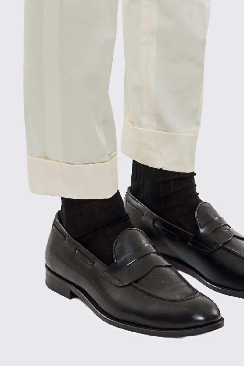 - Risvolto 5cm al fondo della gamba: dettaglio sartoriale che aggiunge carattere e valorizza le calzature.