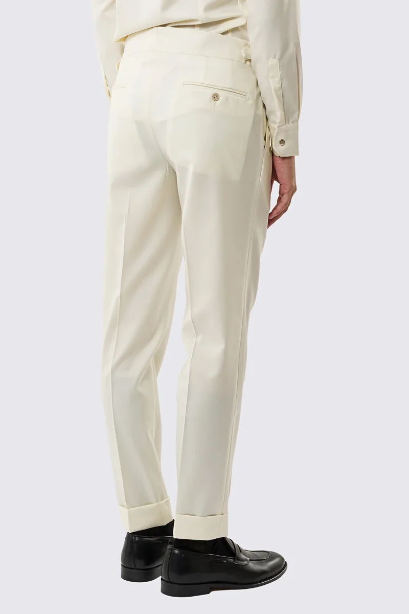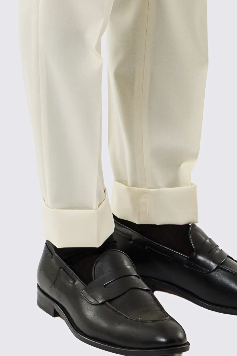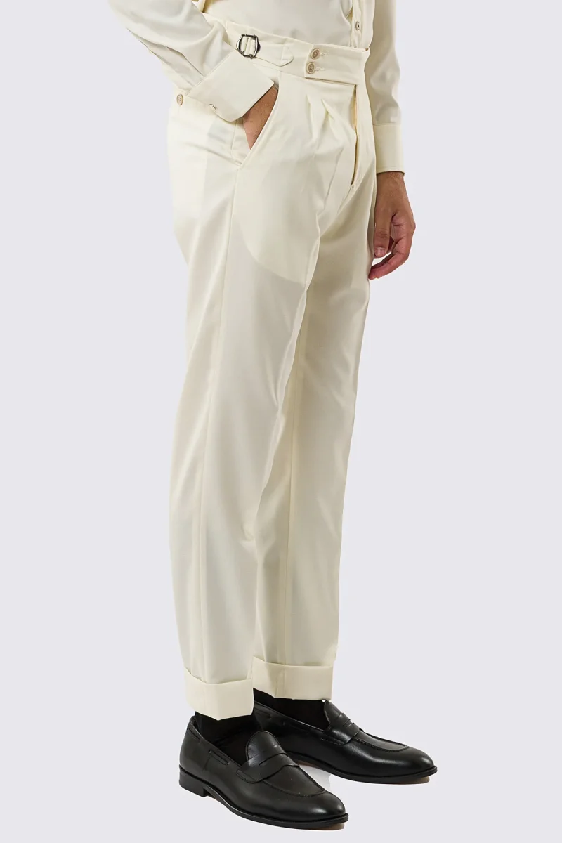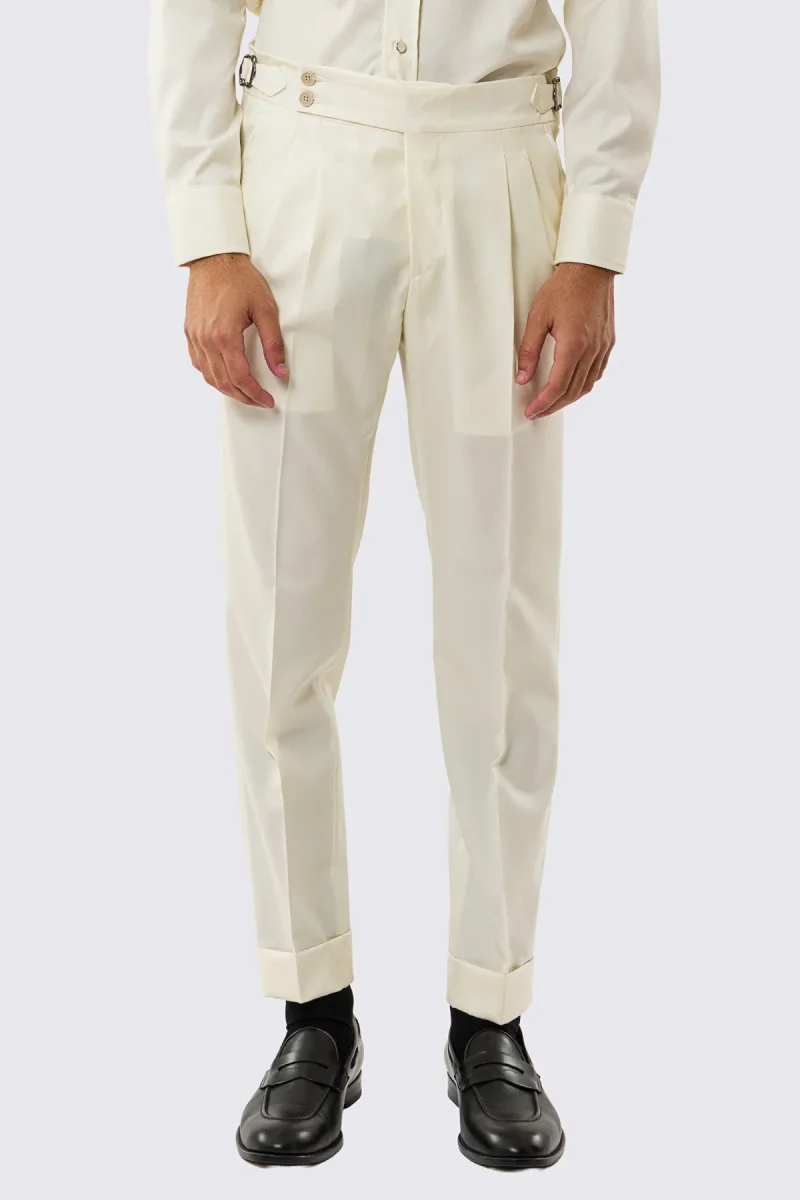 Pantalone uomo Panna vita alta con fibbie laterali tasca america in fresco lana 100% Vitale Barberis Canonico risvolto 5cm