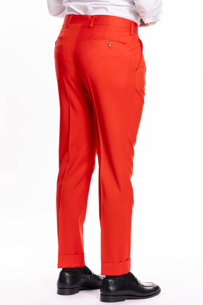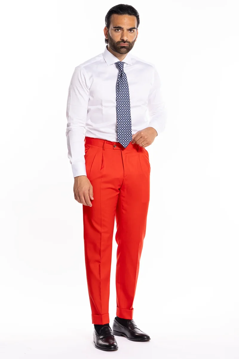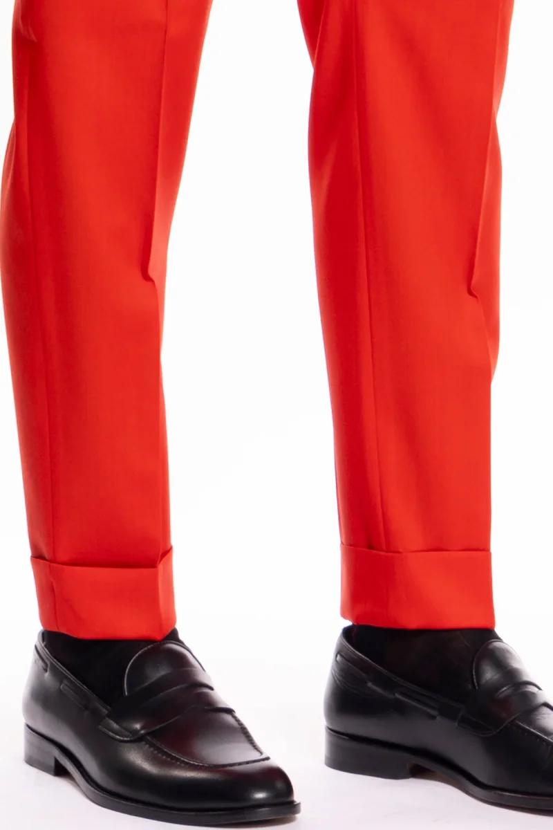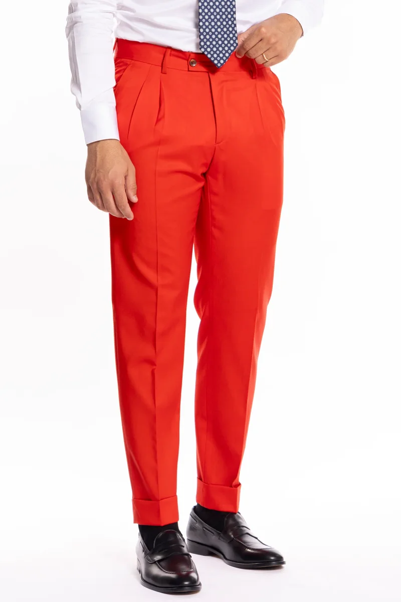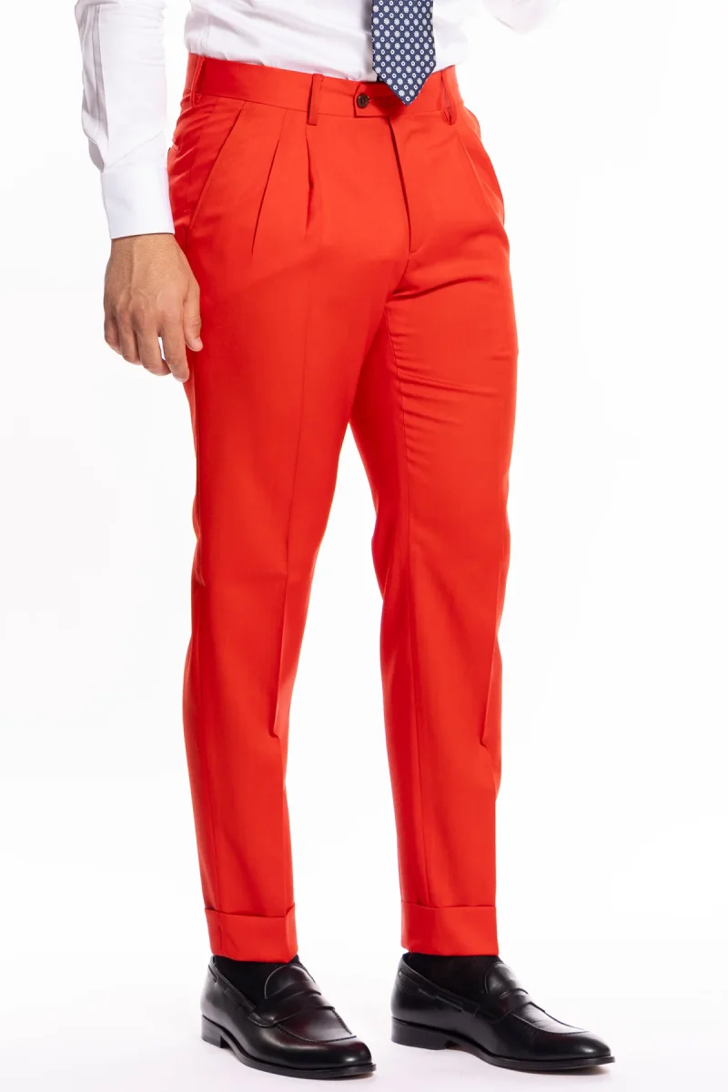 Pantalone uomo rosso fresco lana super 130’s Bristol Tessuti Napoli tasca america con una pinces e risvolto di 4cm