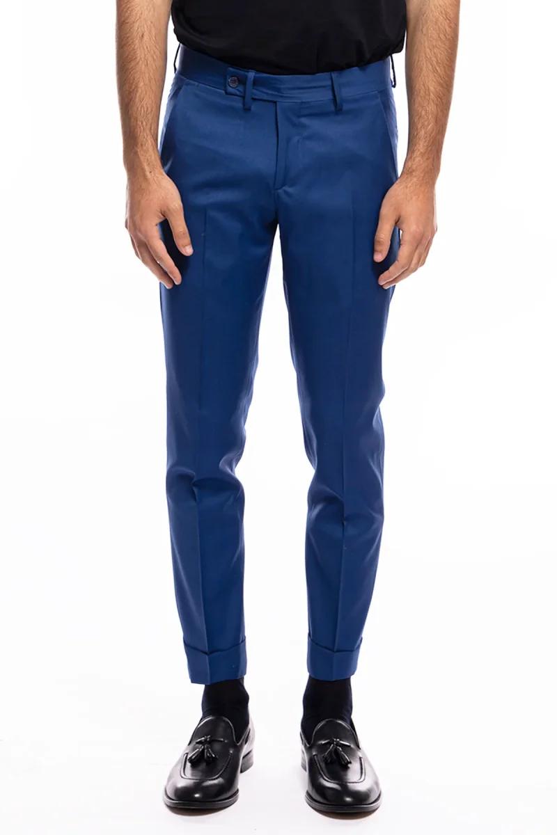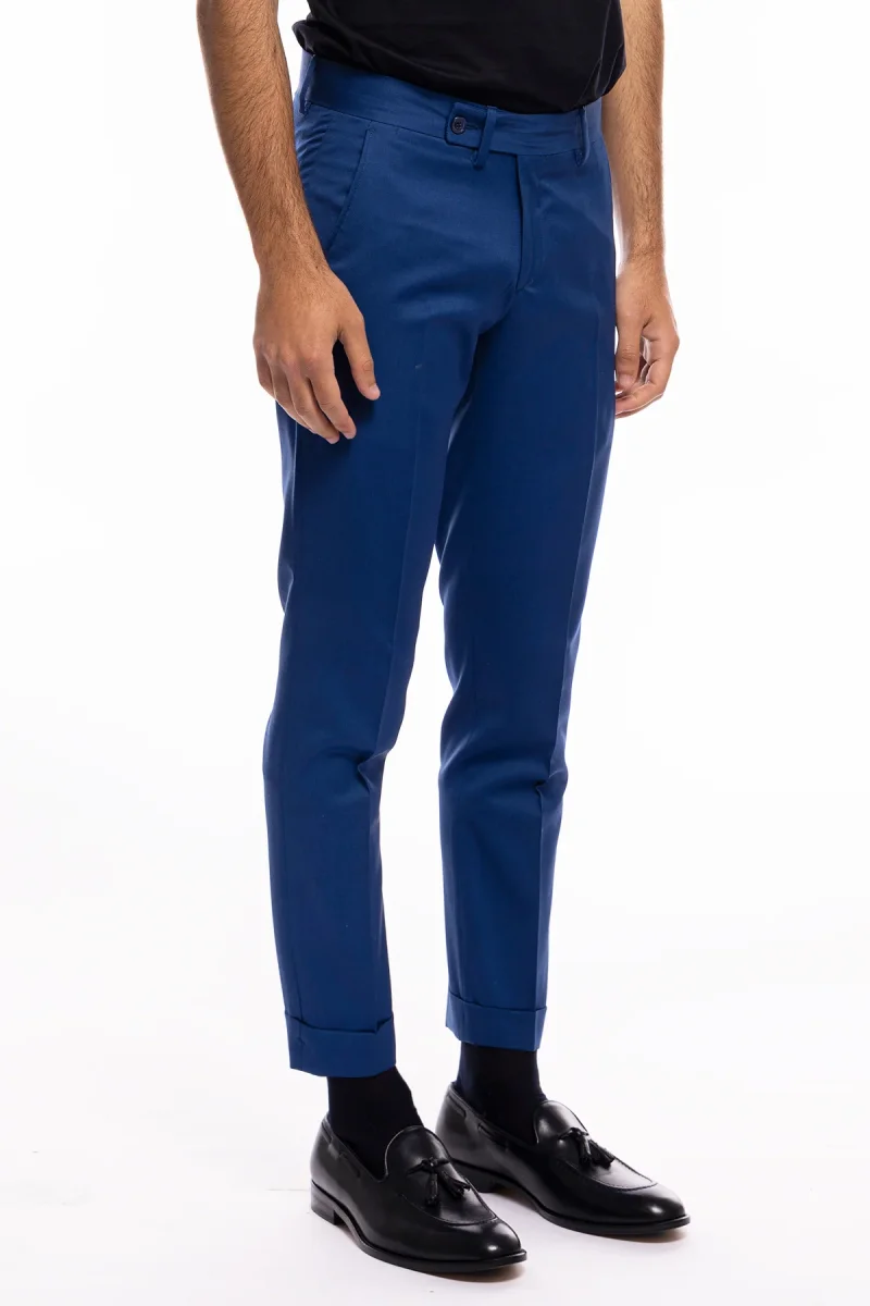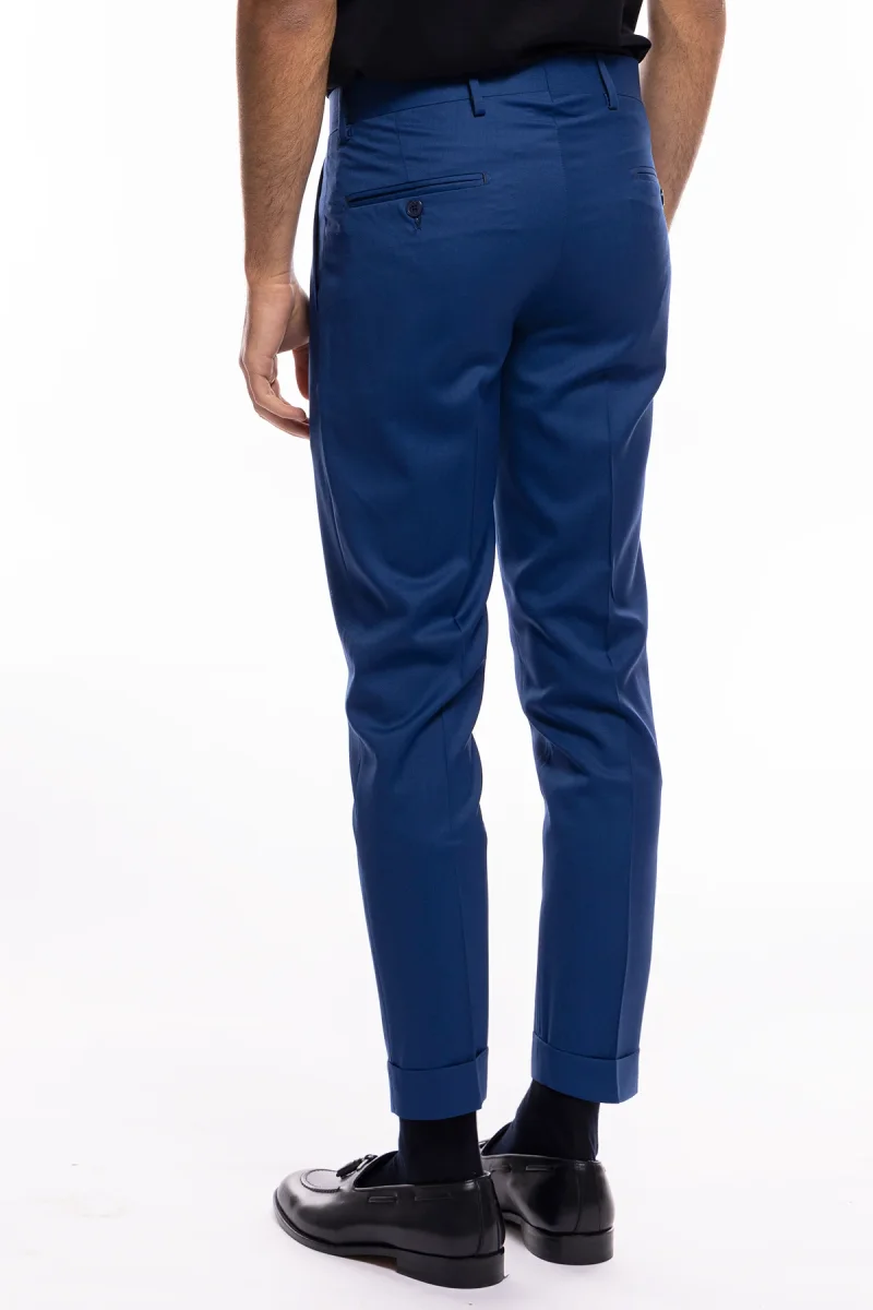 PANTALONE UOMO ROYAL BLU TASCA AMERICA IN FRESCO LANA