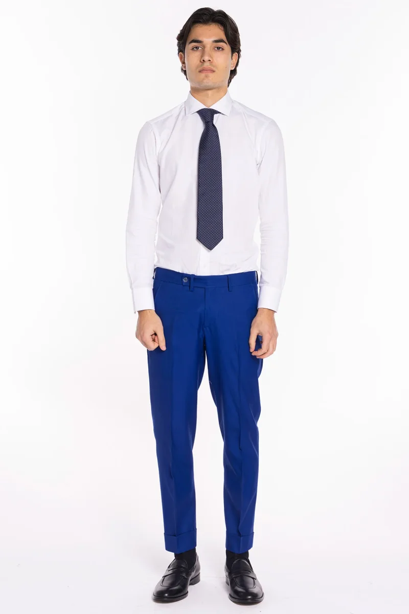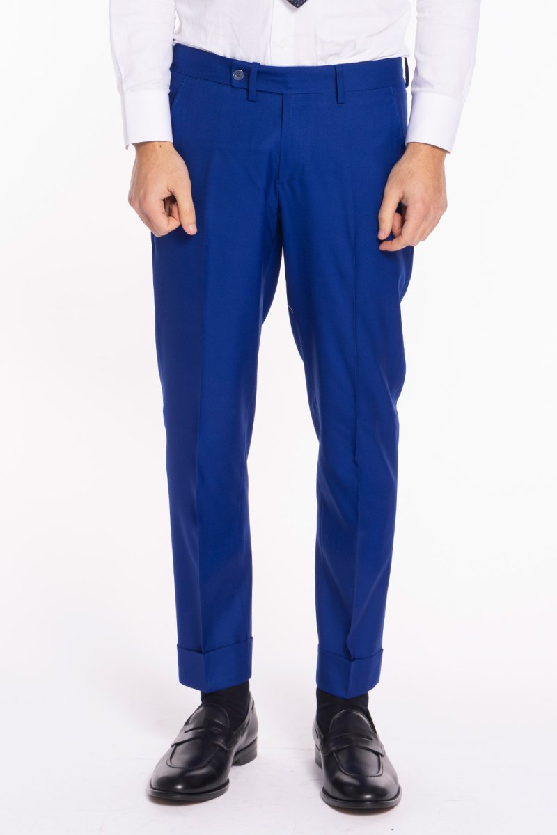 PANTALONE UOMO ROYAL BLU TASCA AMERICA IN FRESCO LANA