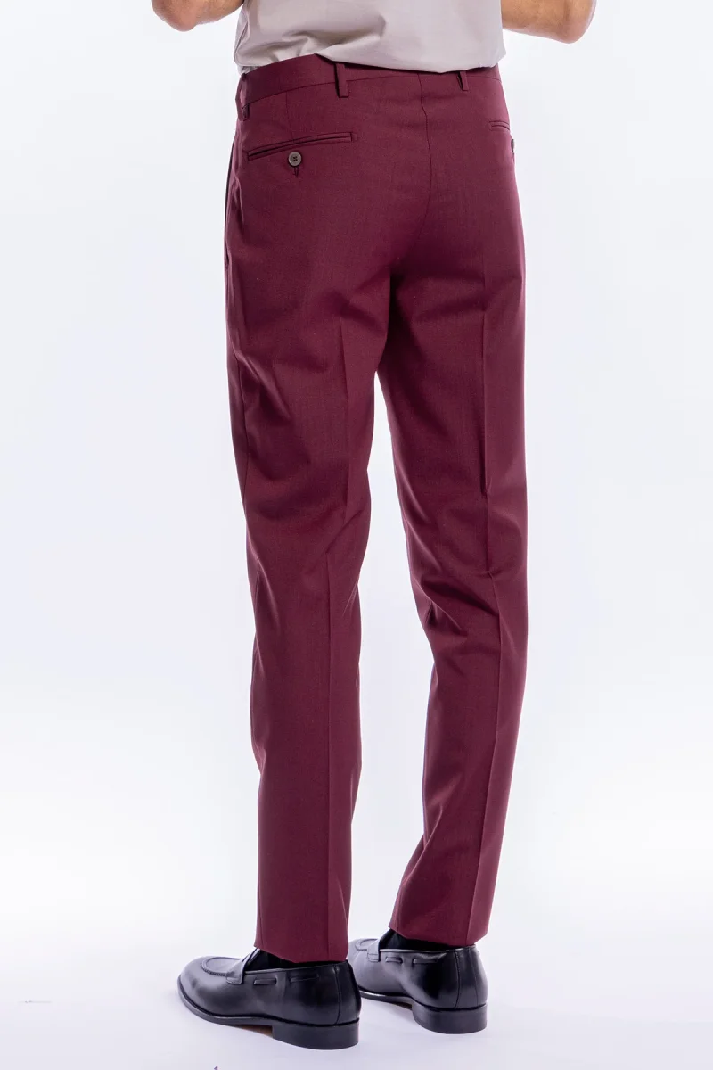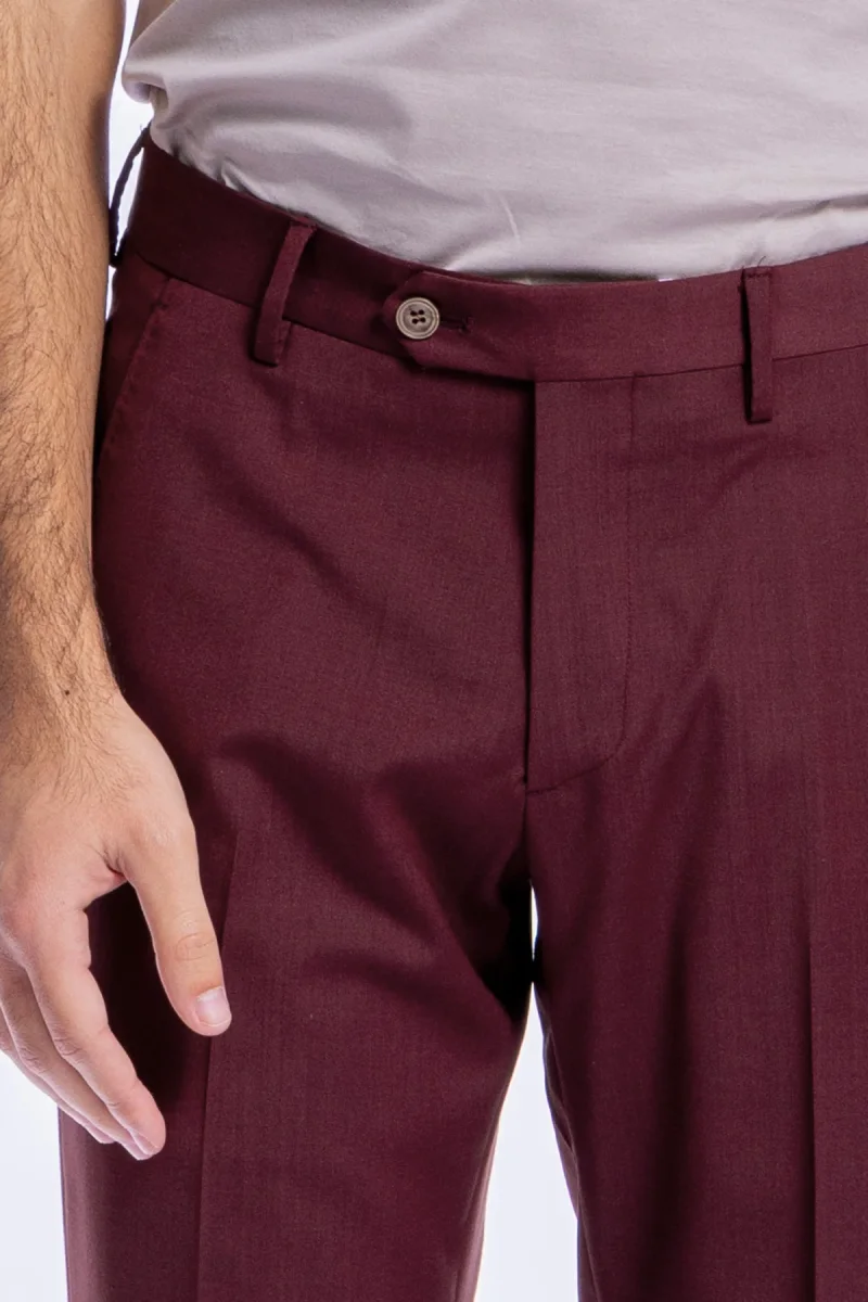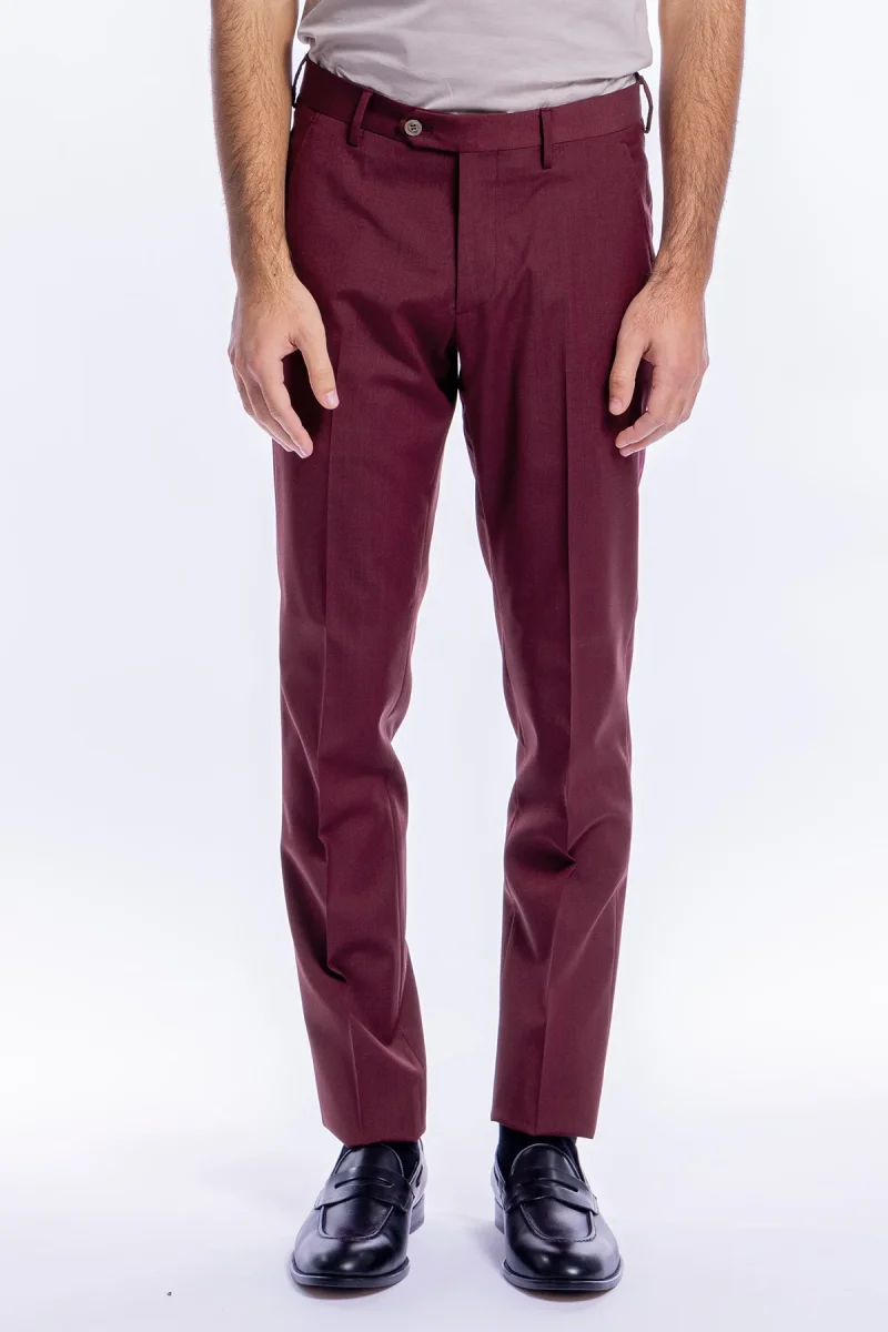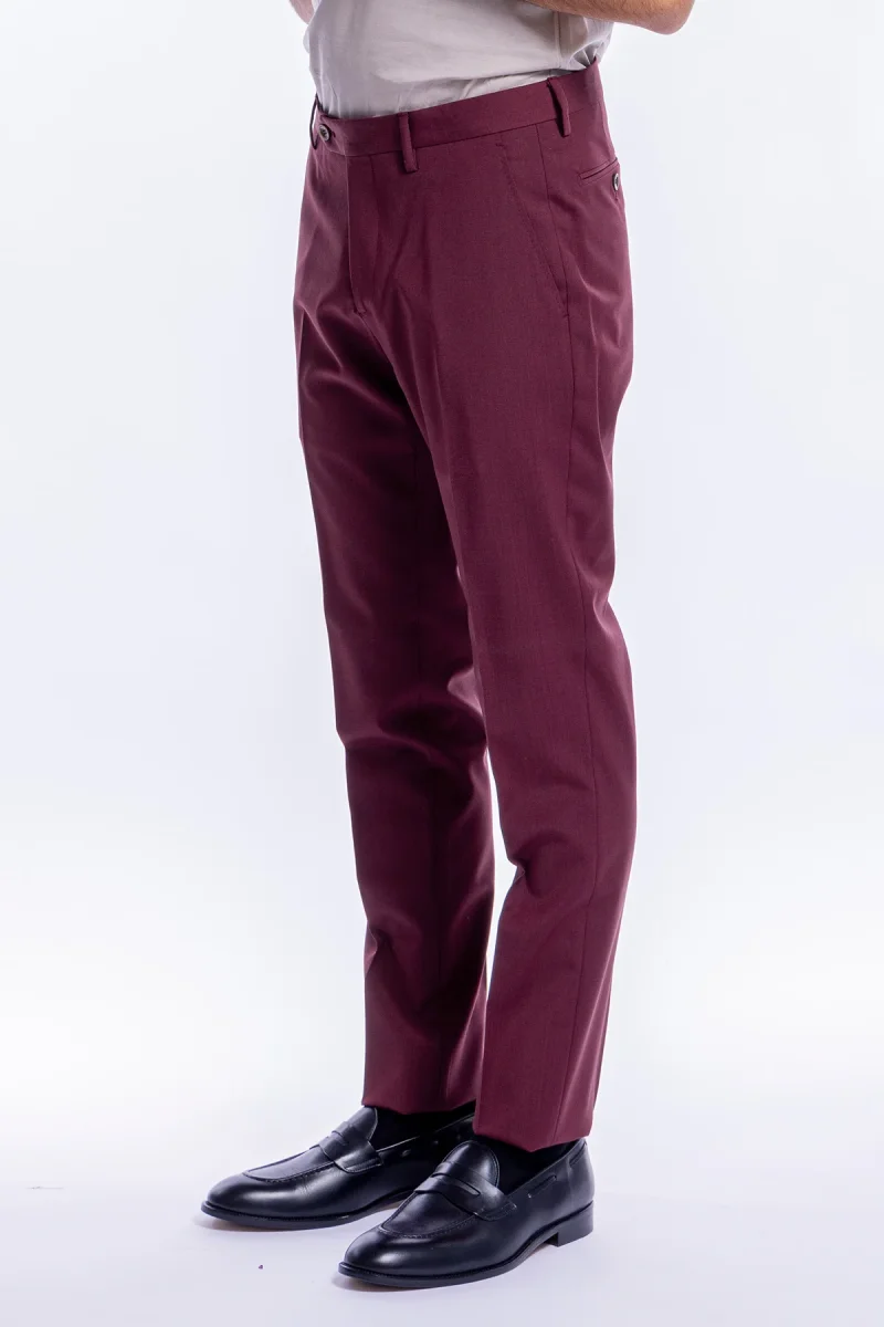 Pantalone uomo slim fit tasca america Bordeaux in fresco lana tinta unita