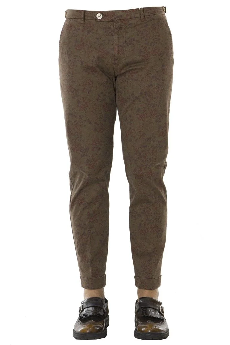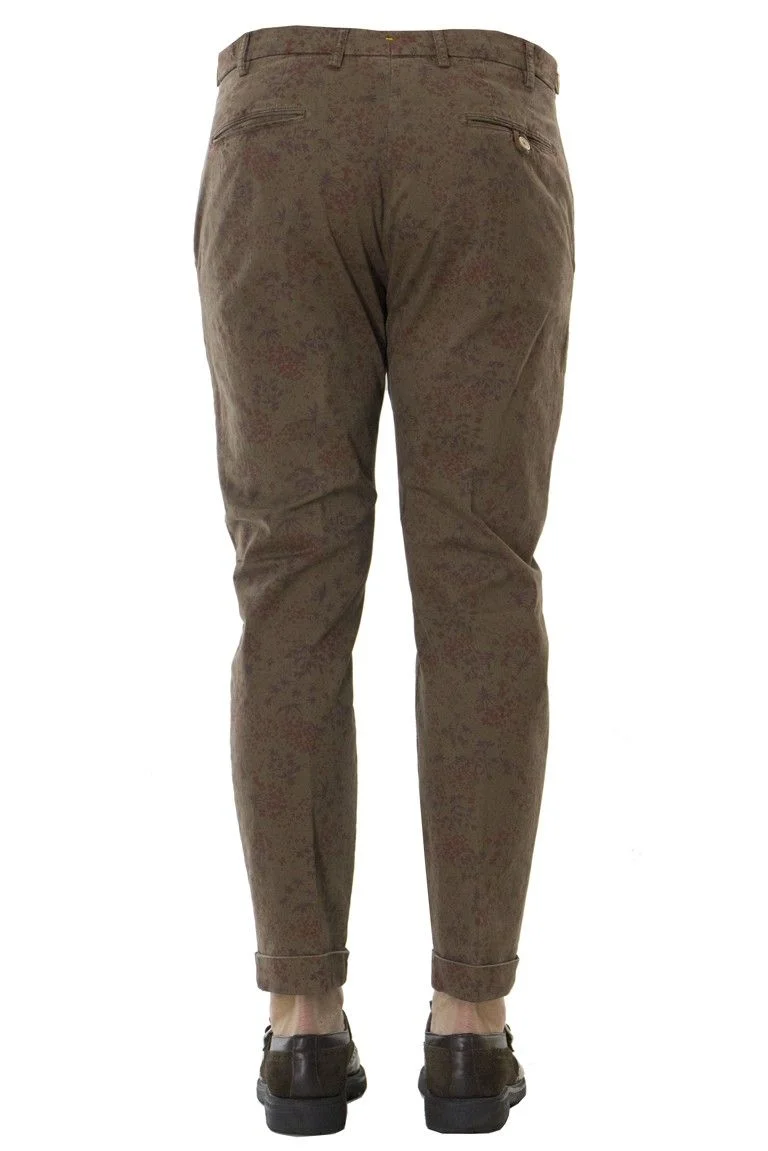 PANTALONE UOMO TASCA AMERICA IN COTONE CON FANTASIA FIORI MARRONE