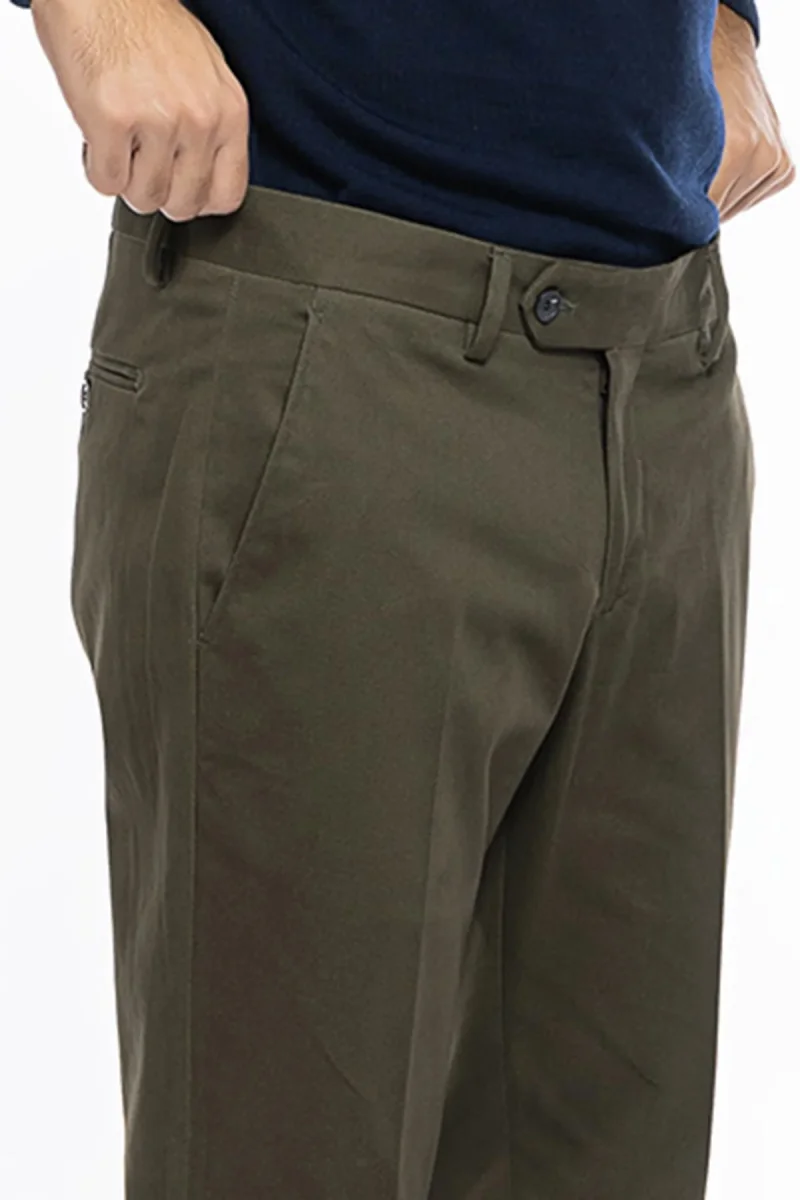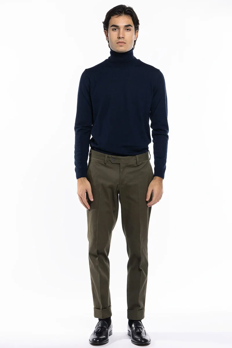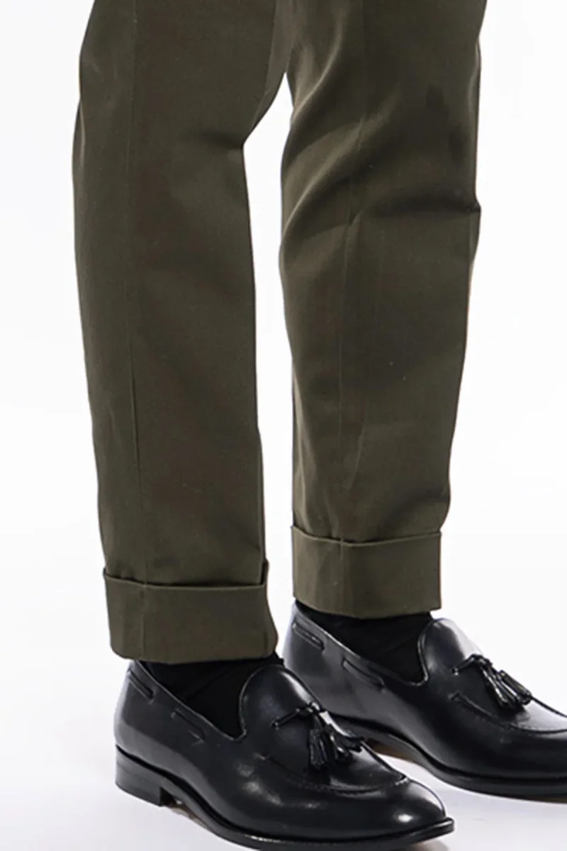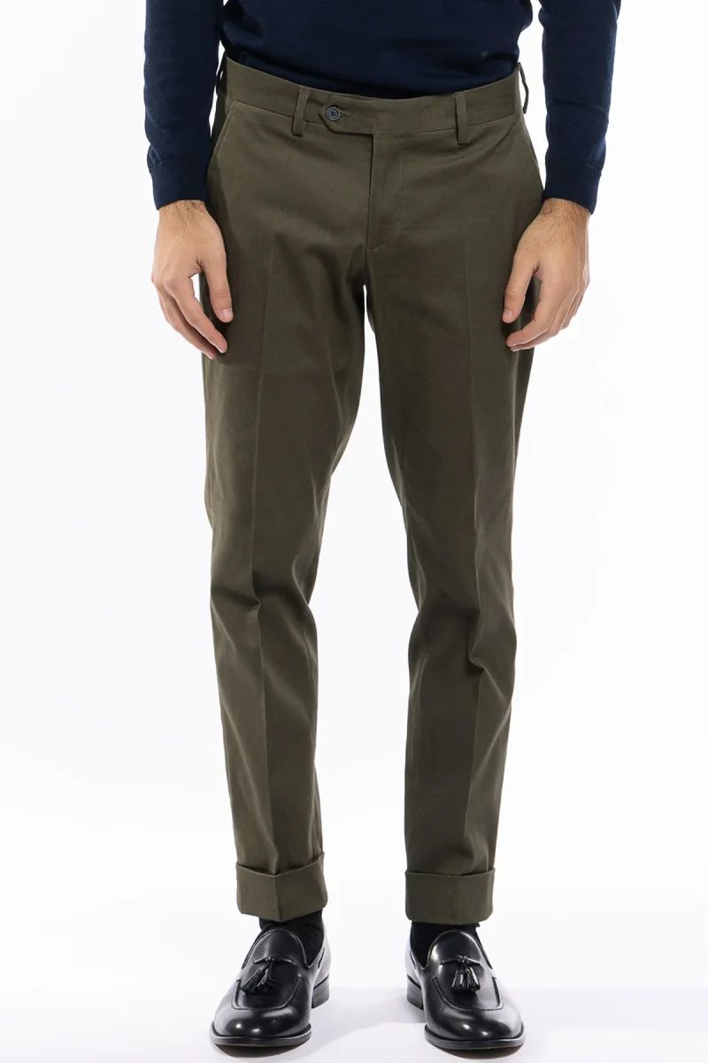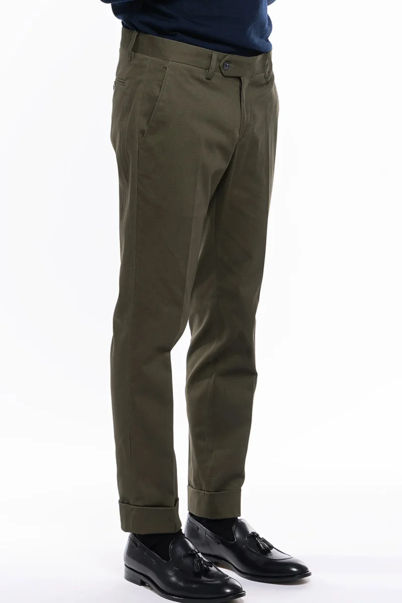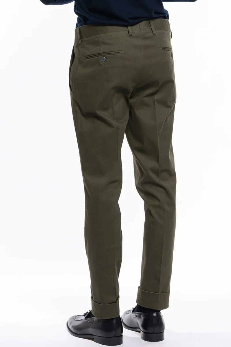 PANTALONE UOMO VERDE MILITARE TASCA AMERICA IN COTONE SLIM FIT CON RISVOLTO DI 5CM