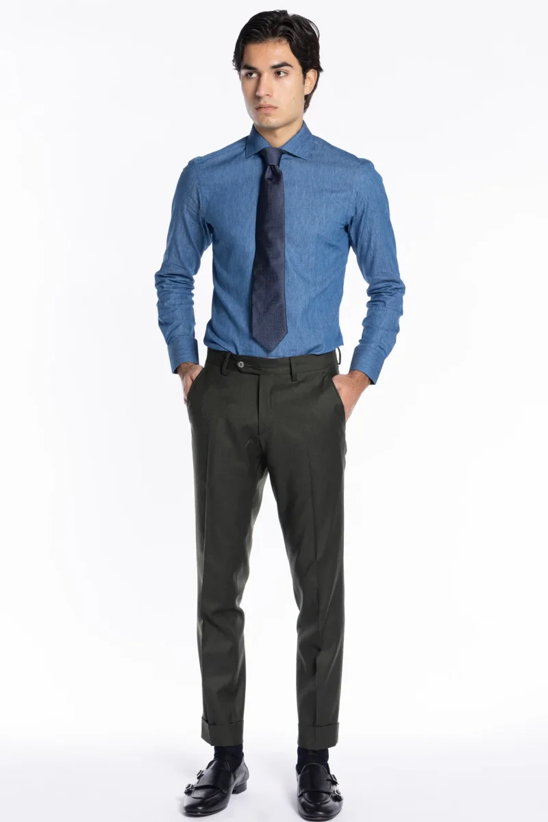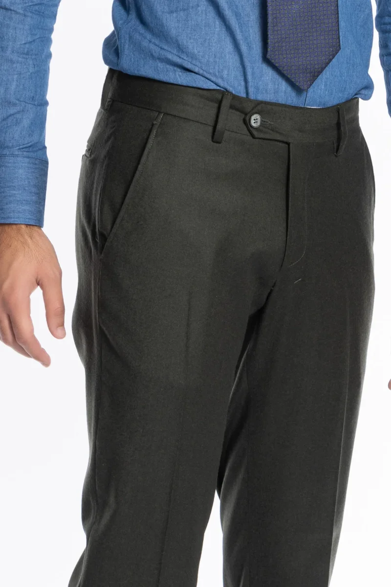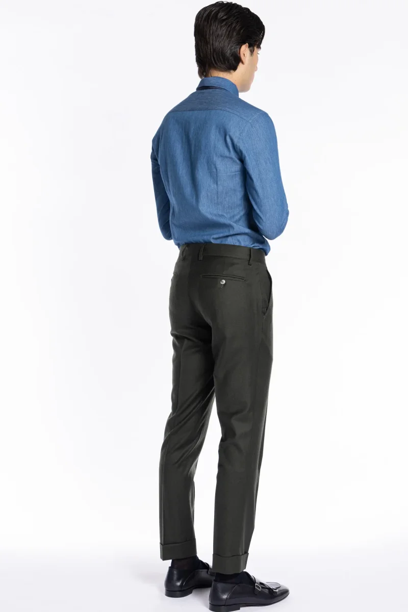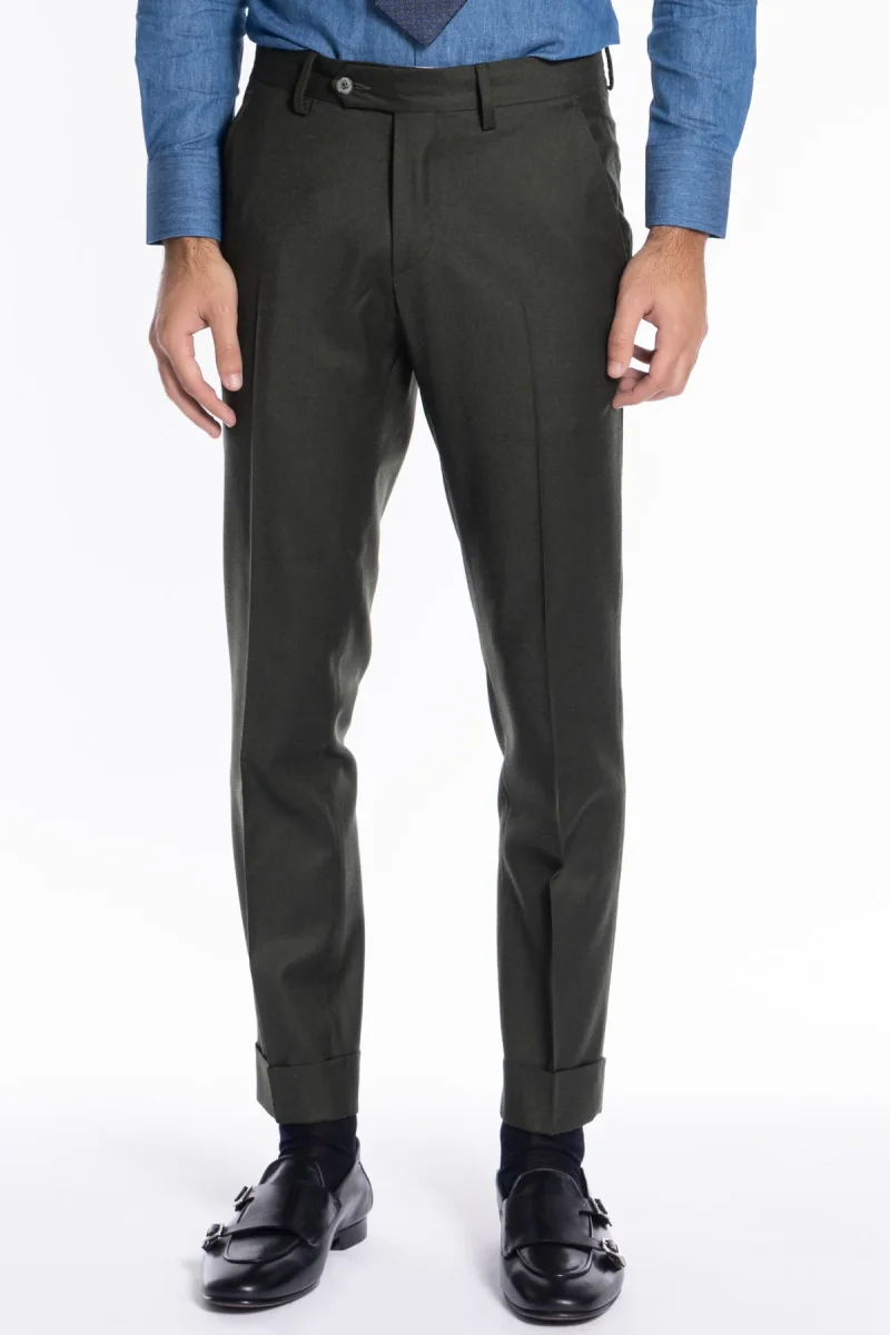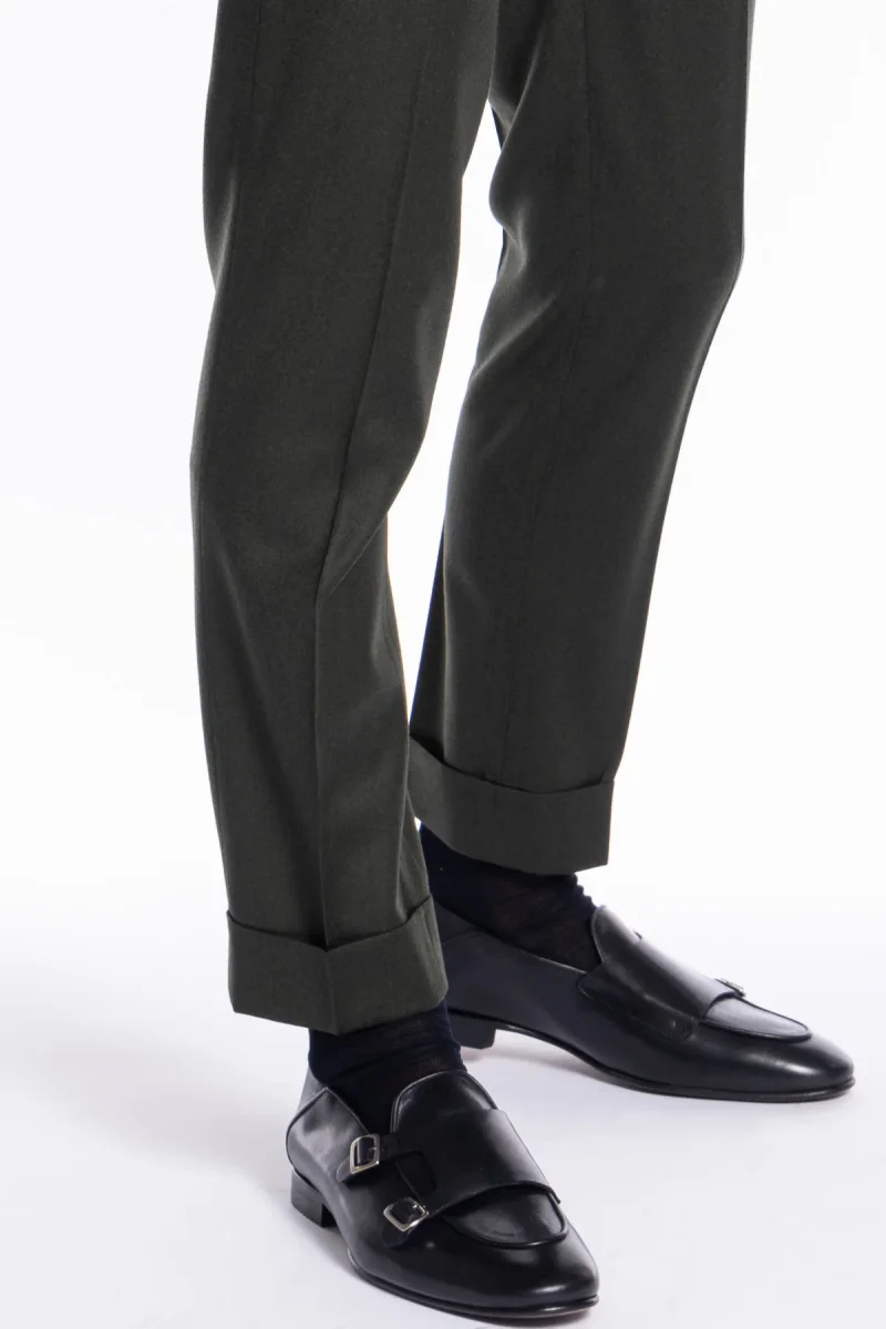 Pantalone uomo verde militare tasca america in lana e cashmere Bristol Tessuti Napoli slim fit con risvolto di 5cm