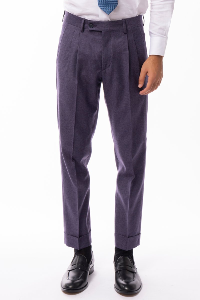 PANTALONE UOMO VIOLA FANTASIA PIED DE POULE VITA ALTA