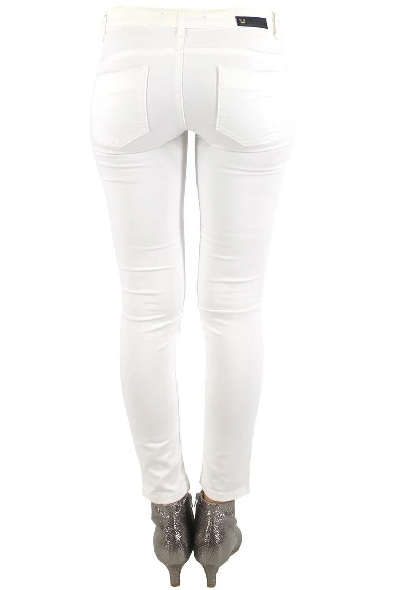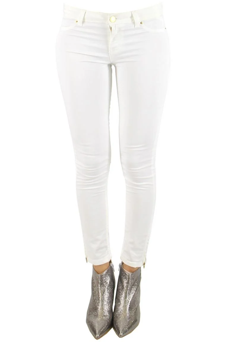 Pantalone bianco donna in cotone, vestibilita skinny, 5 tasche, con zip alle caviglie