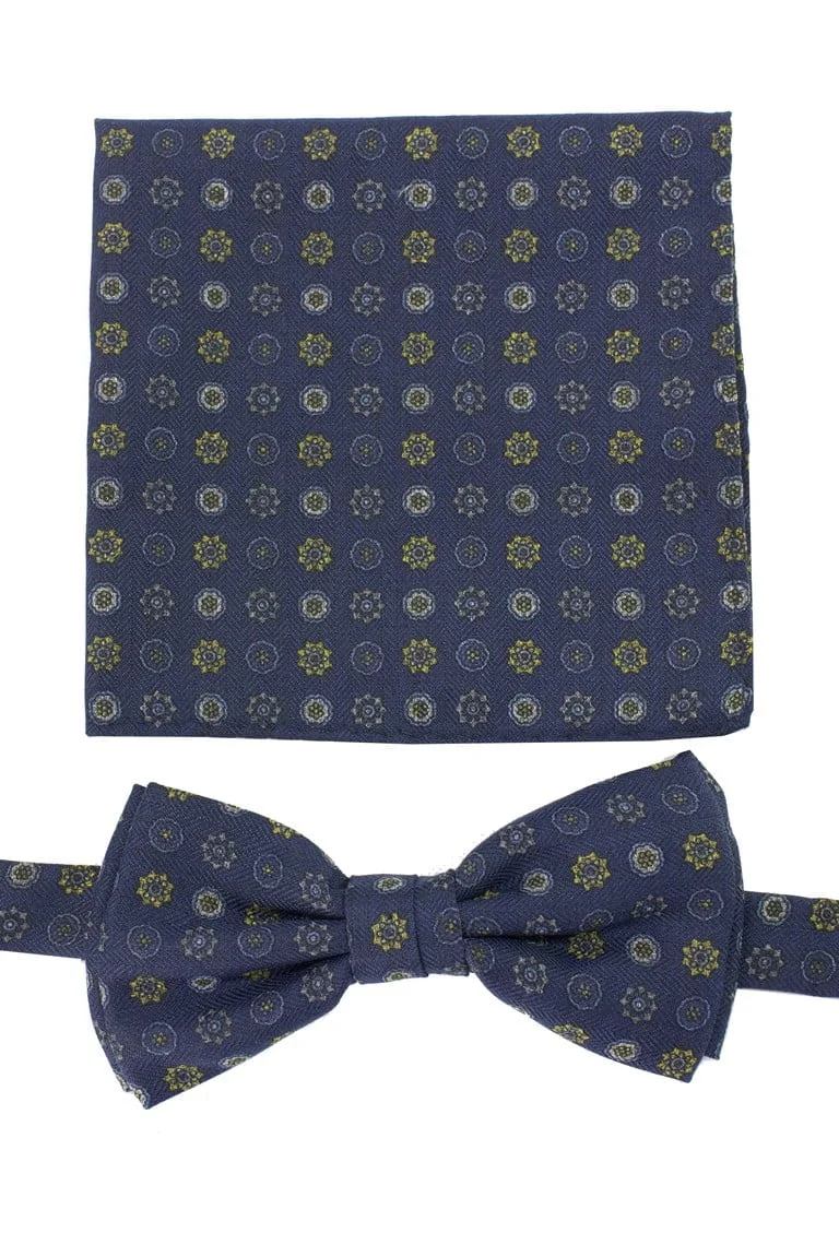 Papillon uomo fantasia fiori effetto lana compreso di pochette abbinata.