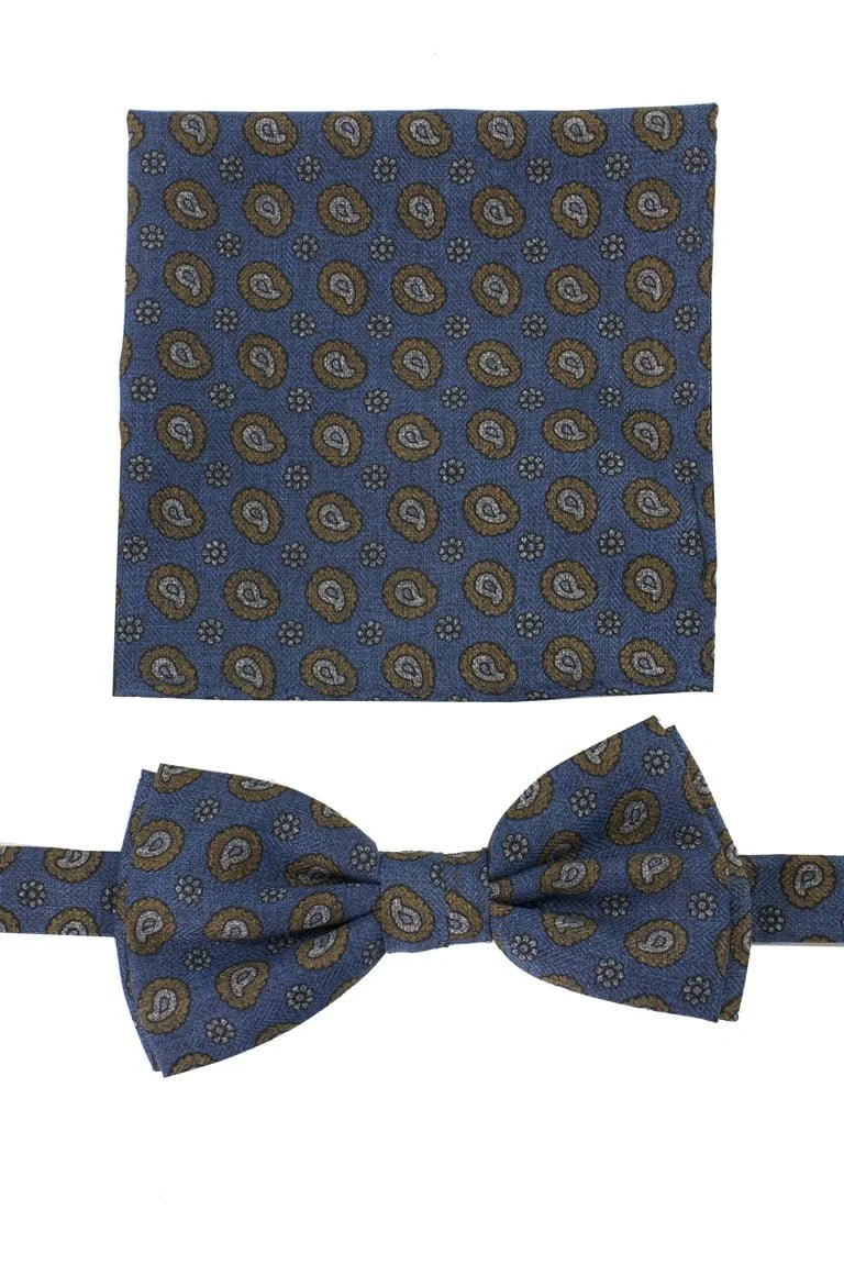 Papillon uomo fantasia goccia effetto lana compreso di pochette abbinata.