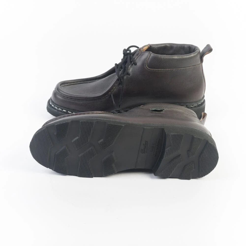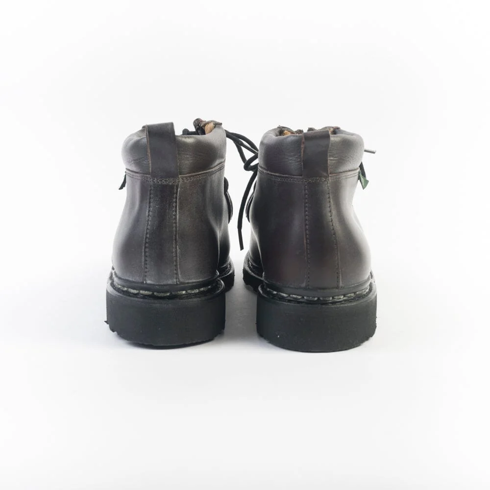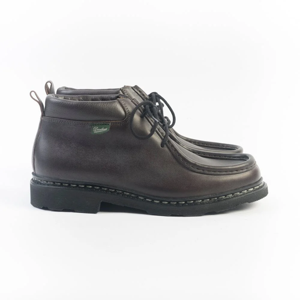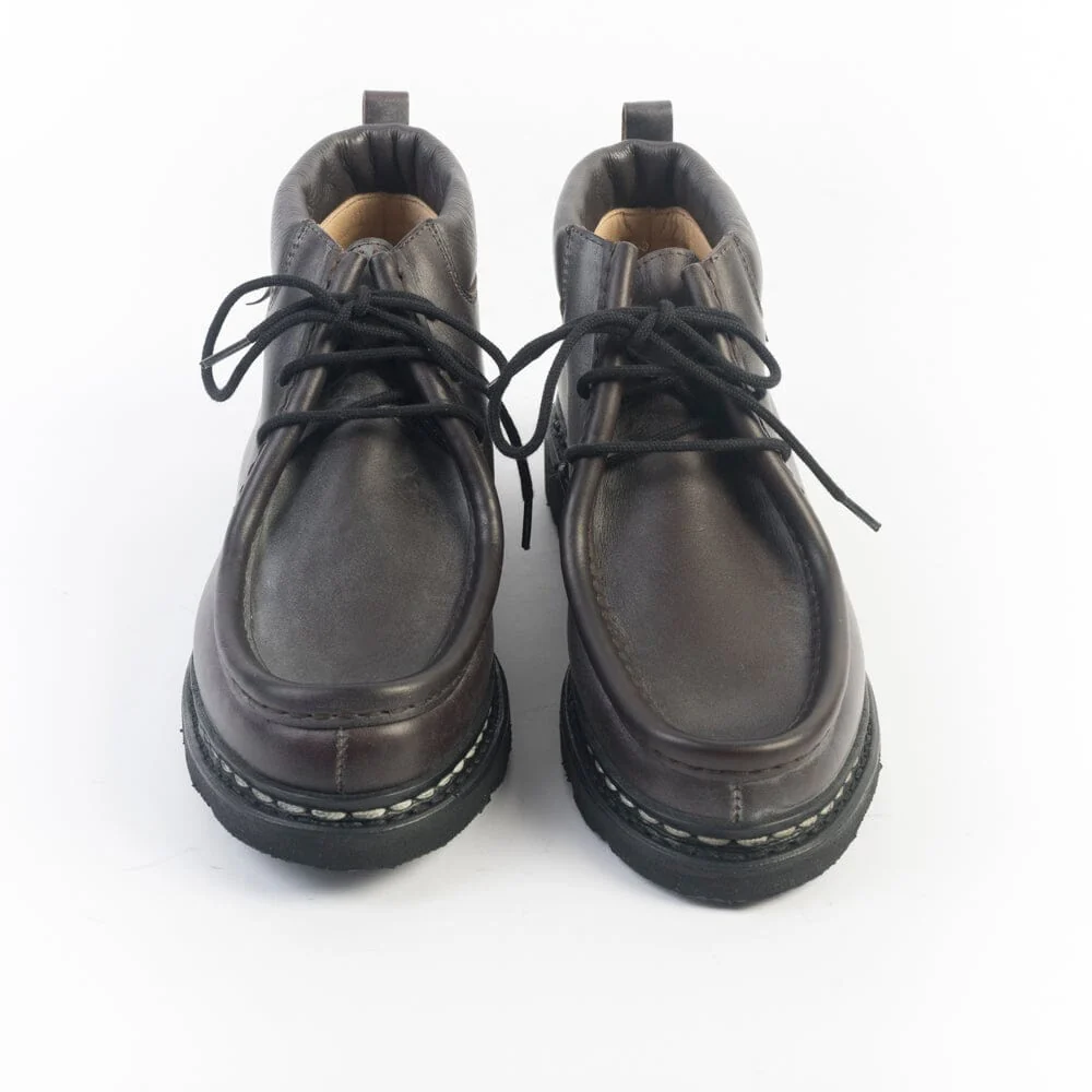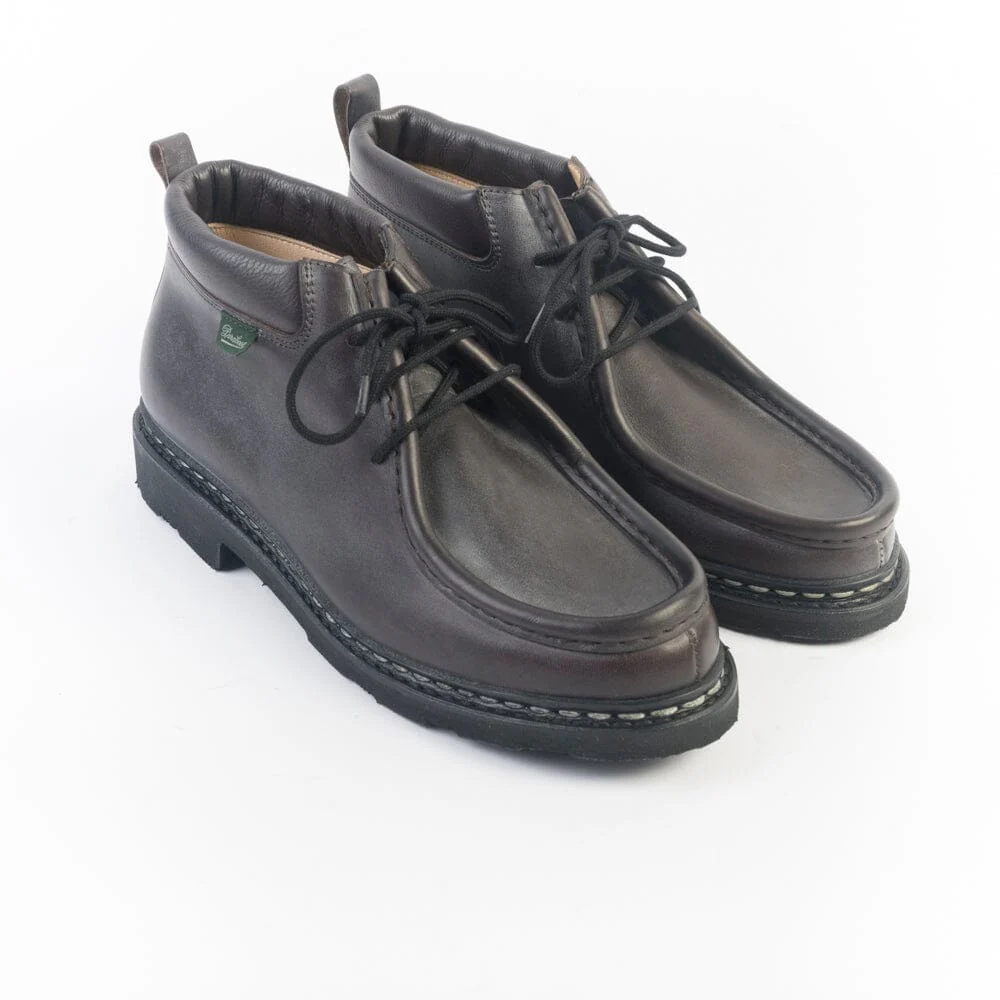 Iconico Polacchino Milla di Paraboot, alla caviglia, in pelle conciata al vegetale di colore nero. Doppia cucitura che tiene insieme la tomaia e la soletta, assicurando resistenza e assoluta impermeabilità. Fodera interna in pelle. Morbidi lacci in cotone di colore nero. Autentiche suole Paraboot in gomma antiscivolo.