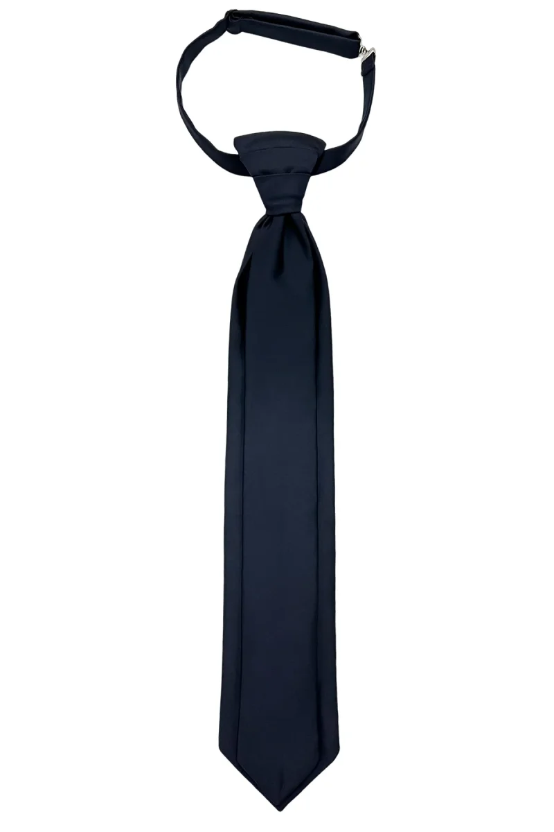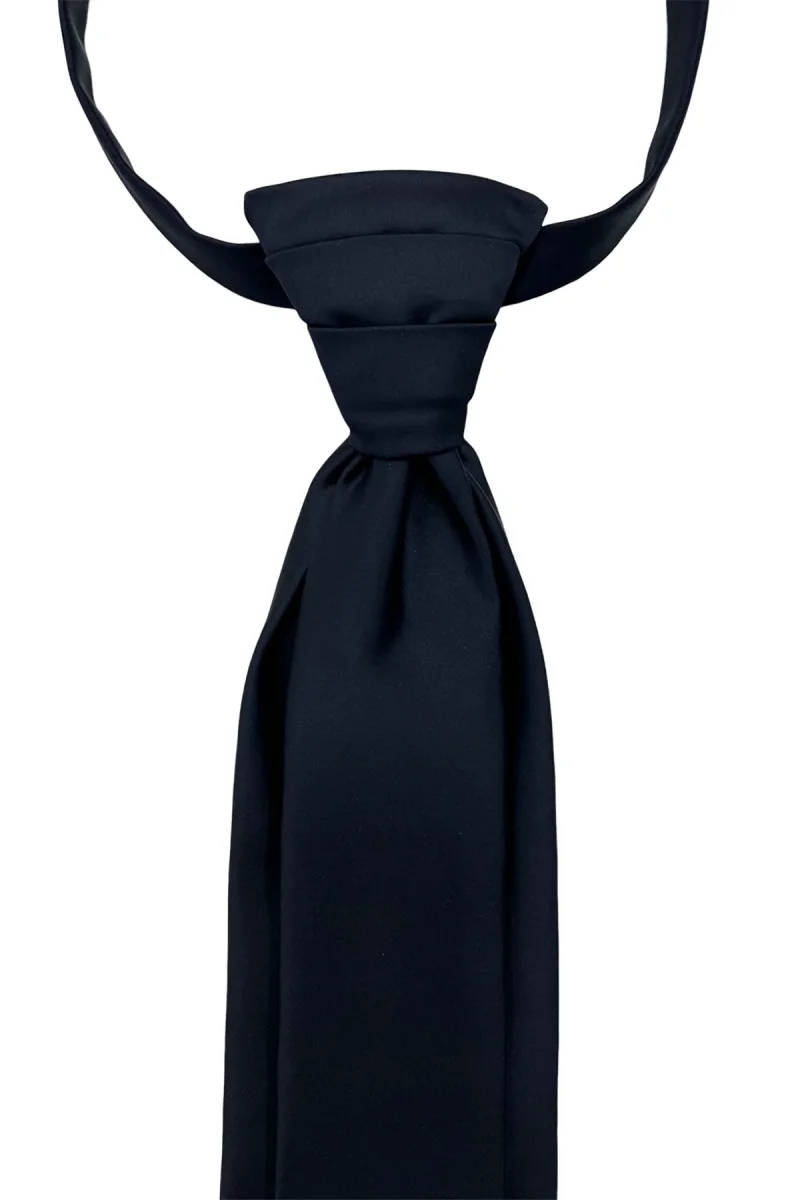 Plastron uomo Blu 8cm da sposo elegante tinta unita in raso effetto doppia cravatta