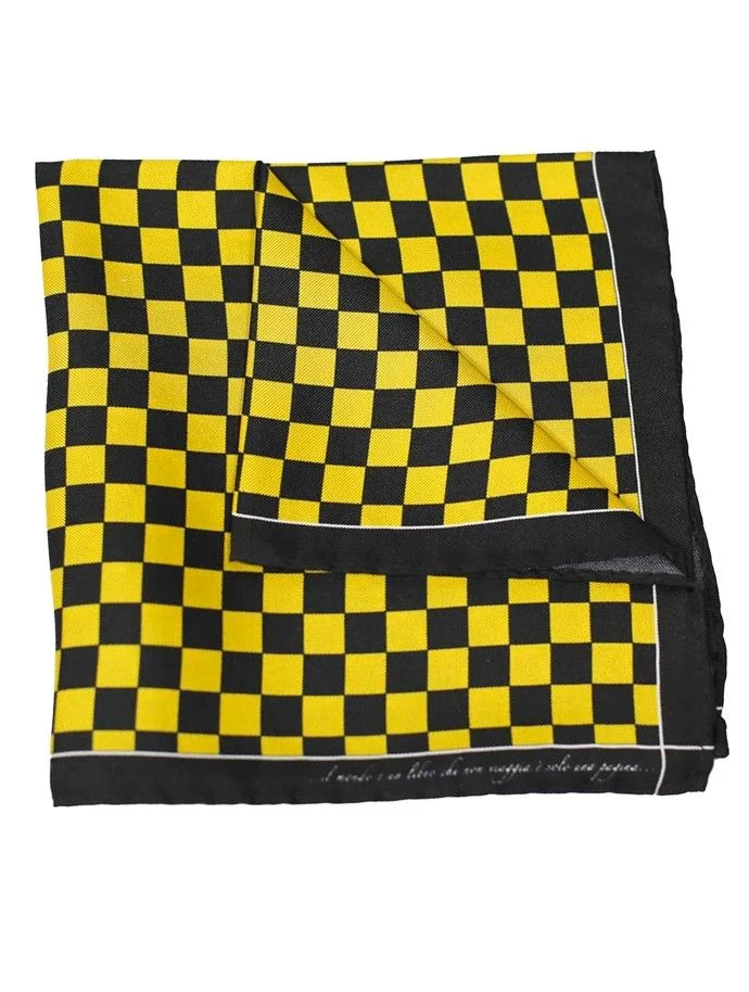 Pochette da taschino da uomo in seta fantasia scacchi giallo/nero a