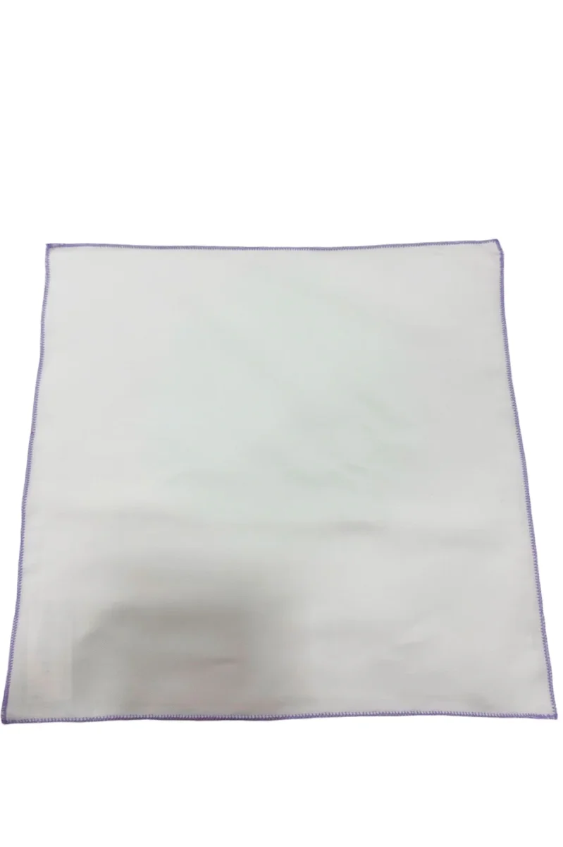Pochette uomo bianca tinta unita con bordino lilla in cotone 100%
