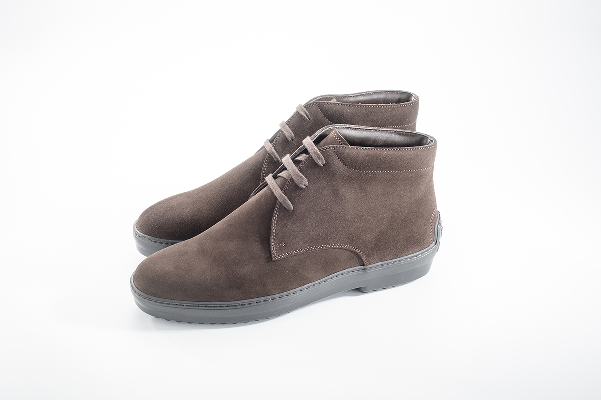Il classico polacchino viene presentato in una variante più sportiva. Il design è accentuato dalla particolare suola in gomma dal carattere dinamico e sportivo, pensata per affrontare le giornate di freddo e pioggia con una marcia in più. Il polacchino sportivo in camoscio è una novità della collezione Autunno / Inverno 2019. Fatto a mano in Italia.