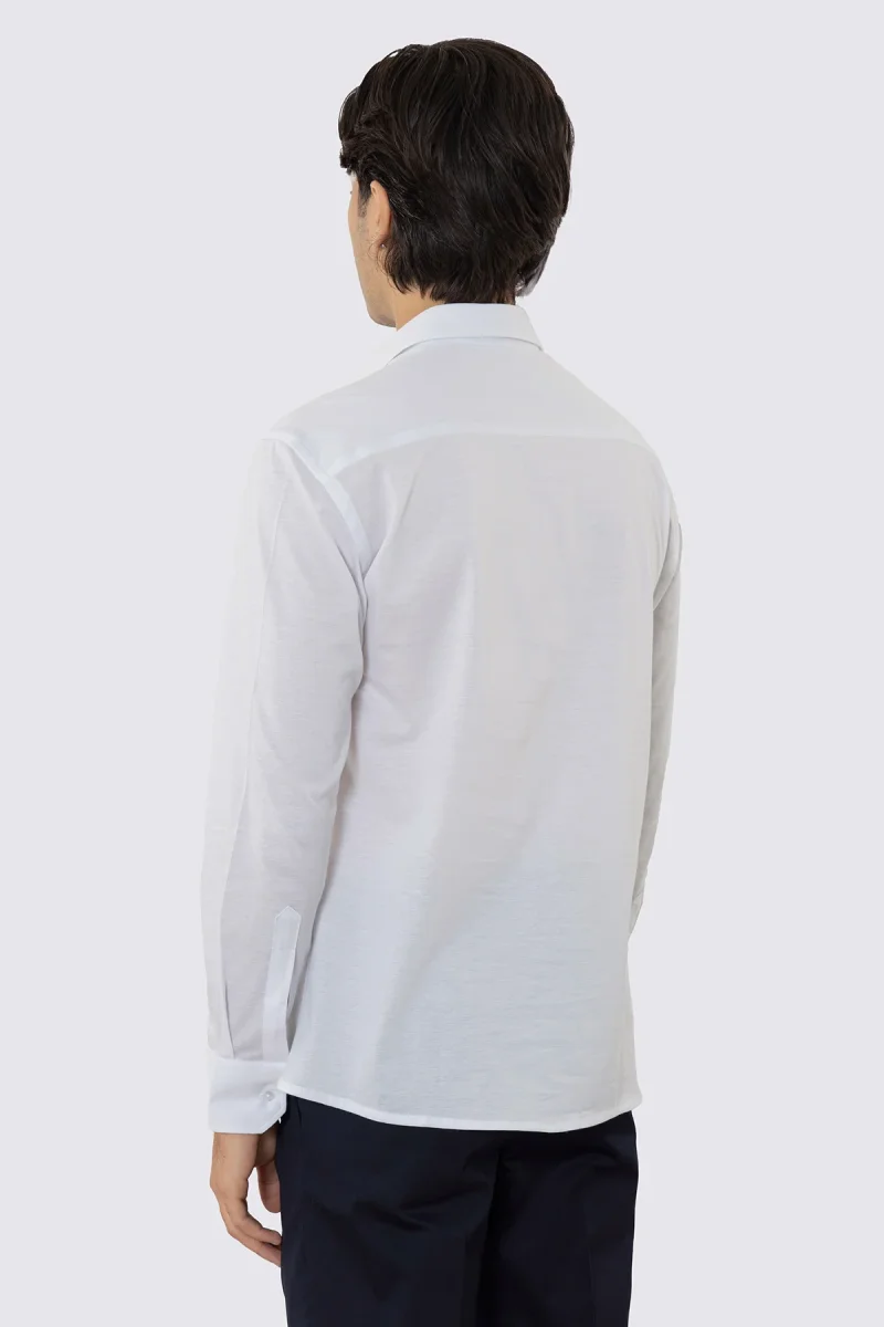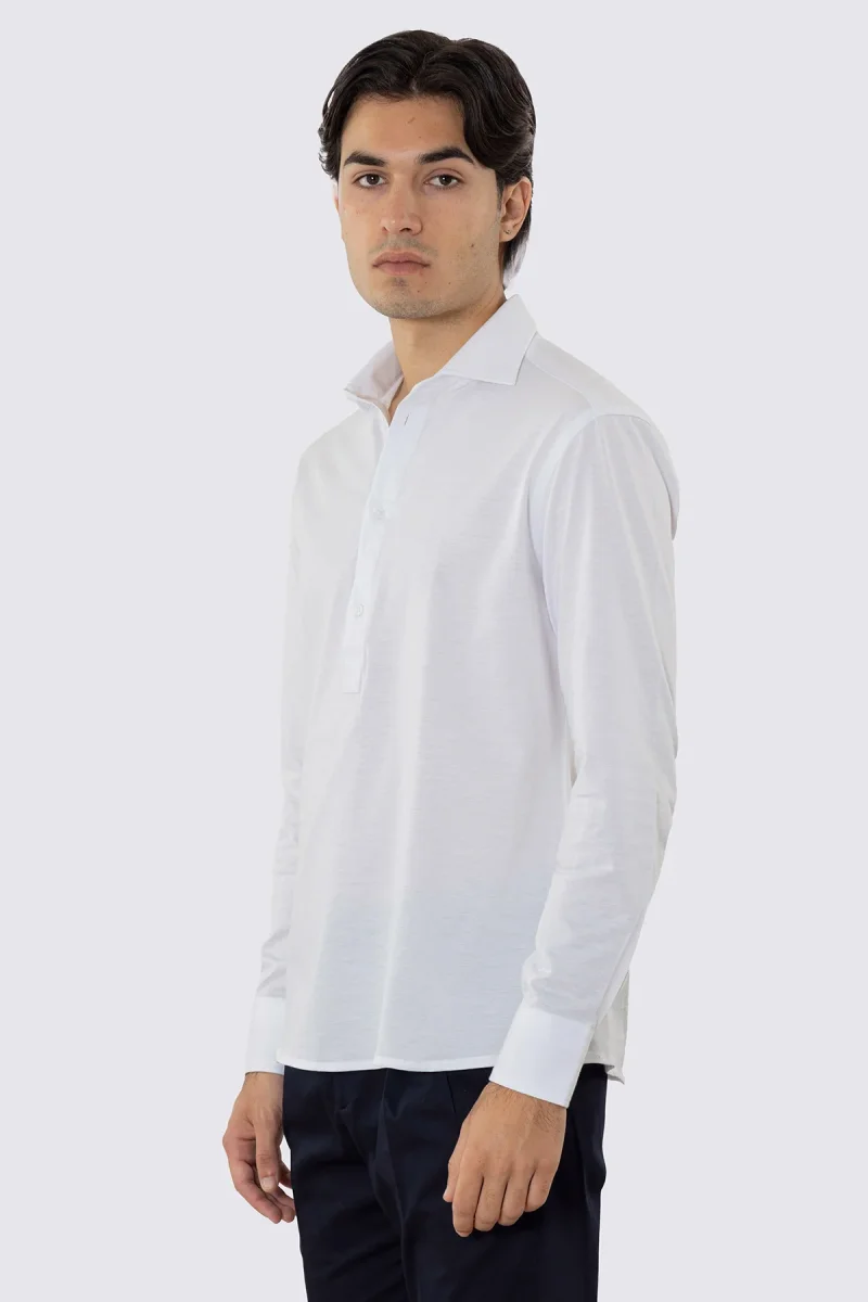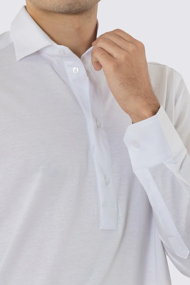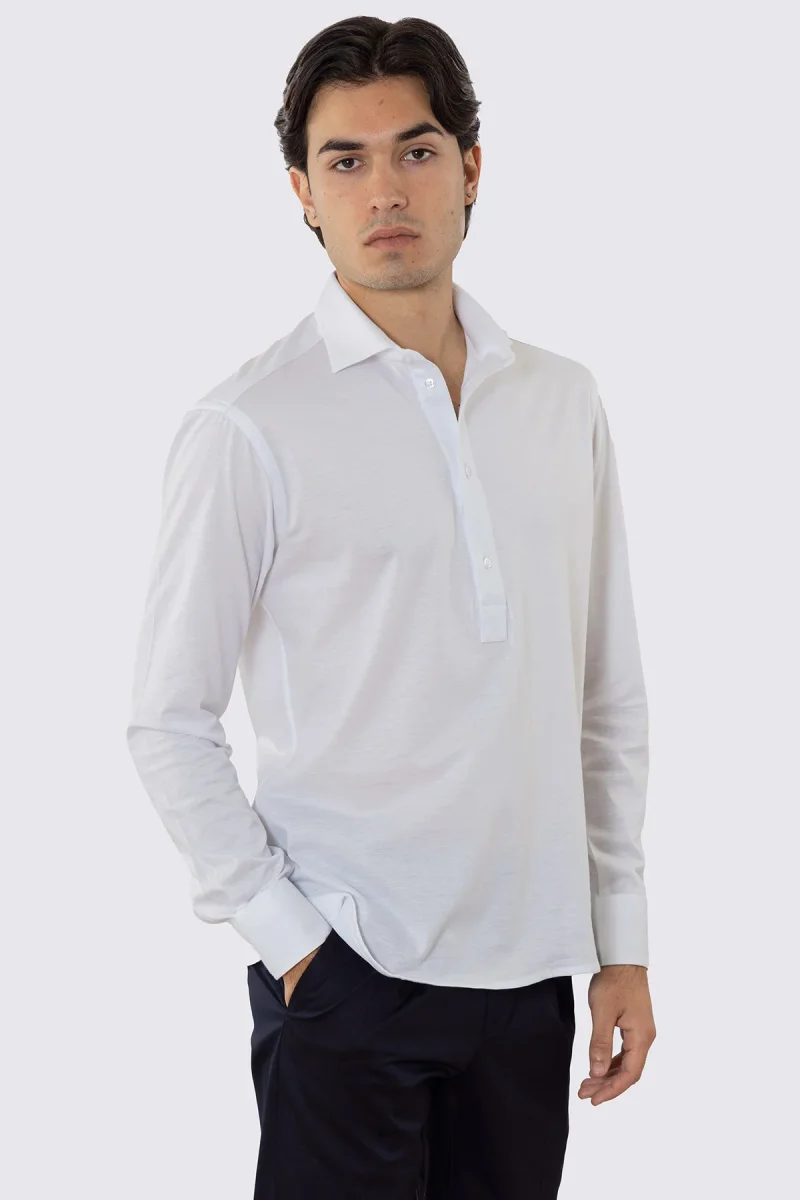 Polo camicia bianca 4 bottoni da uomo collo semi francese manica lunga in cotone 100% nido d’ape made in italy