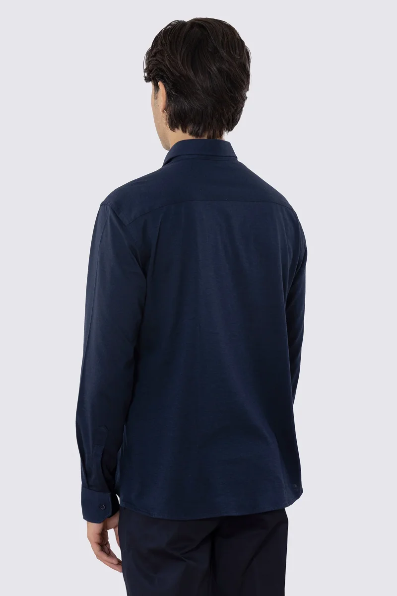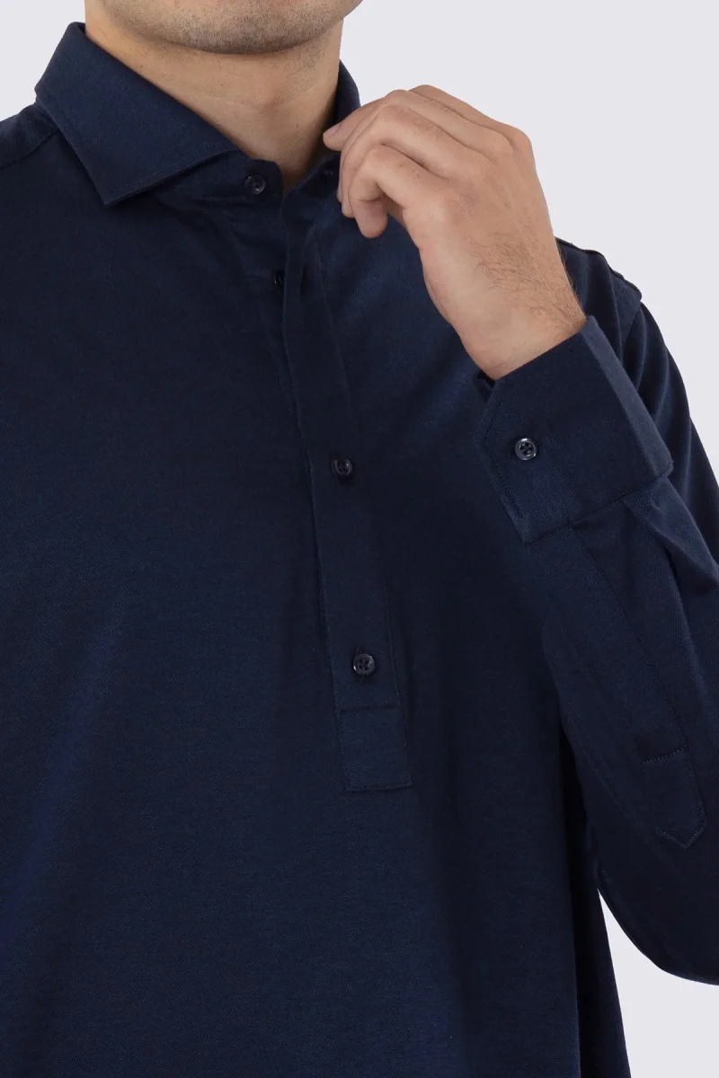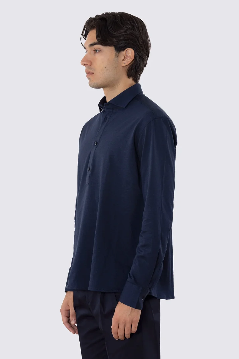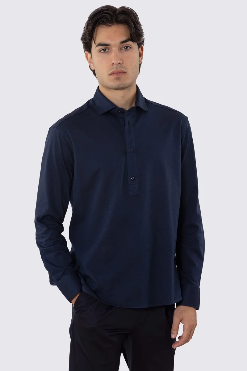 Polo camicia blu 4 bottoni da uomo collo semi francese manica lunga in cotone 100% nido d’ape made in italy