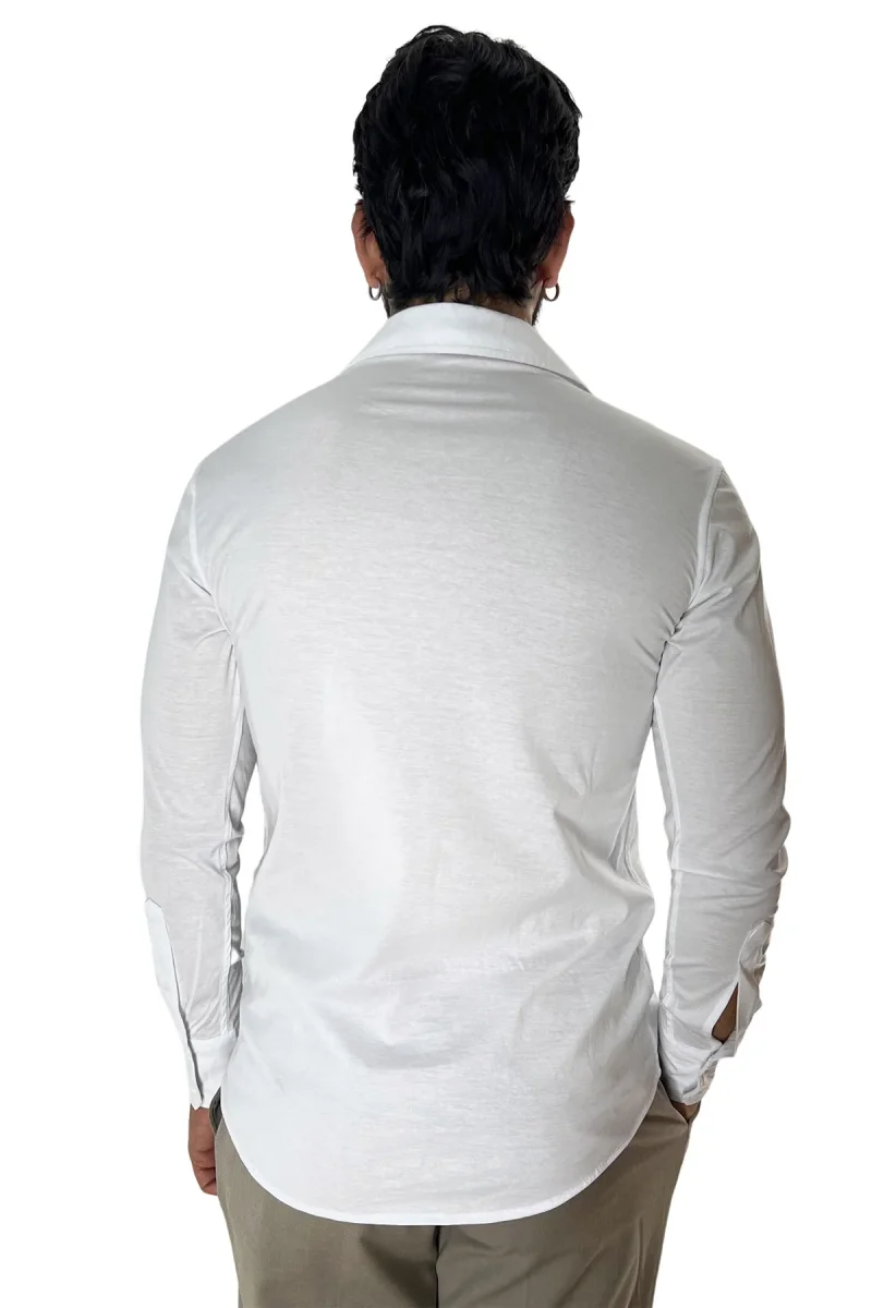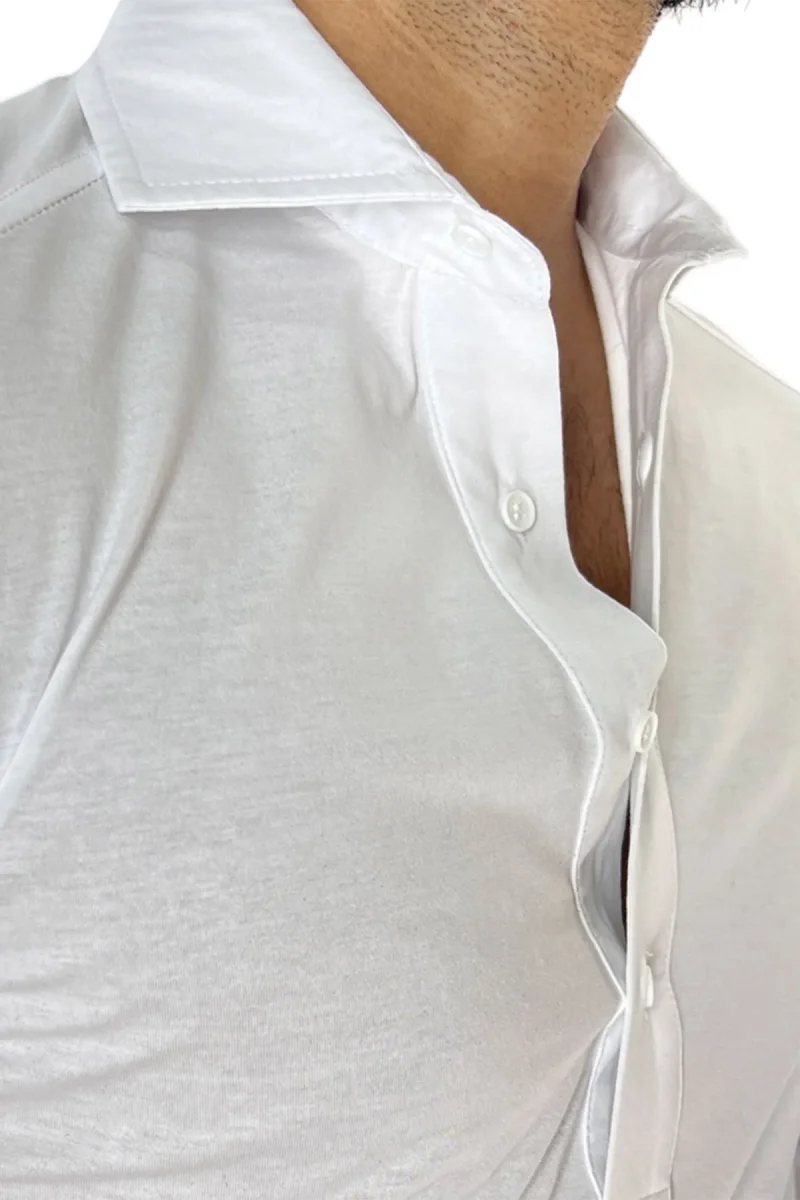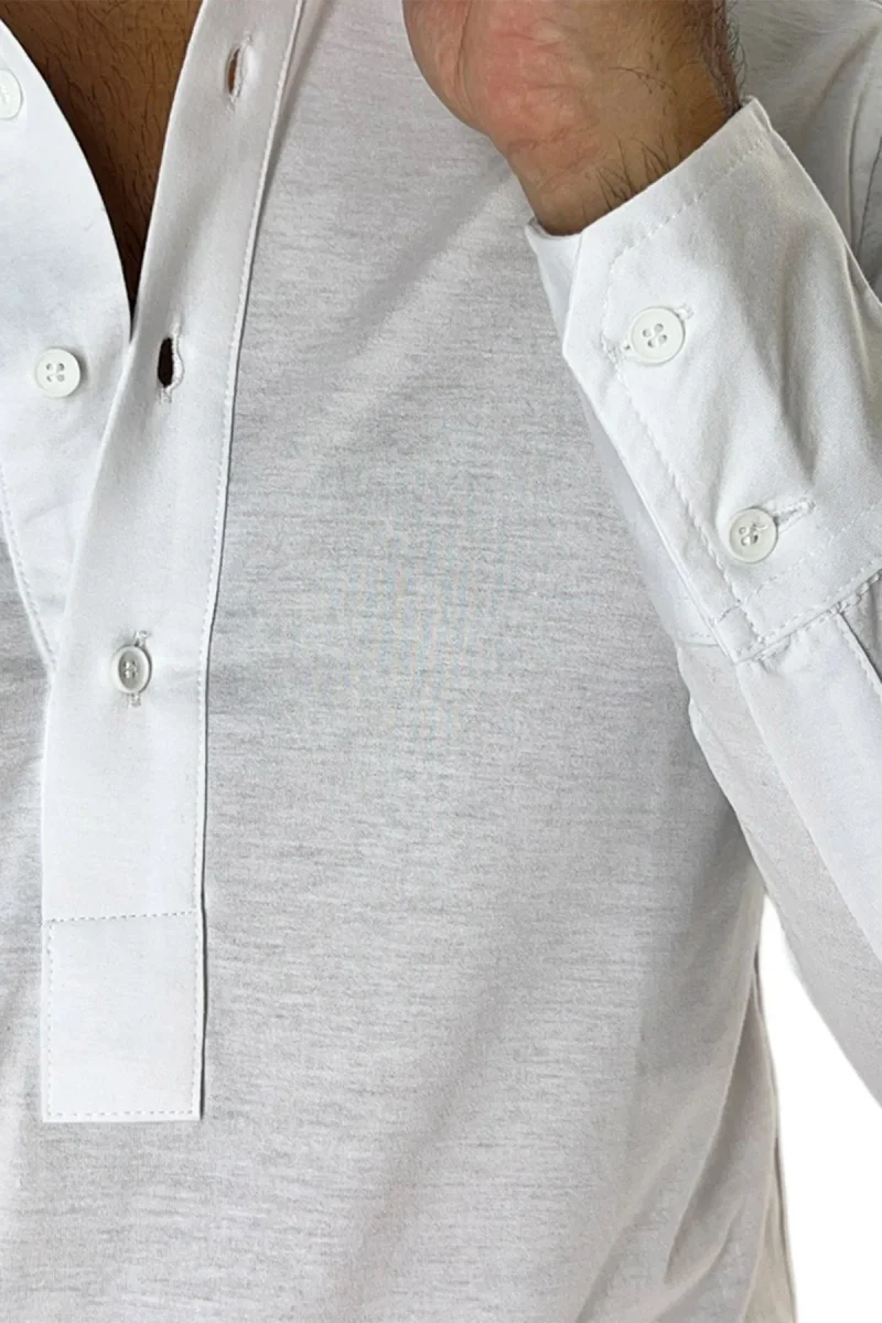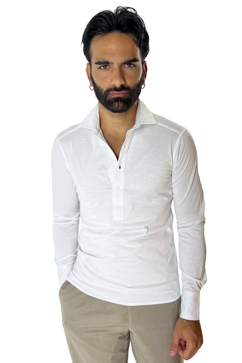 POLO CAMICIA DA UOMO BIANCA MANICA LUNGA IN FILO DI SCOZIA 100% MADE IN ITALY