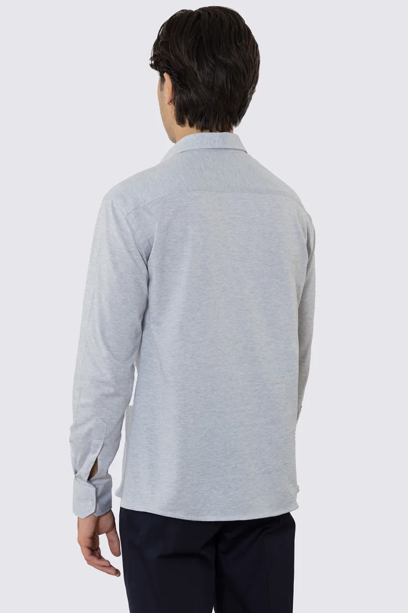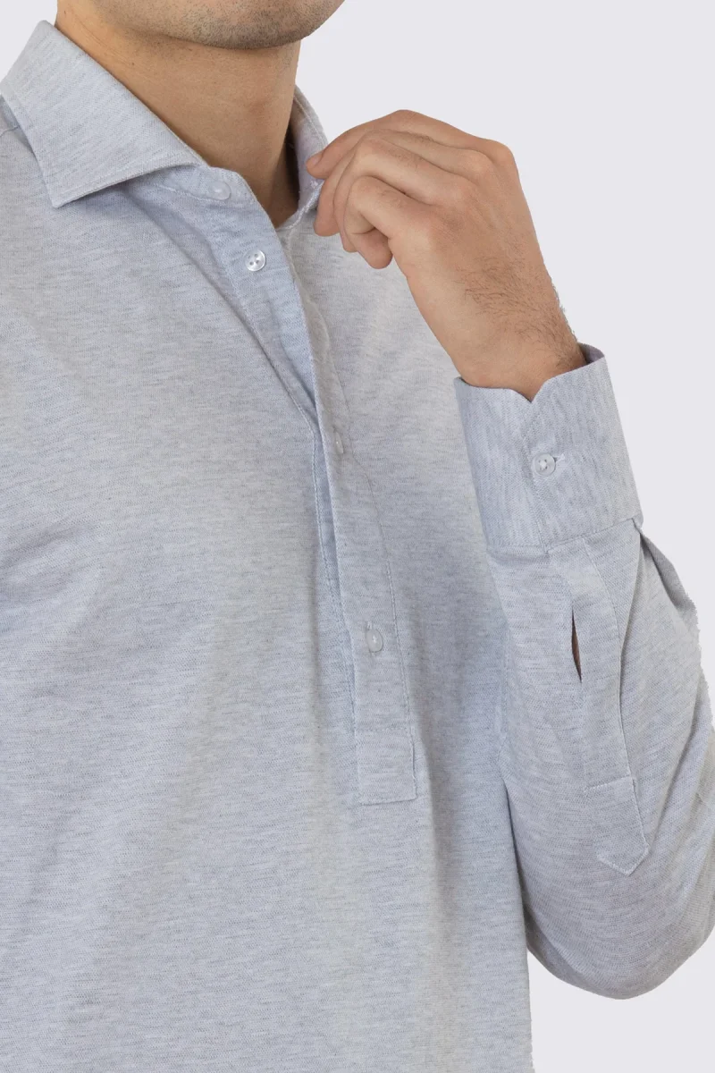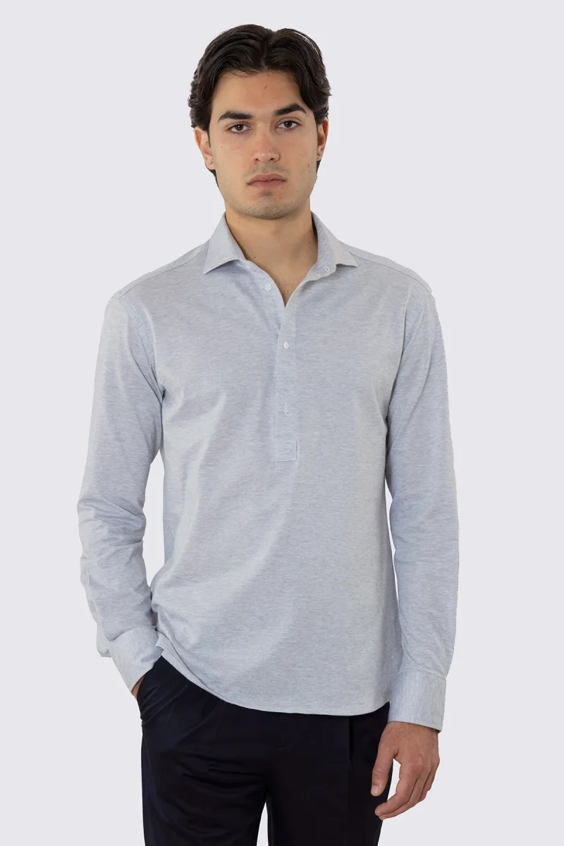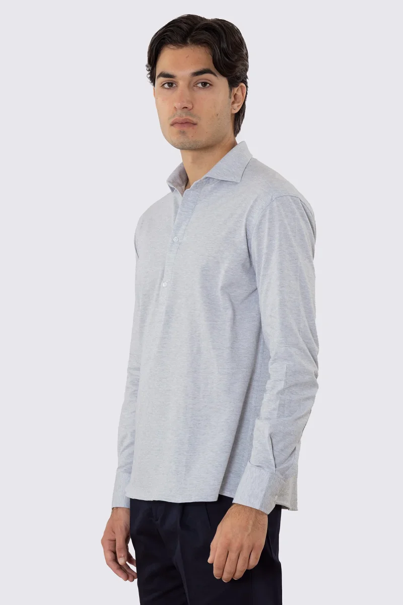 Polo camicia Grigia 4 bottoni da uomo collo semi francese manica lunga in cotone 100% nido d’ape made in italy