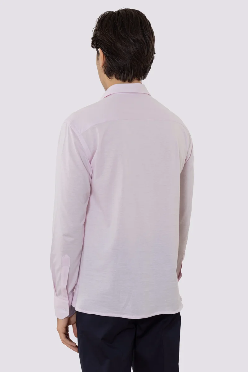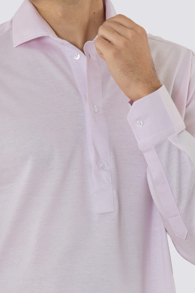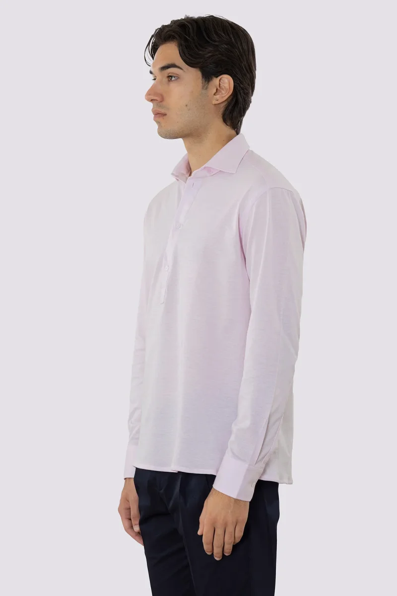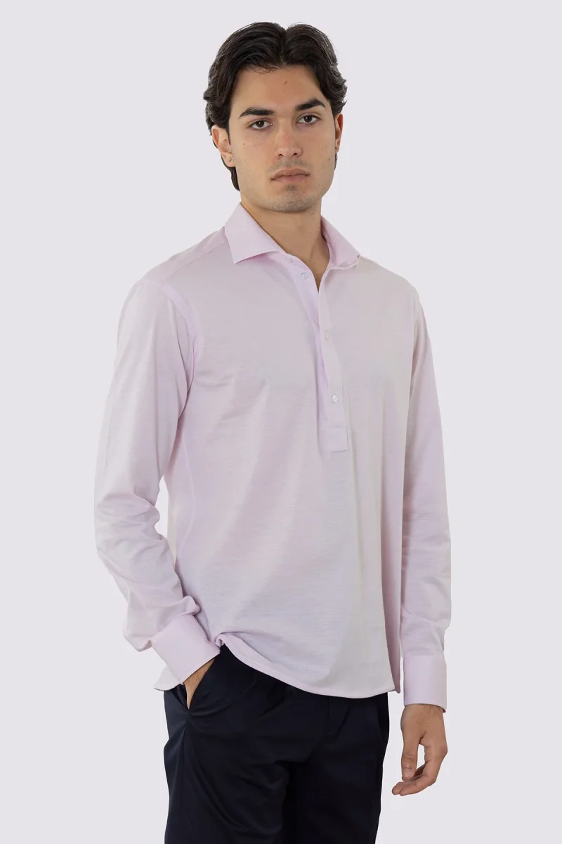 Polo camicia rosa 4 bottoni da uomo collo semi francese manica lunga in cotone 100% nido d’ape made in italy