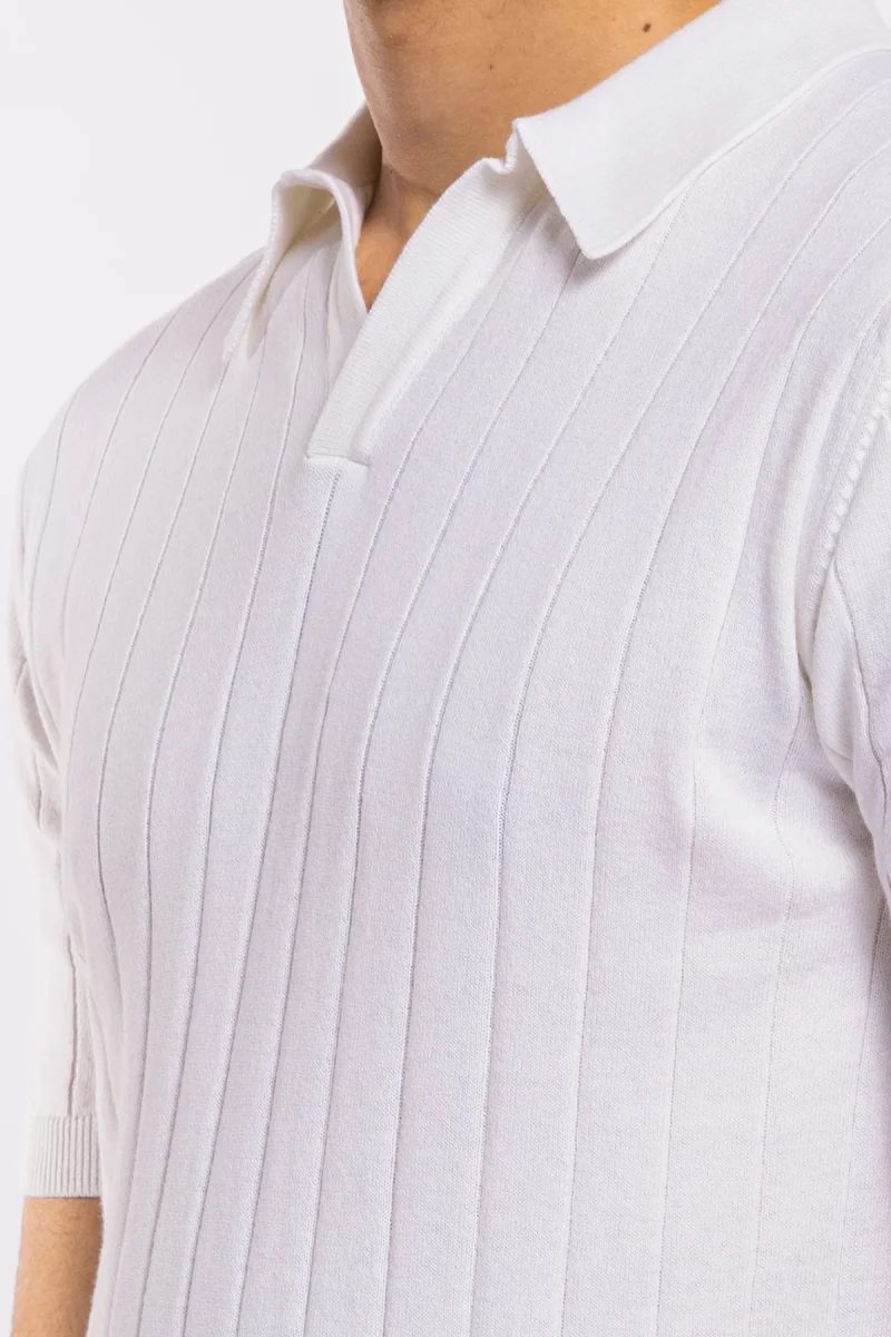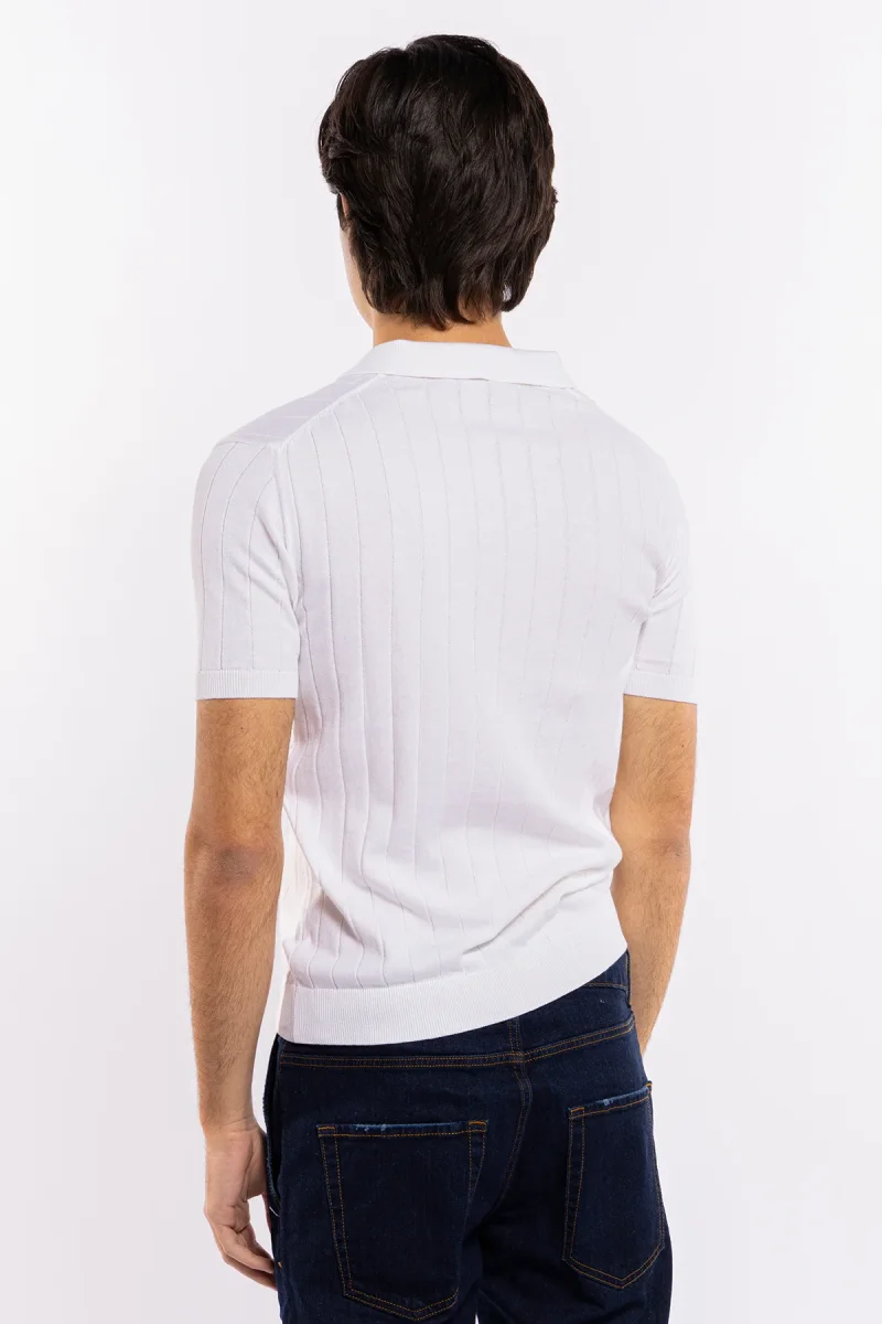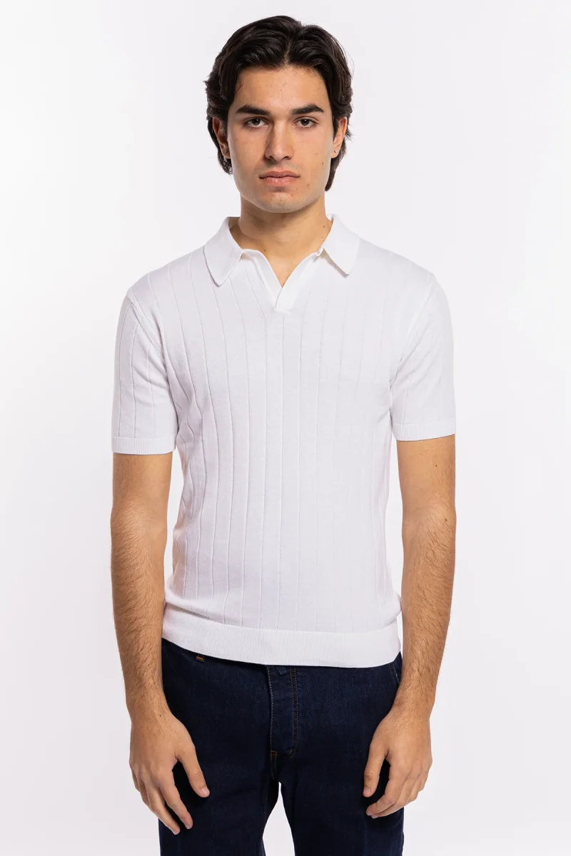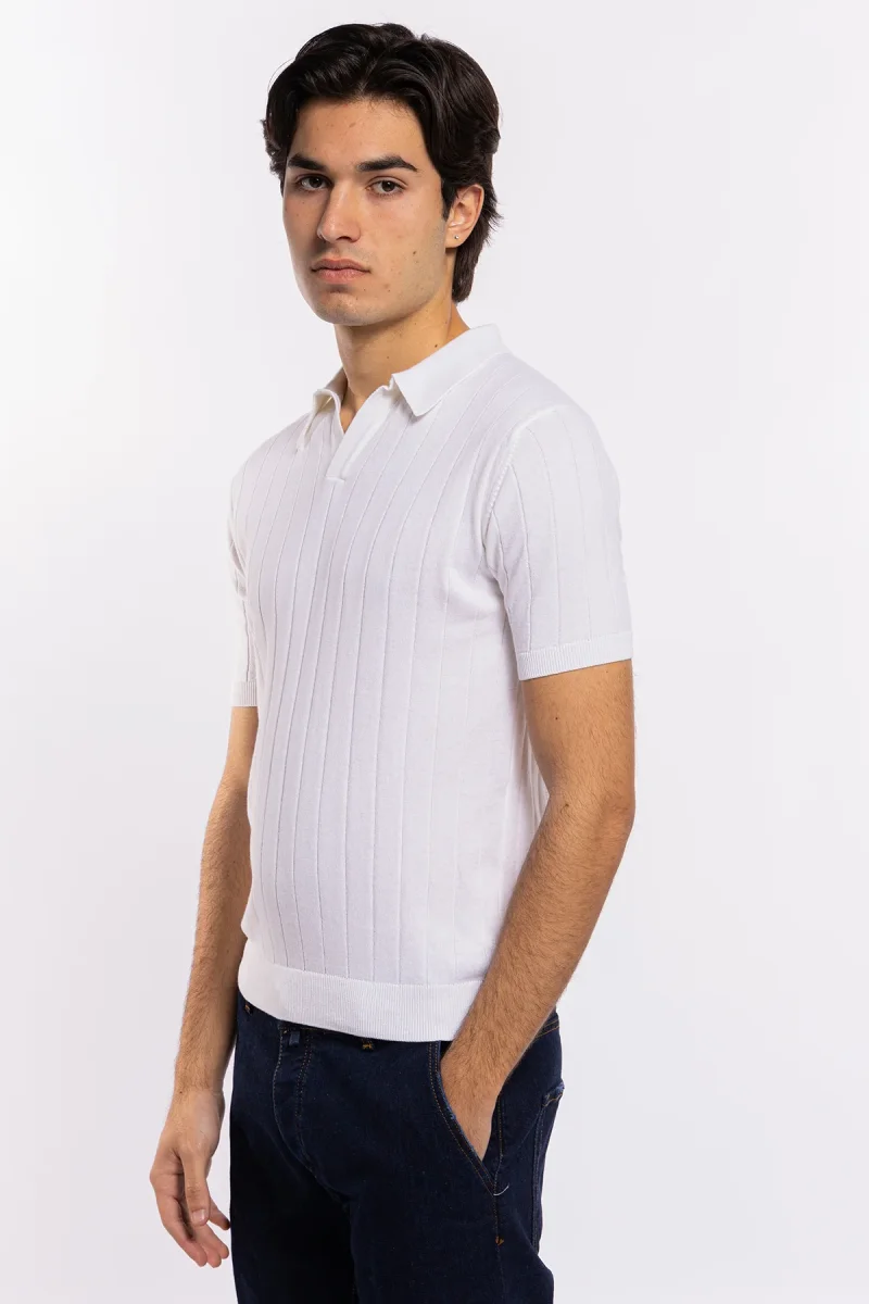 POLO DA UOMO MEZZE MANICHE BIANCA CON TRECCIA RICAMATA INTERNA 100% COTONE DI FILO TINTA UNITA FINEZZA 14