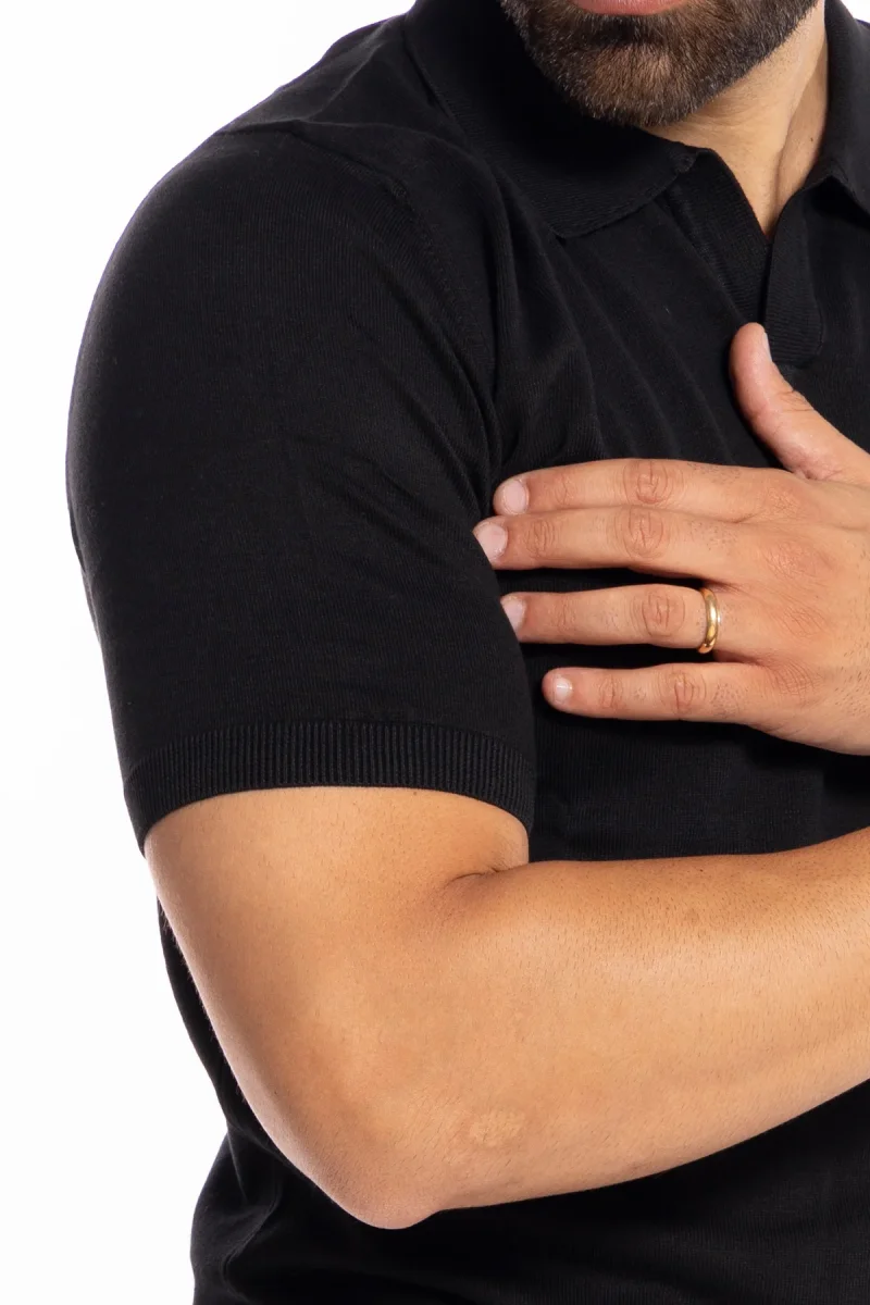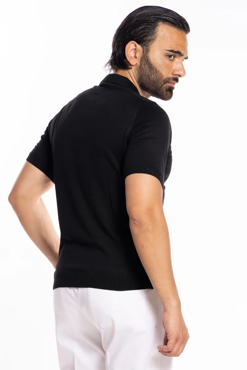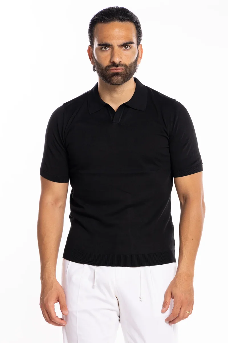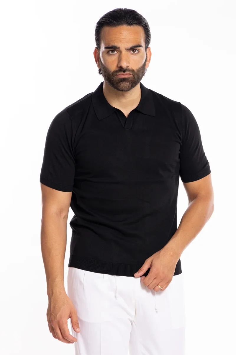 POLO DA UOMO MEZZE MANICHE NERA TINTA UNITA 100% COTONE DI FILO TINTA UNITA FINEZZA 14