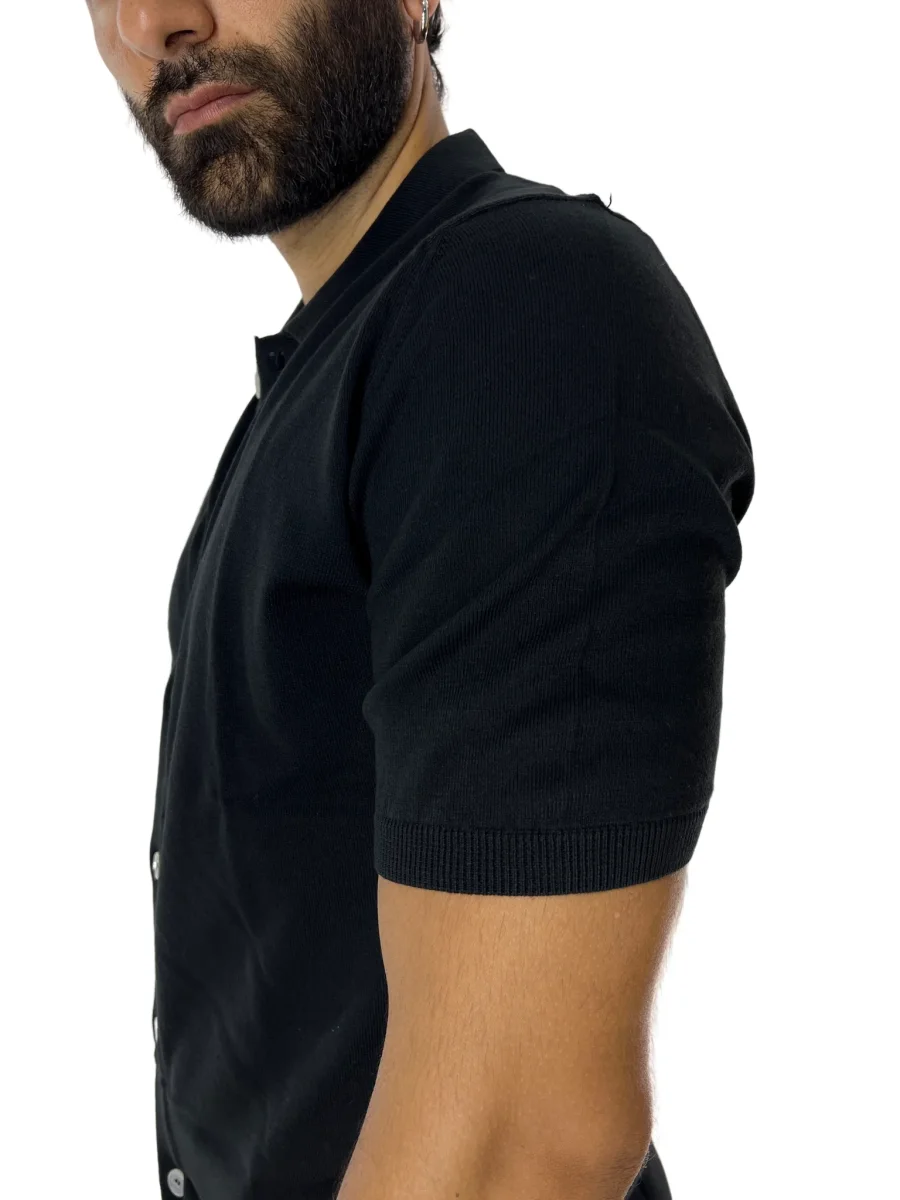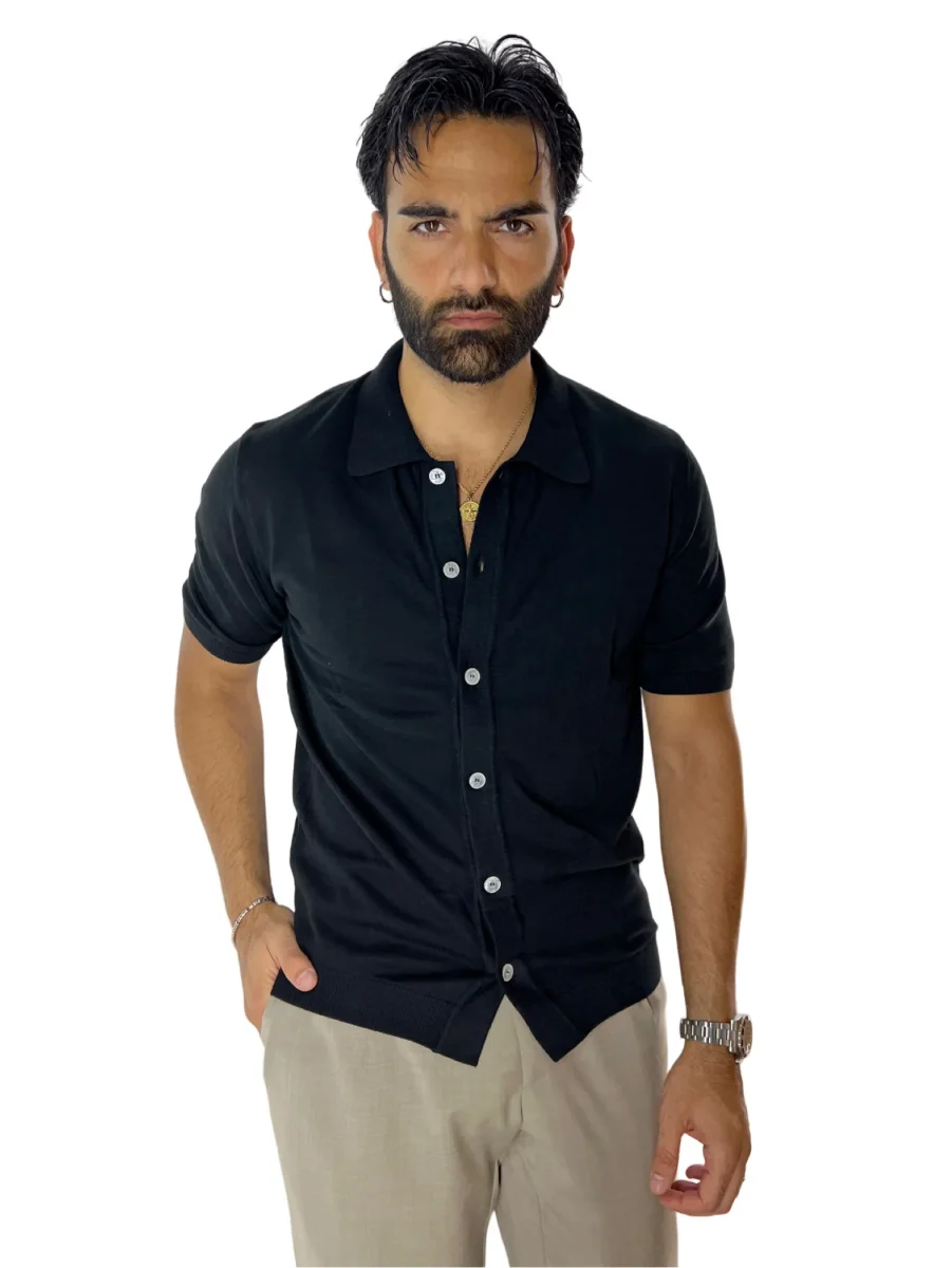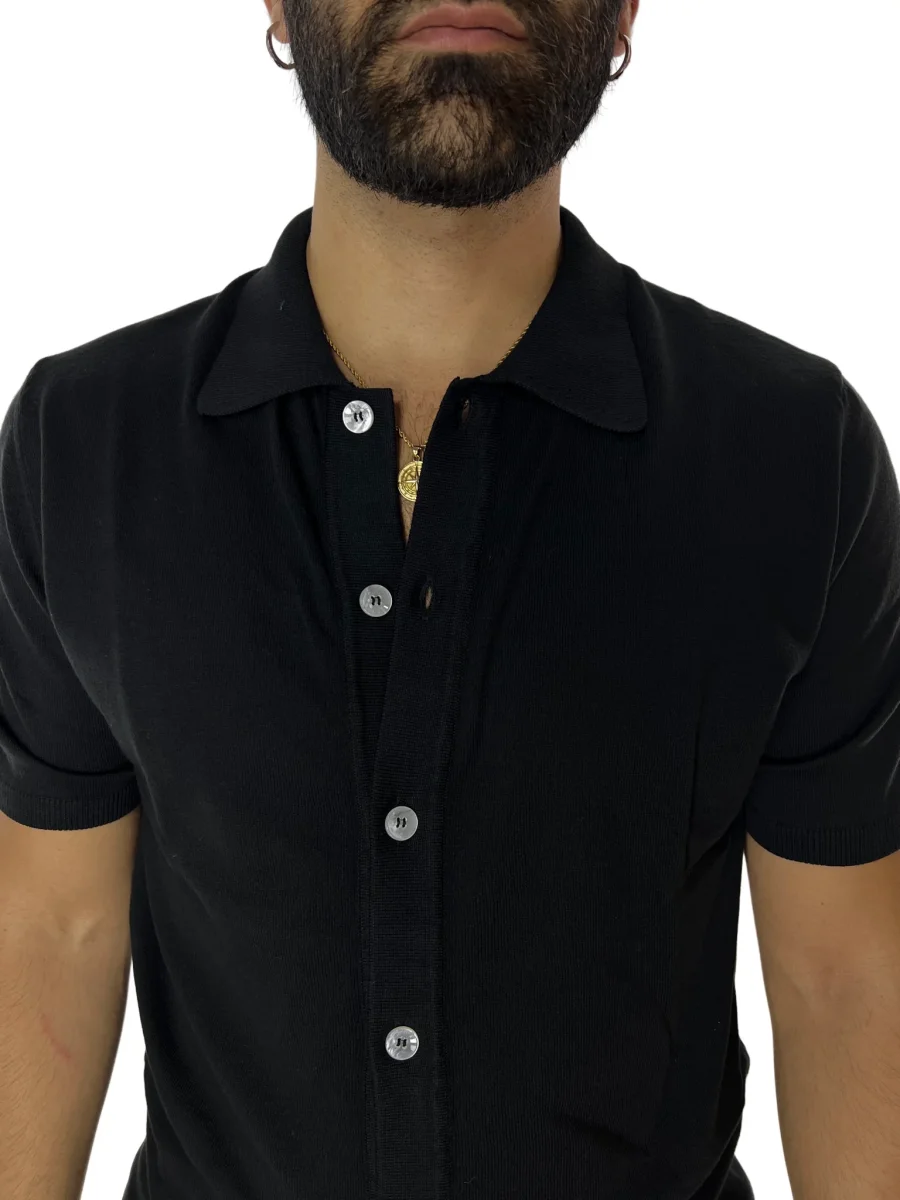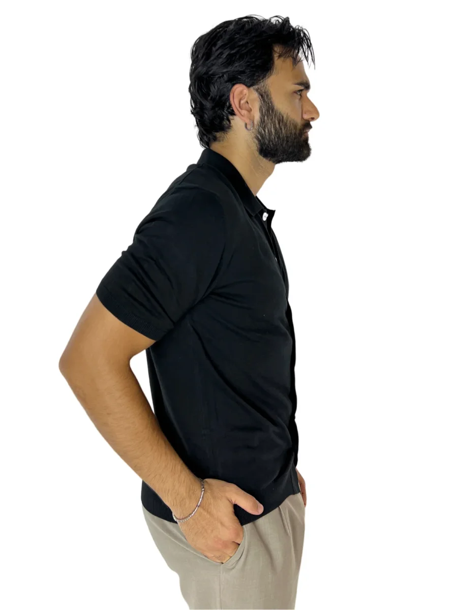 POLO DA UOMO NERA MEZZE MANICHE 100% COTONE DI FILO FINEZZA 14 CON BOTTONI IN CHISURA