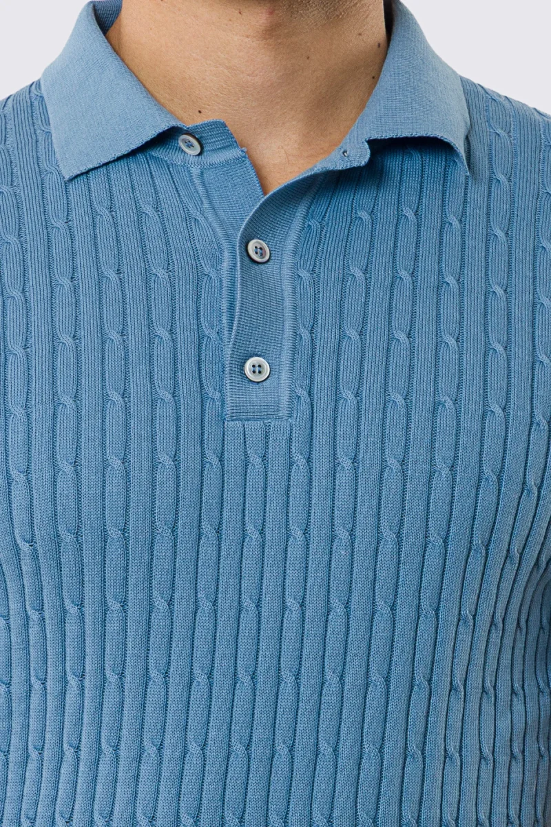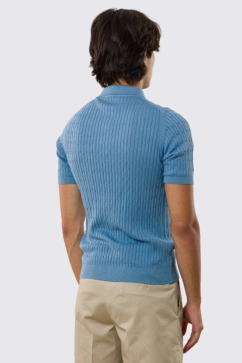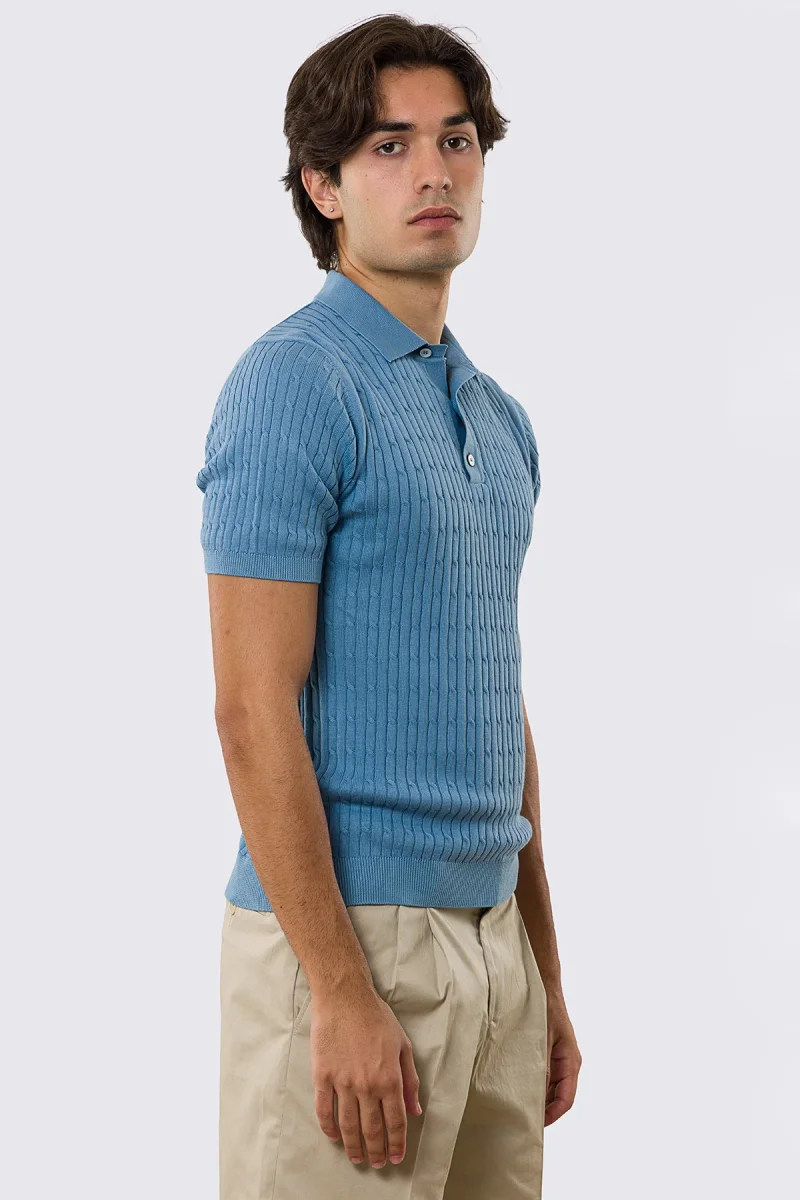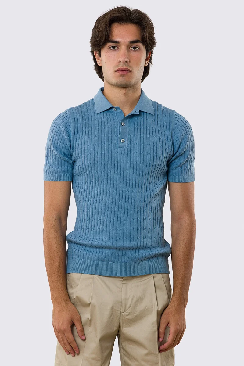 Polo mezze maniche azzurra da uomo con treccia interna ed elastici sulle maniche e sul fondo 100% cotone di filo tinta unita