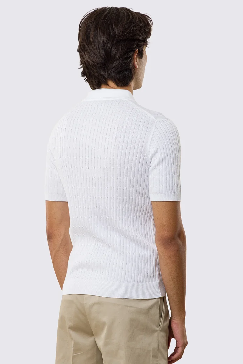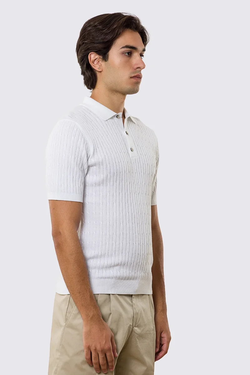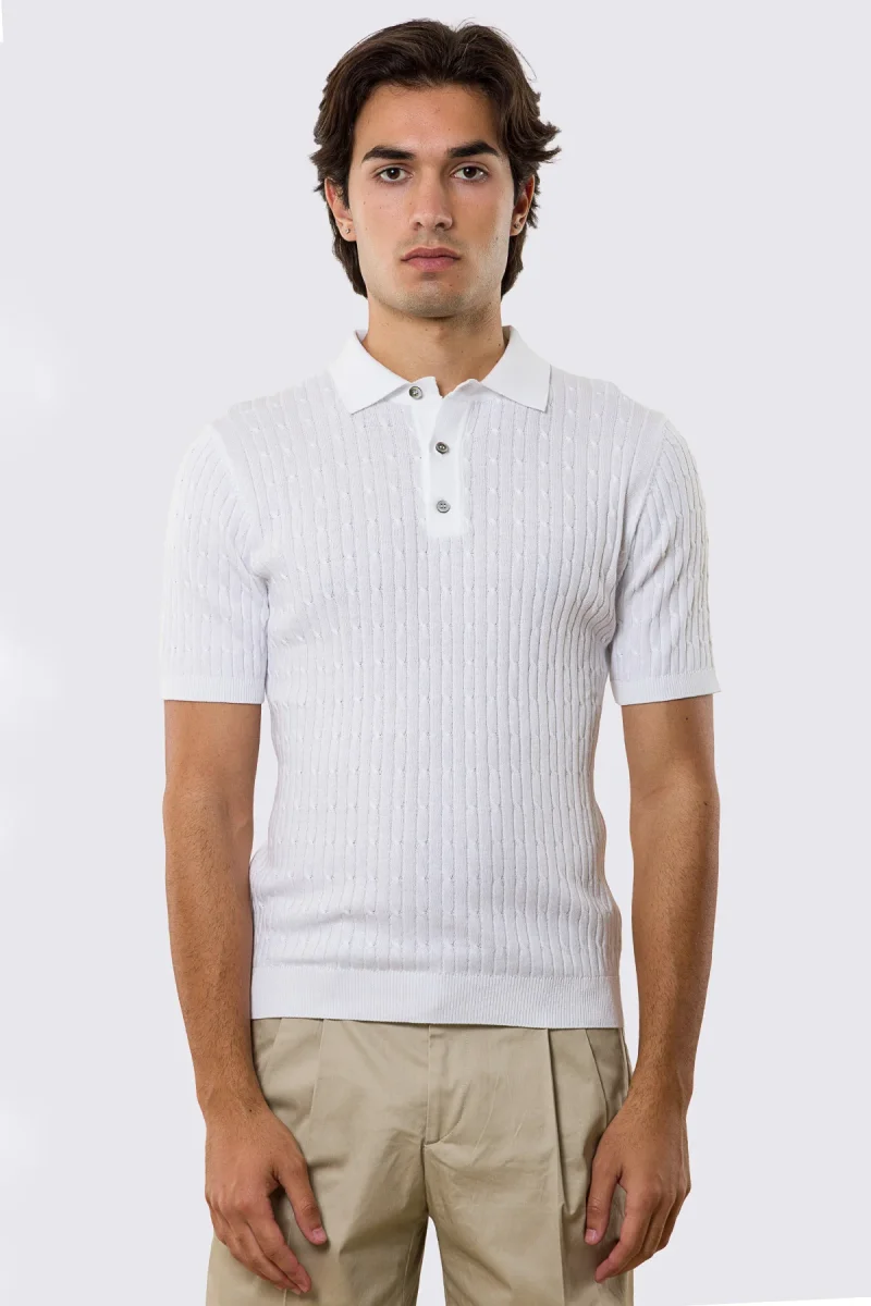 Polo mezze maniche bianca da uomo con treccia interna ed elastici sulle maniche e sul fondo 100% cotone di filo tinta unita