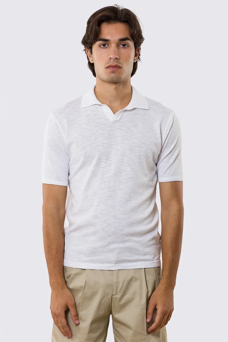 Polo mezze maniche bianca da uomo finezza 14 con elastici sulle maniche e sul fondo 100% cotone di filo tinta unita
