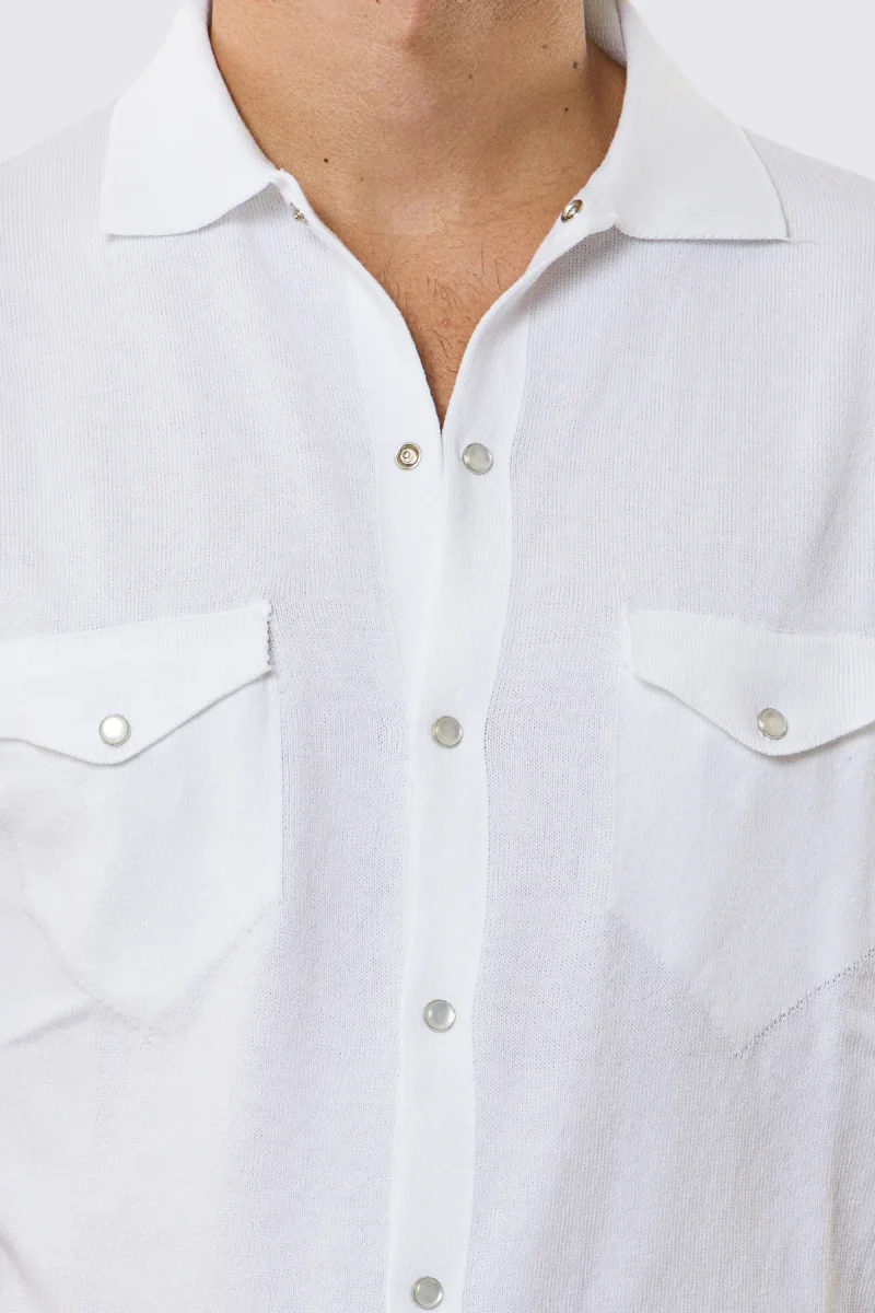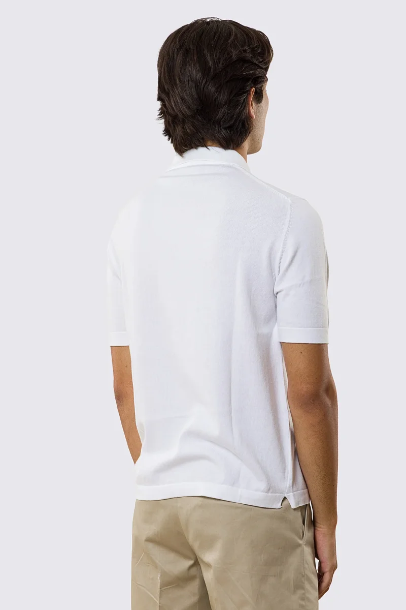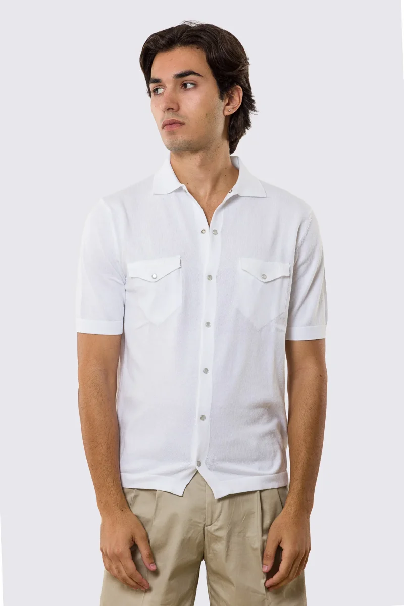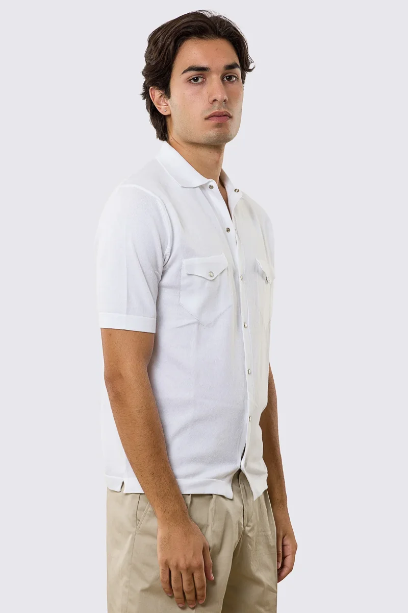 Polo mezze maniche bianca modello con tasconi e bottoni clip in perla da uomo finezza 14 con elastici sulle maniche e sul fondo 100% cotone di filo tinta unita
