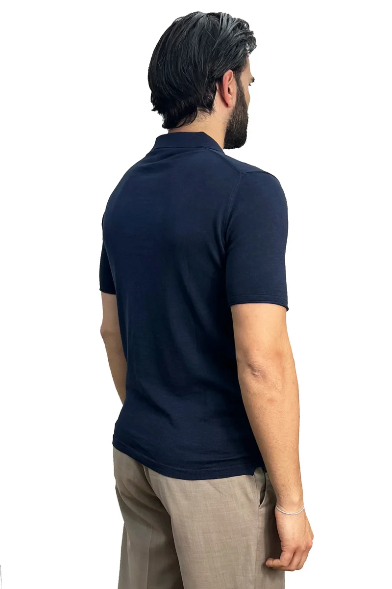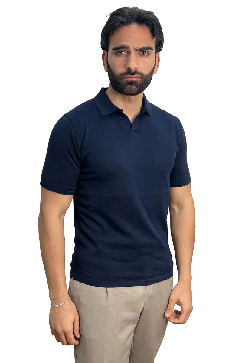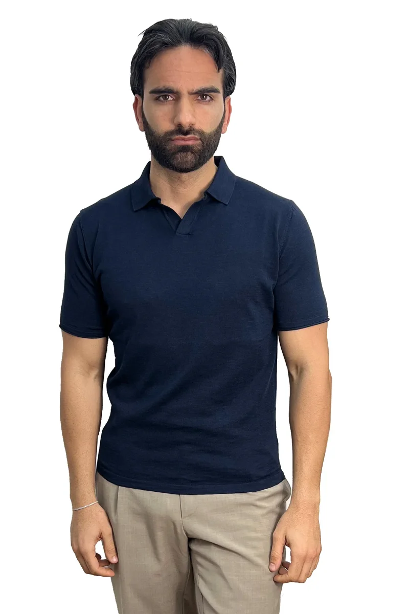 Polo mezze maniche blu da uomo finezza 14 con elastici sulle maniche e sul fondo 100% cotone di filo tinta unita
