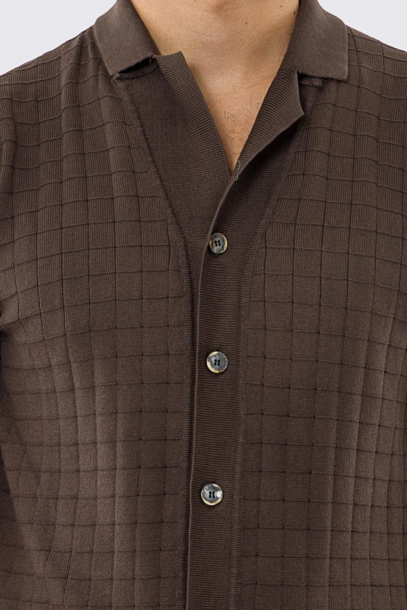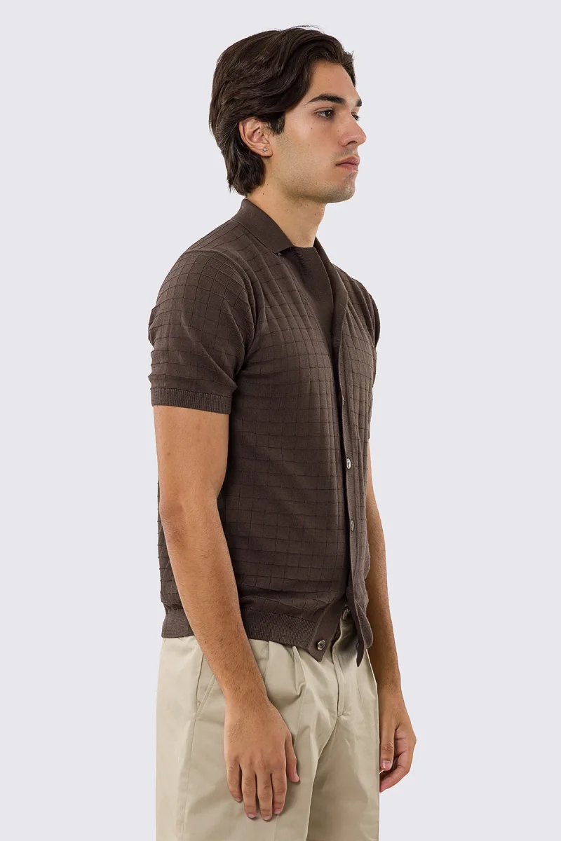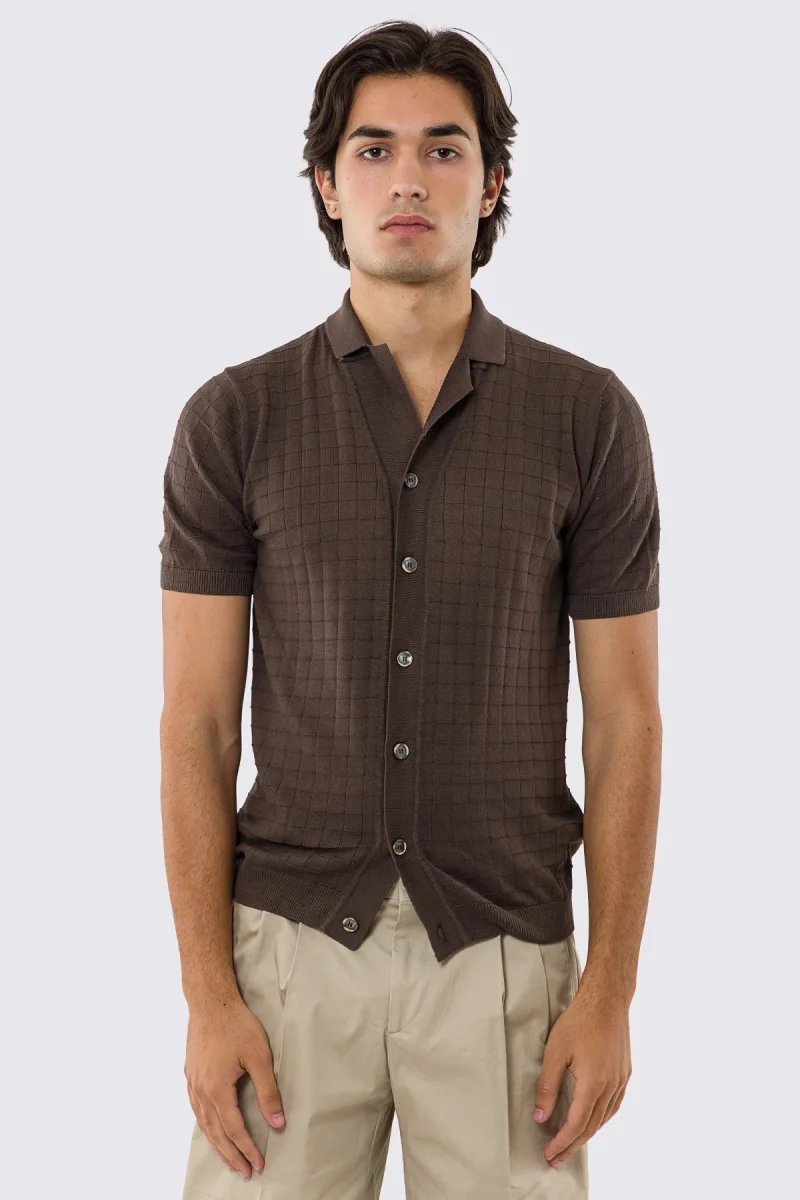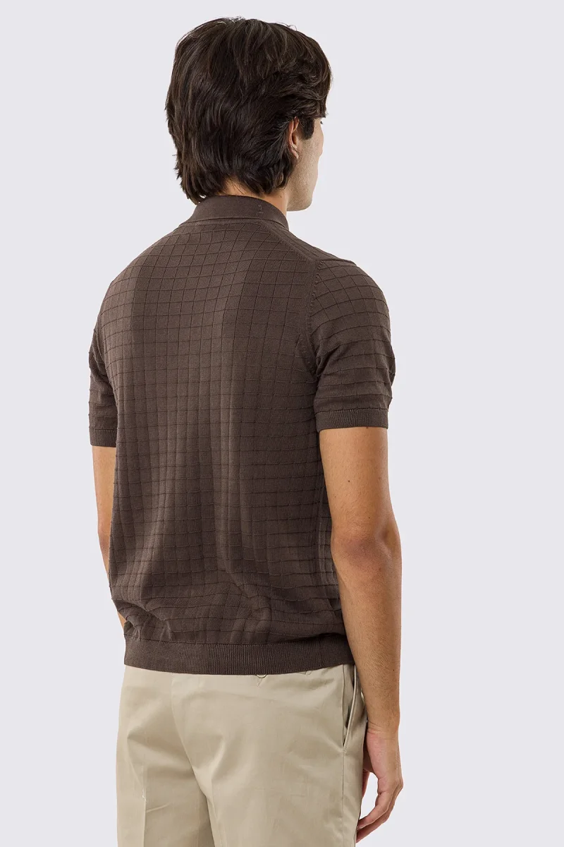 Polo mezze maniche marrone da uomo con treccia quadrata interna ed elastici sulle maniche e sul fondo 100% cotone di filo tinta unita