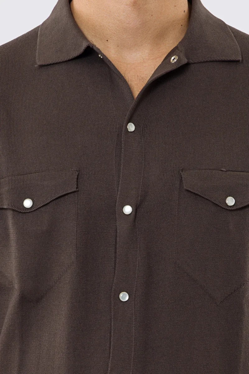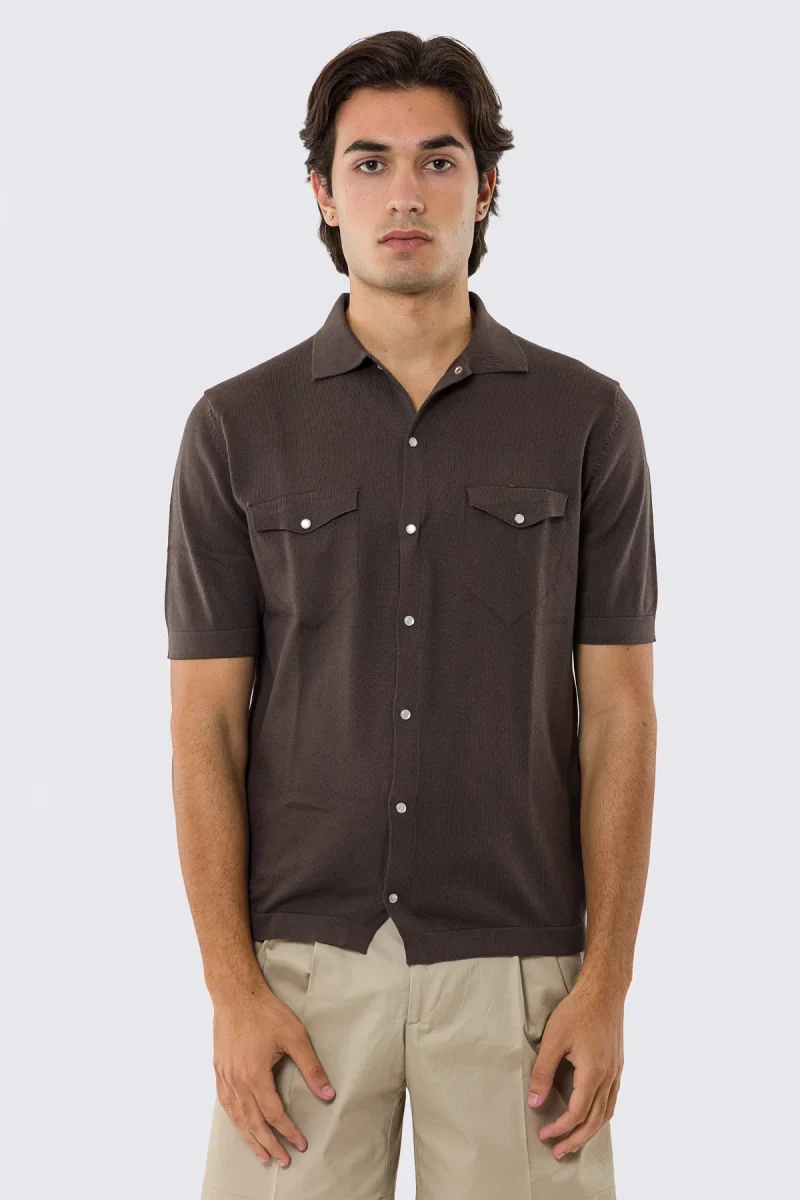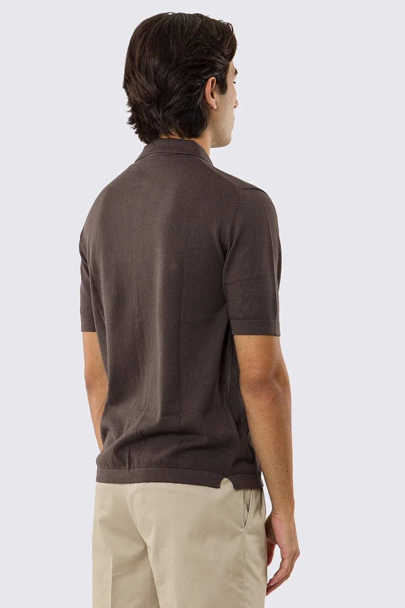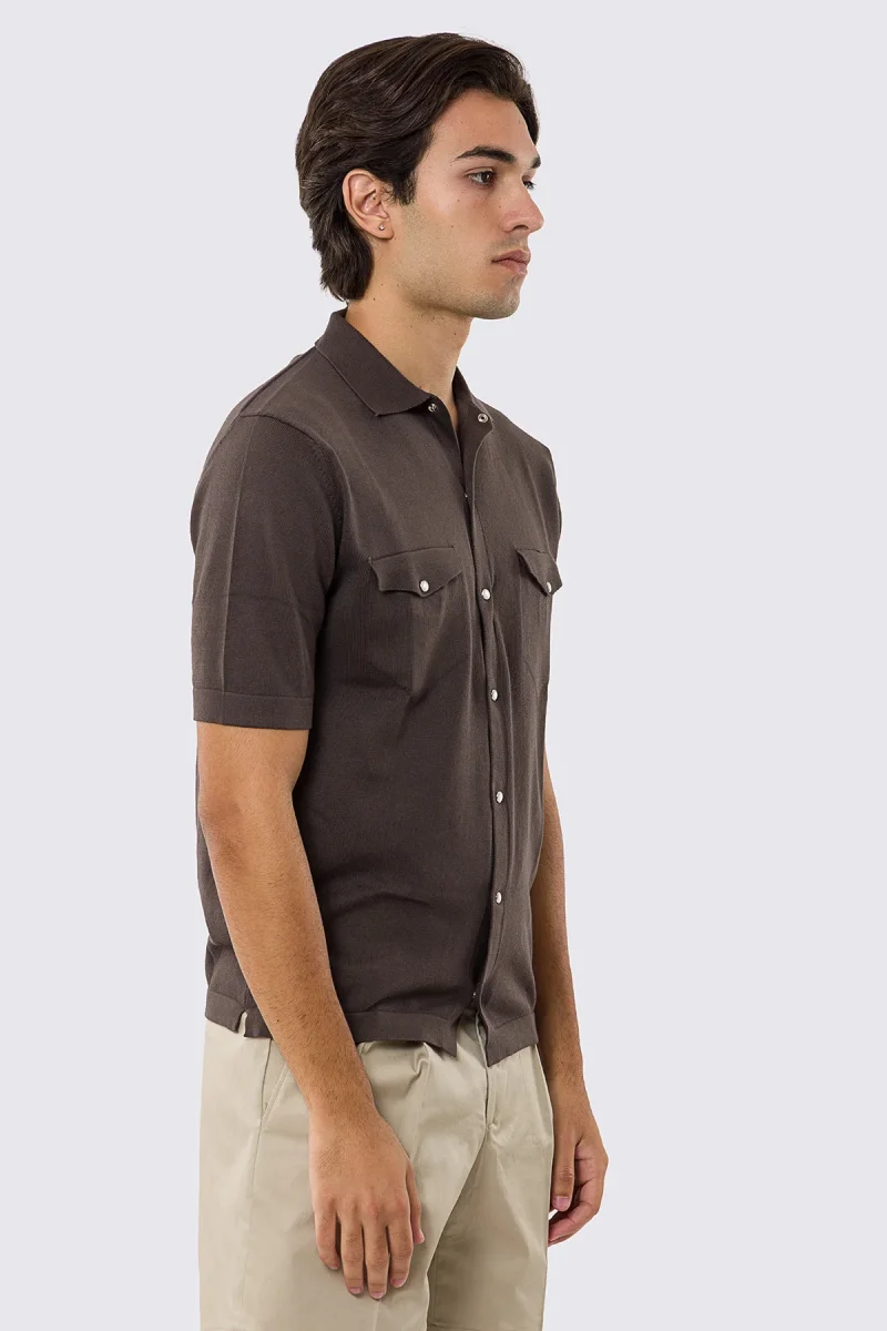 Polo mezze maniche marrone modello con tasconi e bottoni clip in perla da uomo finezza 14 con elastici sulle maniche e sul fondo 100% cotone di filo tinta unita