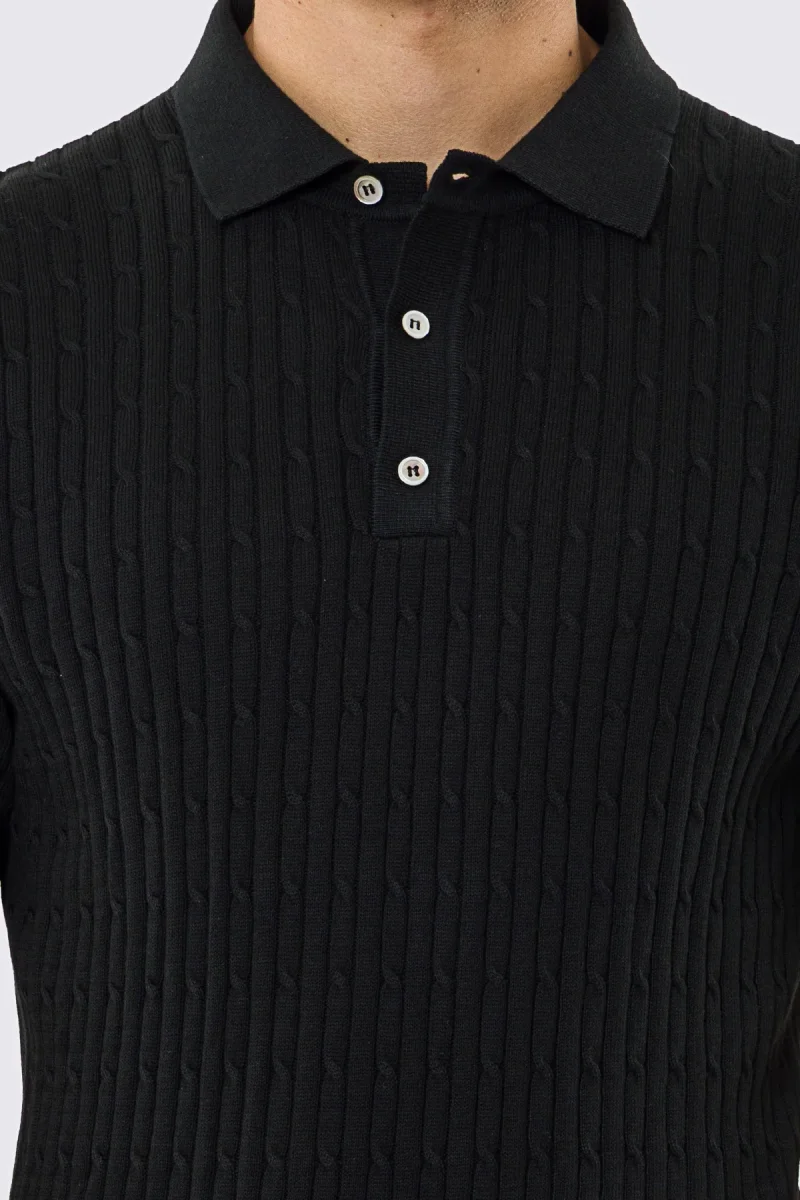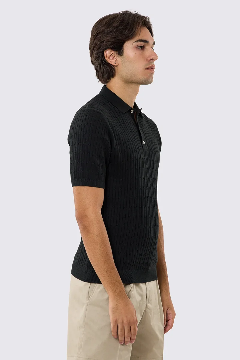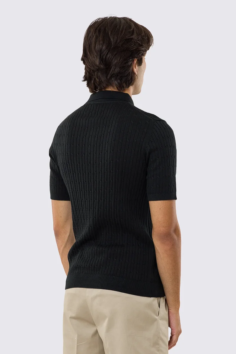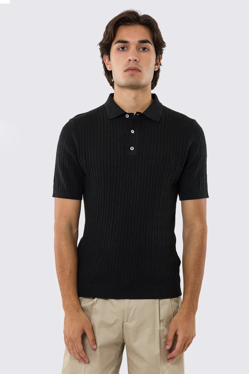 Polo mezze maniche nera da uomo con treccia interna ed elastici sulle maniche e sul fondo 100% cotone di filo tinta unita
