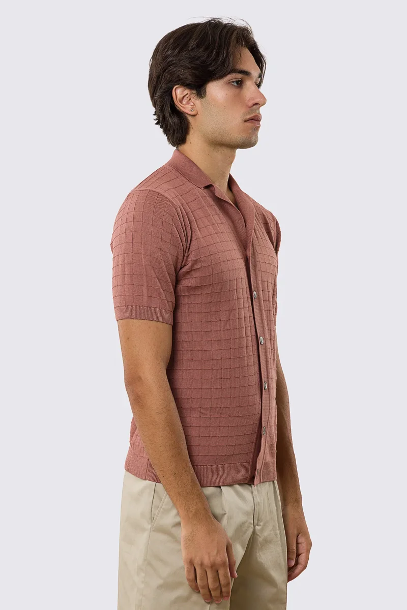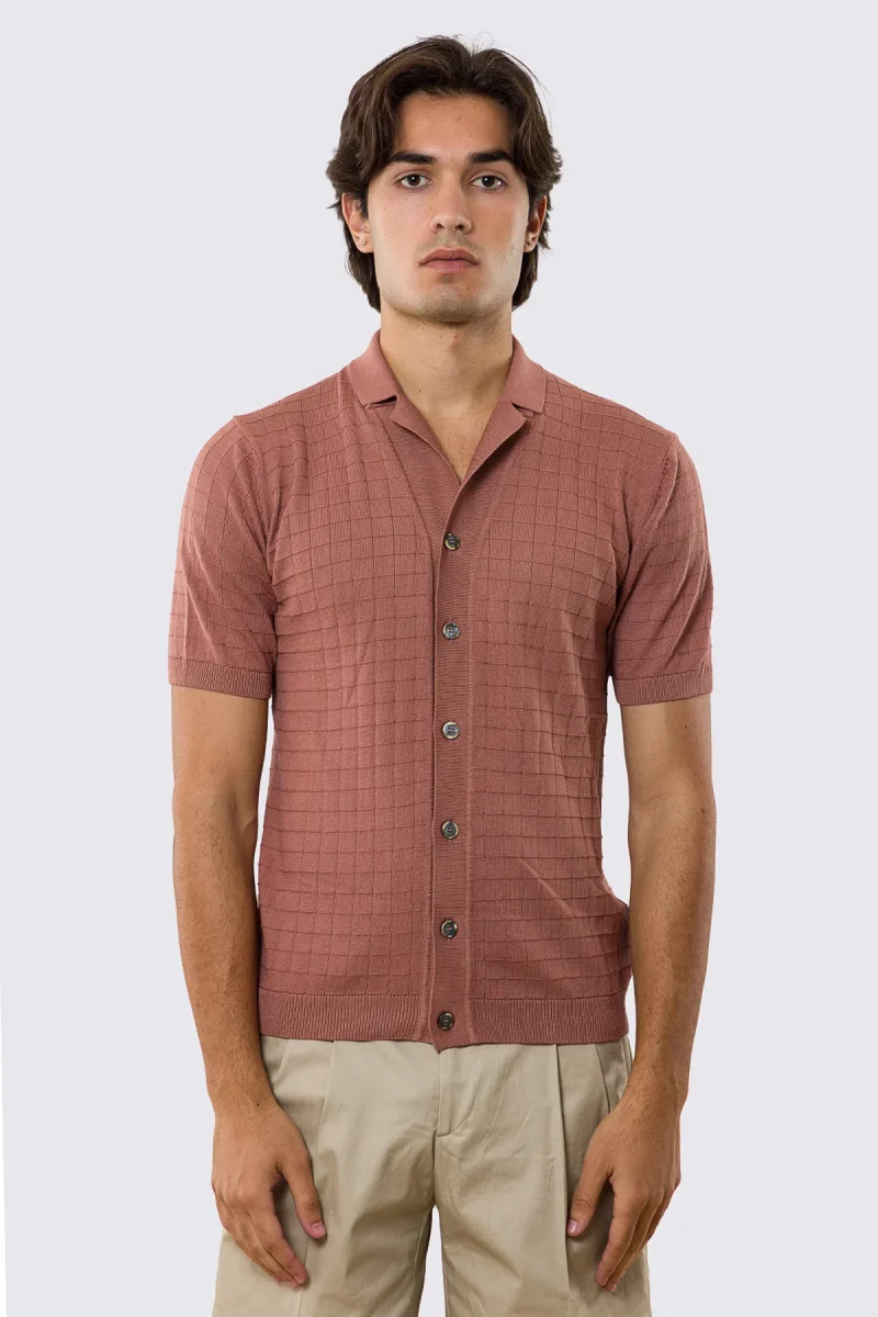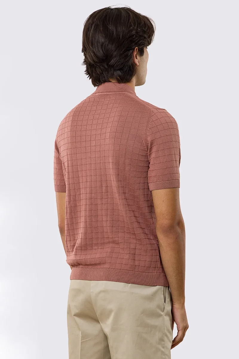 Polo mezze maniche rosa da uomo con treccia quadrata interna ed elastici sulle maniche e sul fondo 100% cotone di filo tinta unita