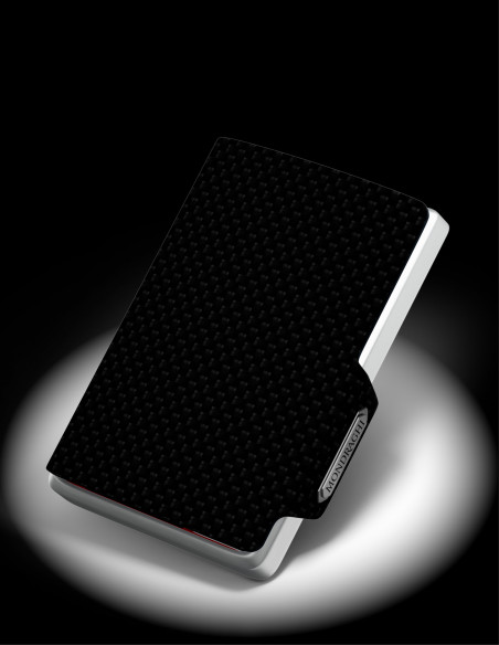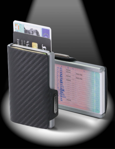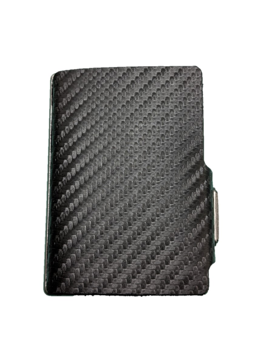 Portatessere e portabanconote in vera pelle con finitura Carbon. Formato mini, compatto e tascabile.