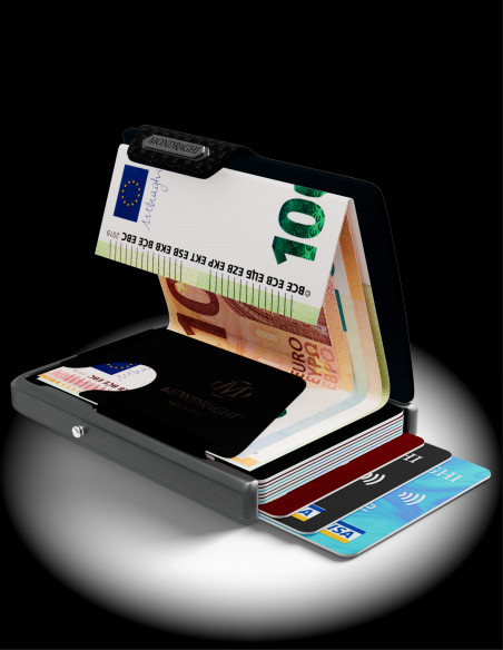 È inclusa la clip portabanconote* con protezione RFID e NFC a 360°, per massima sicurezza contro furto di dati e clonazione di carte.