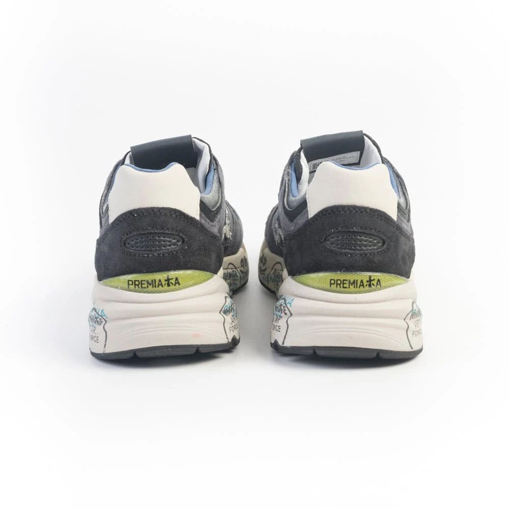 Sneakers Mase di Premiata realizzate in tessuto delavè e camoscio di colore blu. Dettagli in pelle di colore blu e bianco. Lacci in morbido cotone in nuance. Suola ergonomica super leggera in EVA, decorata con stampa pattern originale. Soletta interna rimovibile.