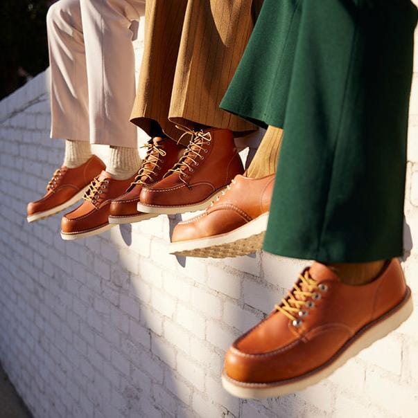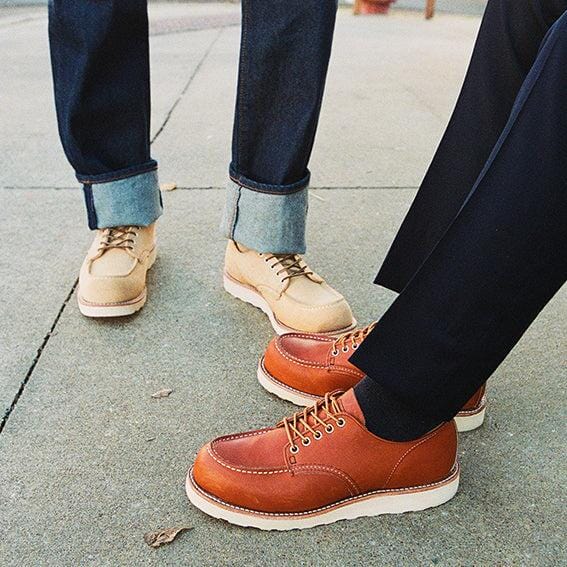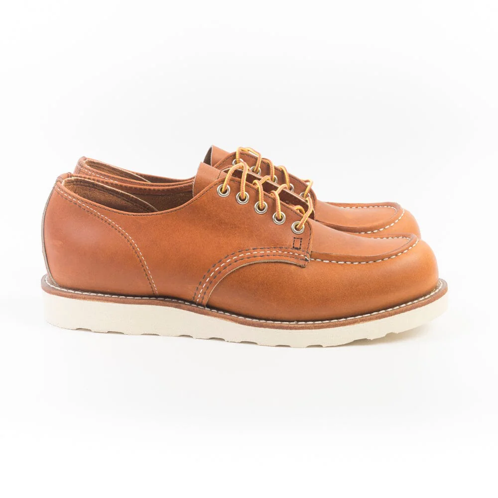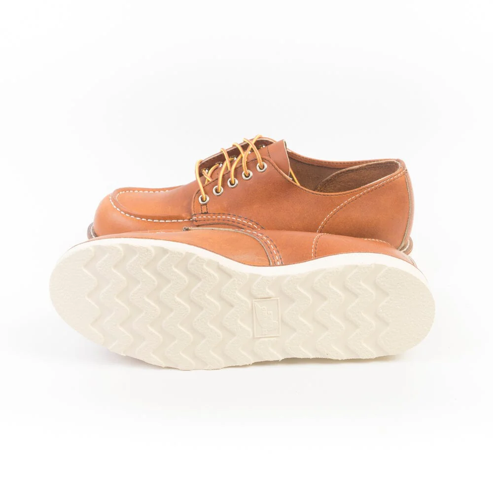 Scarpa allacciata Moc Toe di Red Wing, realizzata in pelle di colore cuoio, ispirata agli iconici stivaletti 875 e 877. Cinque fori, lacci in tessuto tecnico in nuance. Lavorazione Goodyear, sottopiede in pelle, occhielli in nichel, suola in gomma.
