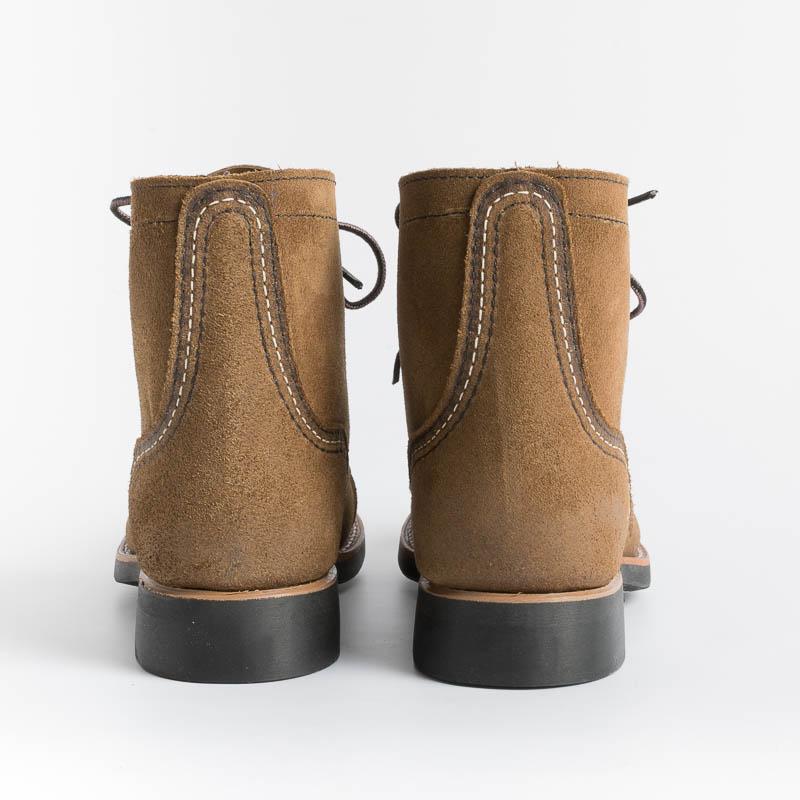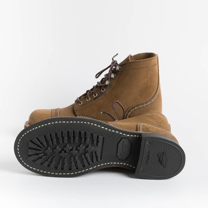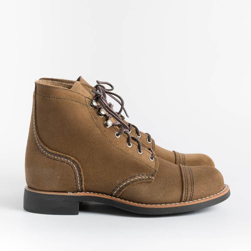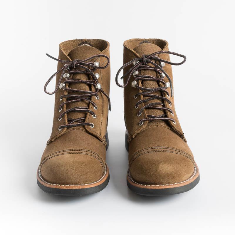 L’iconico stivaletto Iron Ranger di Red Wing Shoes, qui realizzato in pelle scamosciata di colore marrone, è una classica scarpa unisex a punta rotonda, ispirato alla Mesabi Iron Ranger nel Minnesota del Nord, una zona aspra conosciuta per le sue miniere di ferro. Gli uomini orgogliosi che lavorano in queste linee vengono definiti “Iron Rangers”, sottolineando la loro mentalità avventurosa.