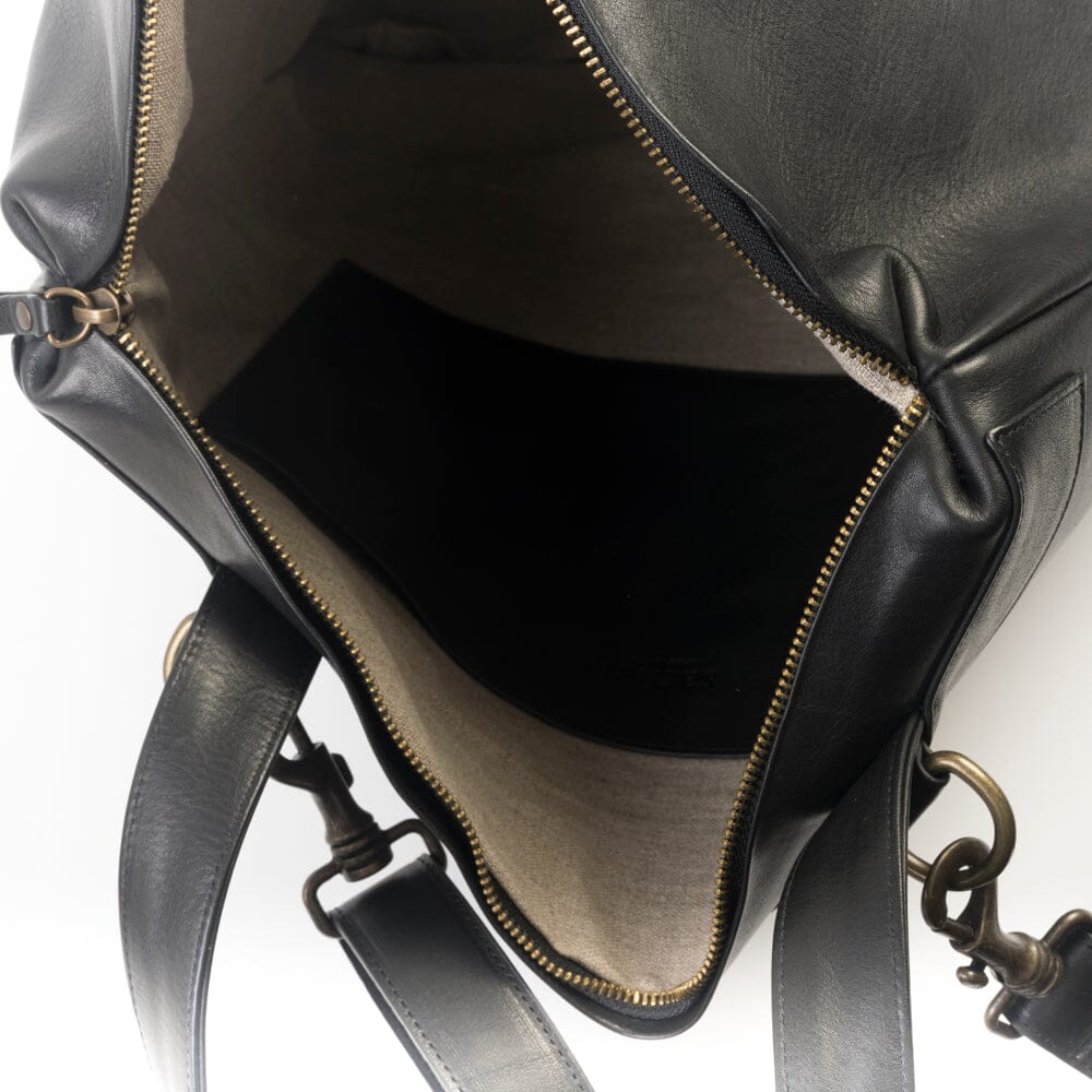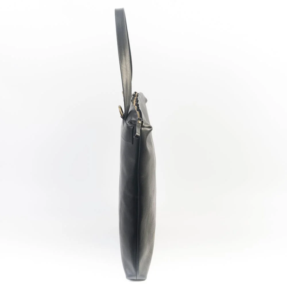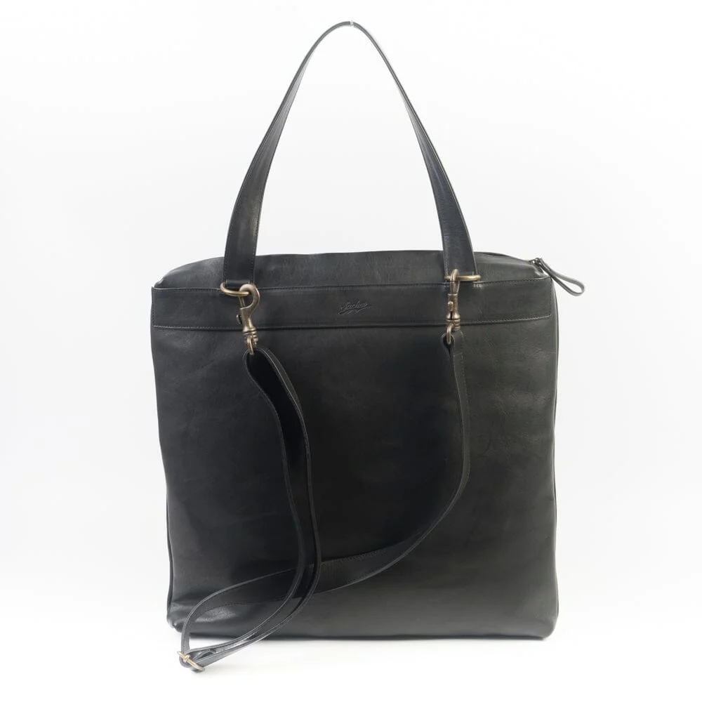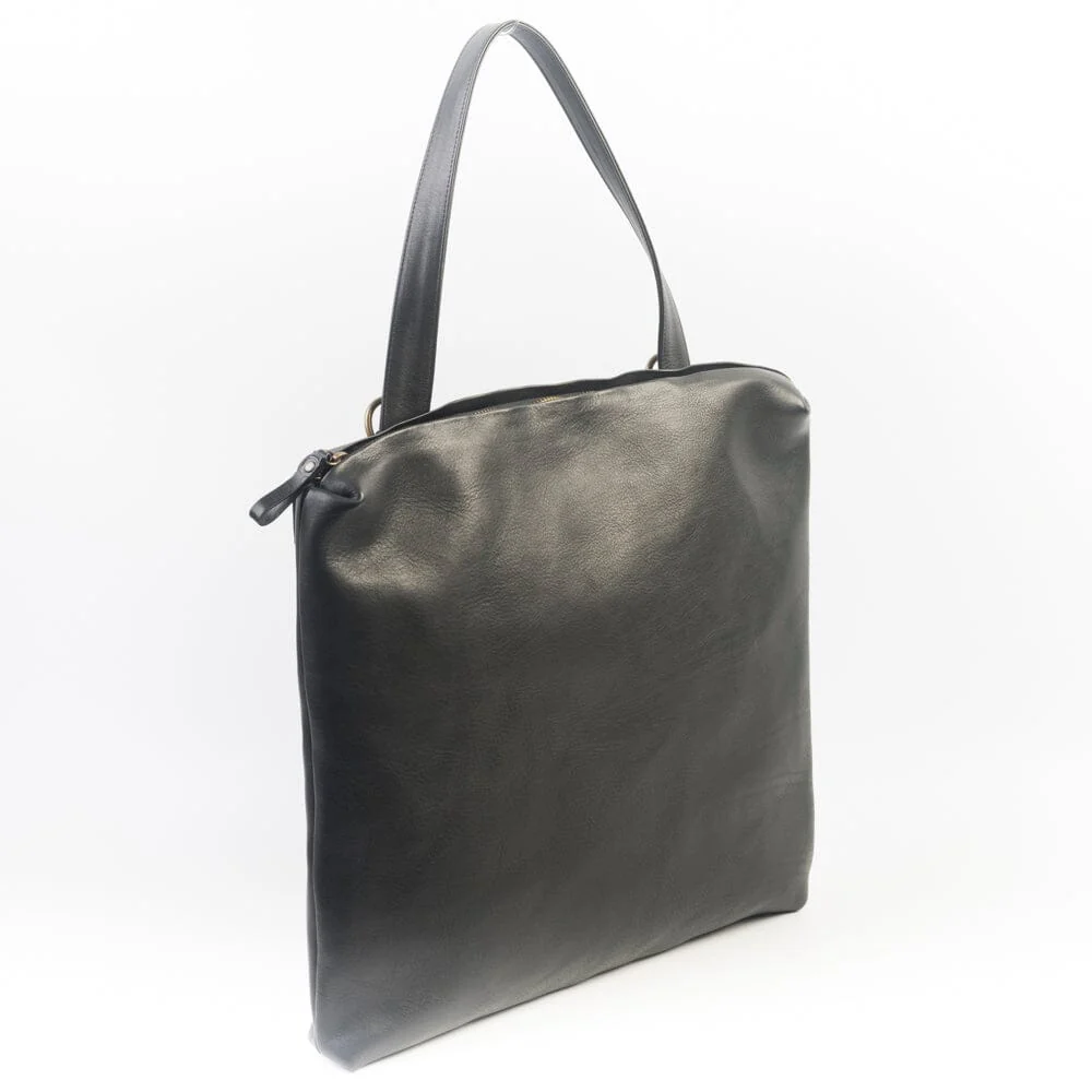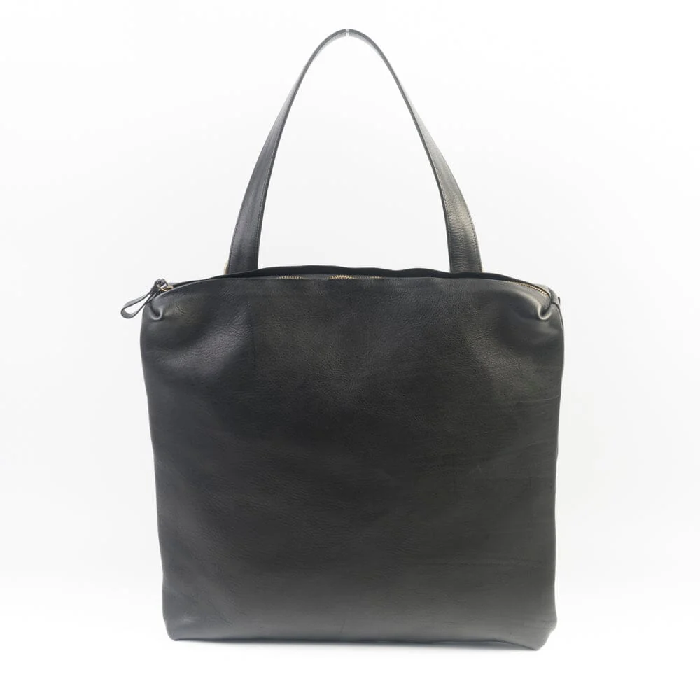 Borsa a spalla e tracolla di Sachet disponibile in morbida pelle di vitello martellata di colore nero. Unica tasca con chiusura con zip superiore e tiretti in pelle, intero completamente foderato in tessuto. Unico manico in pelle. Tracolla removibile con moschettoni in ottone per uso della borsa a tracolla. Logo Sachet impresso sul fronte. Sacca anti-polvere.