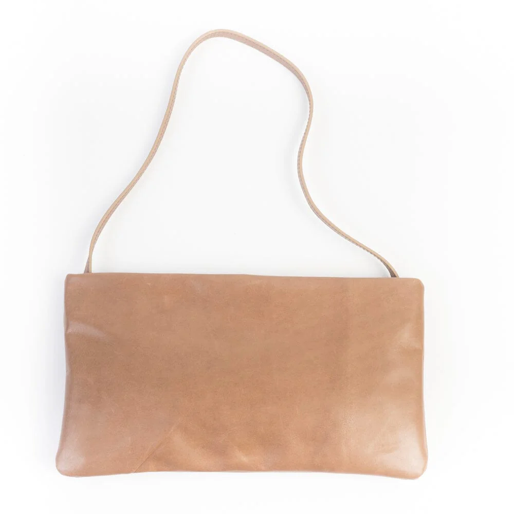Raffinata pochette di Sachet, realizzata in pelle di colore tabacco. Chiusura con zip centrale. Interno foderato in tessuto. Tracolla a spalla in pelle in nuance.