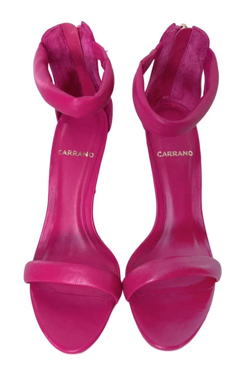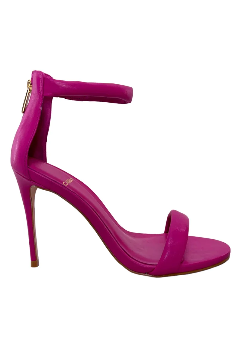 Sandalo donna in pelle minimal tacco a spillo bracciale elastico chiusura cerniera retro punta rotonda