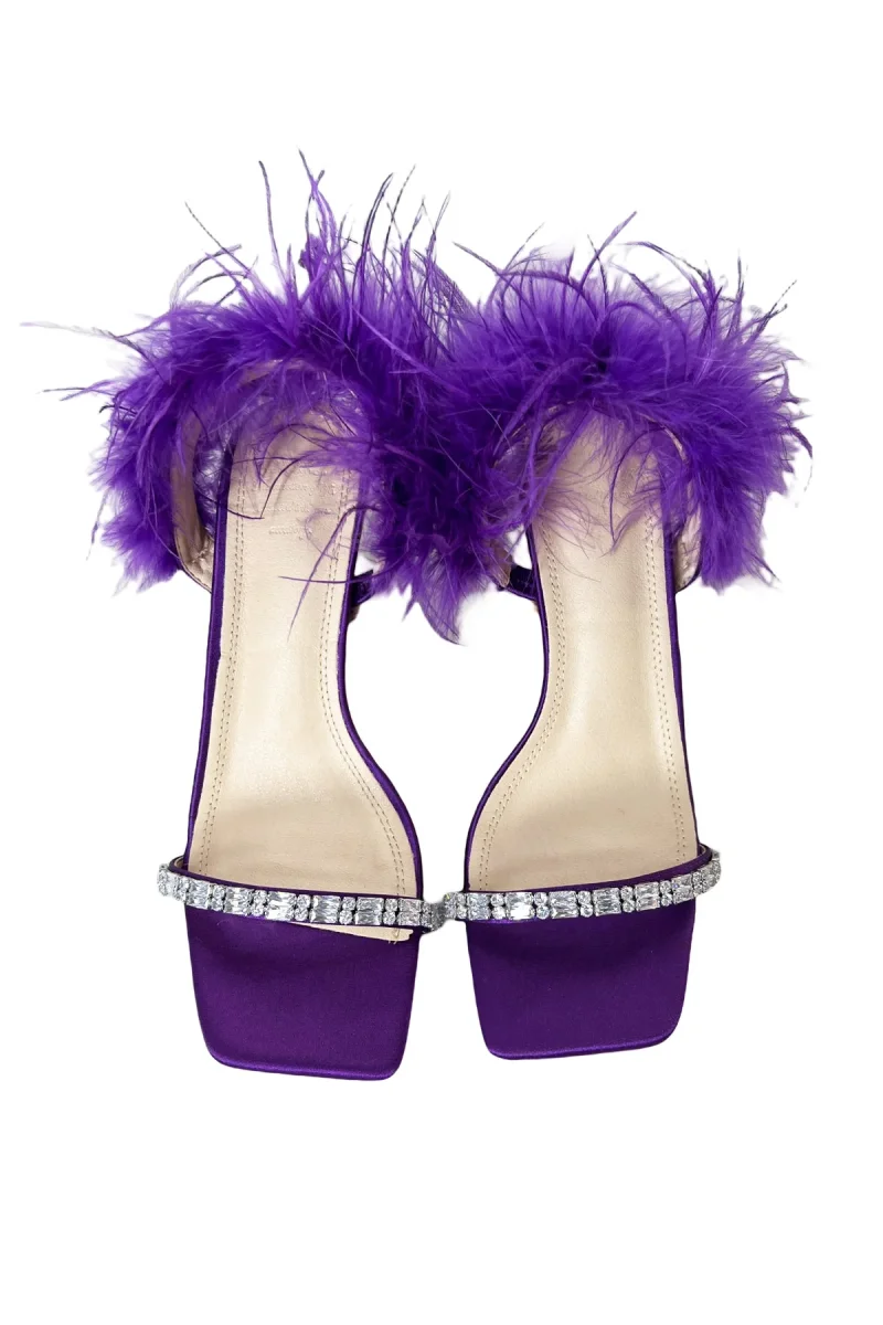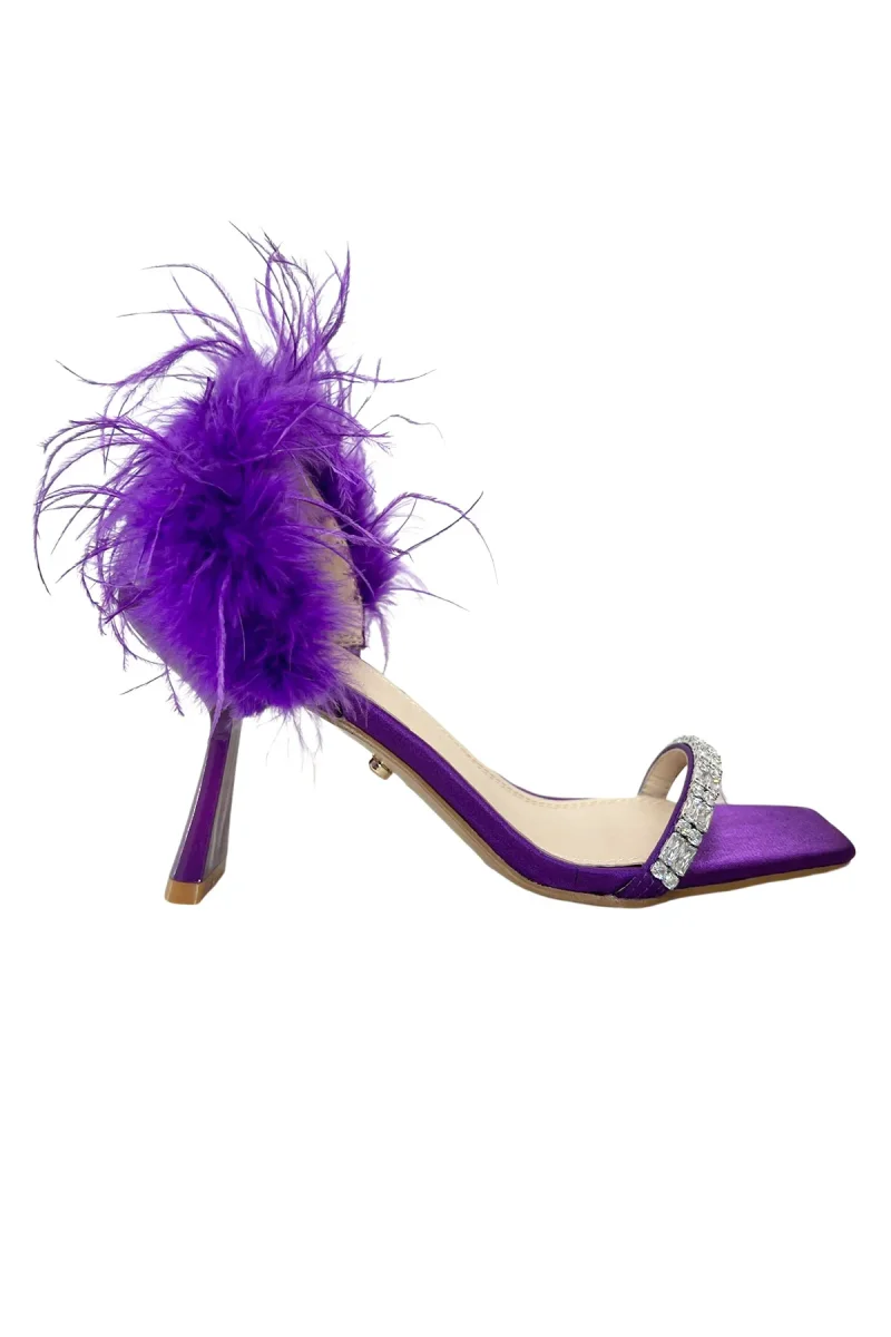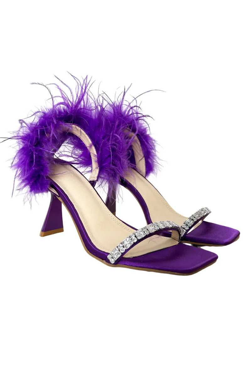 Recensisci per primo “Sandalo donna viola in satin lucido fascia con pietree piuma”