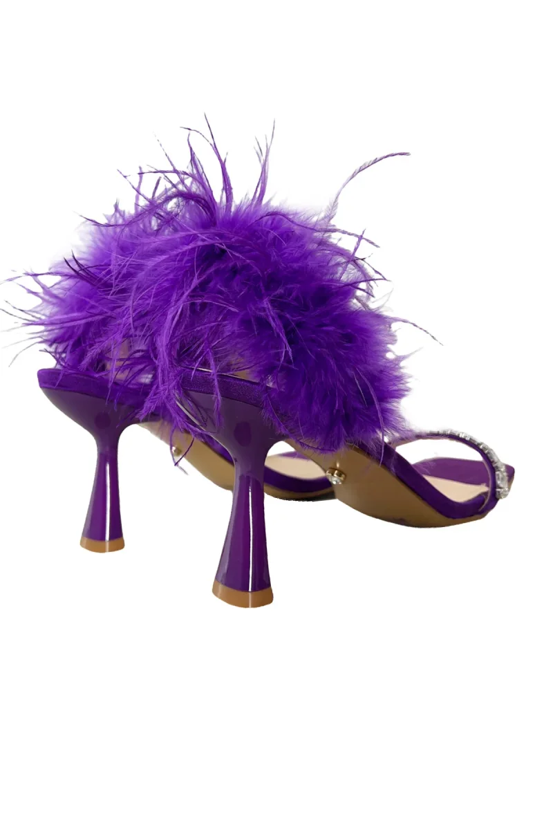 Sandalo donna viola con dettaglio piuma