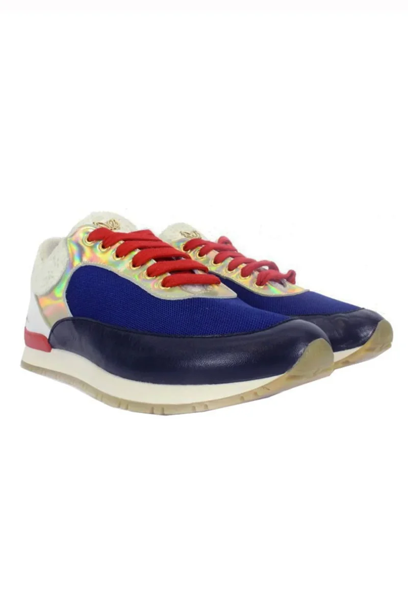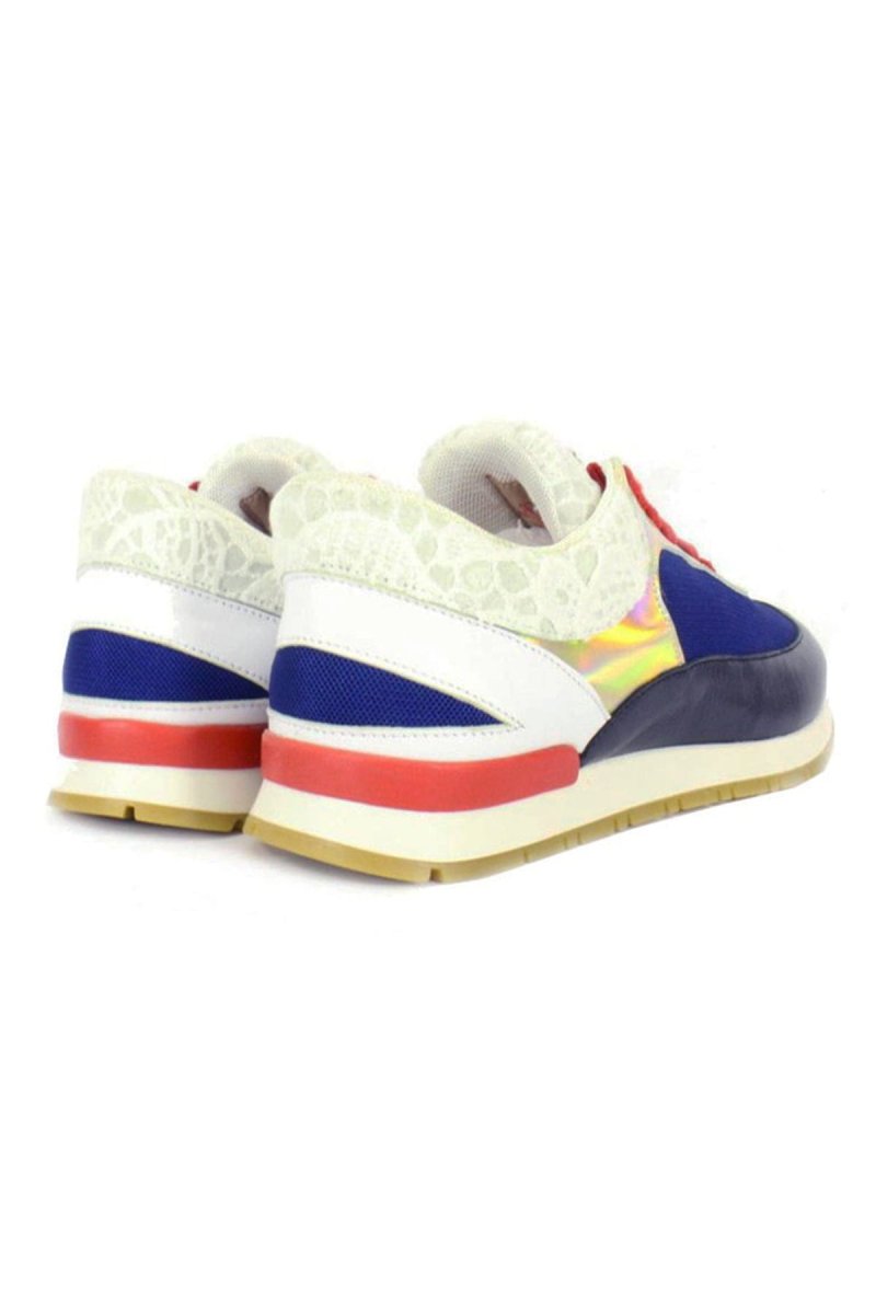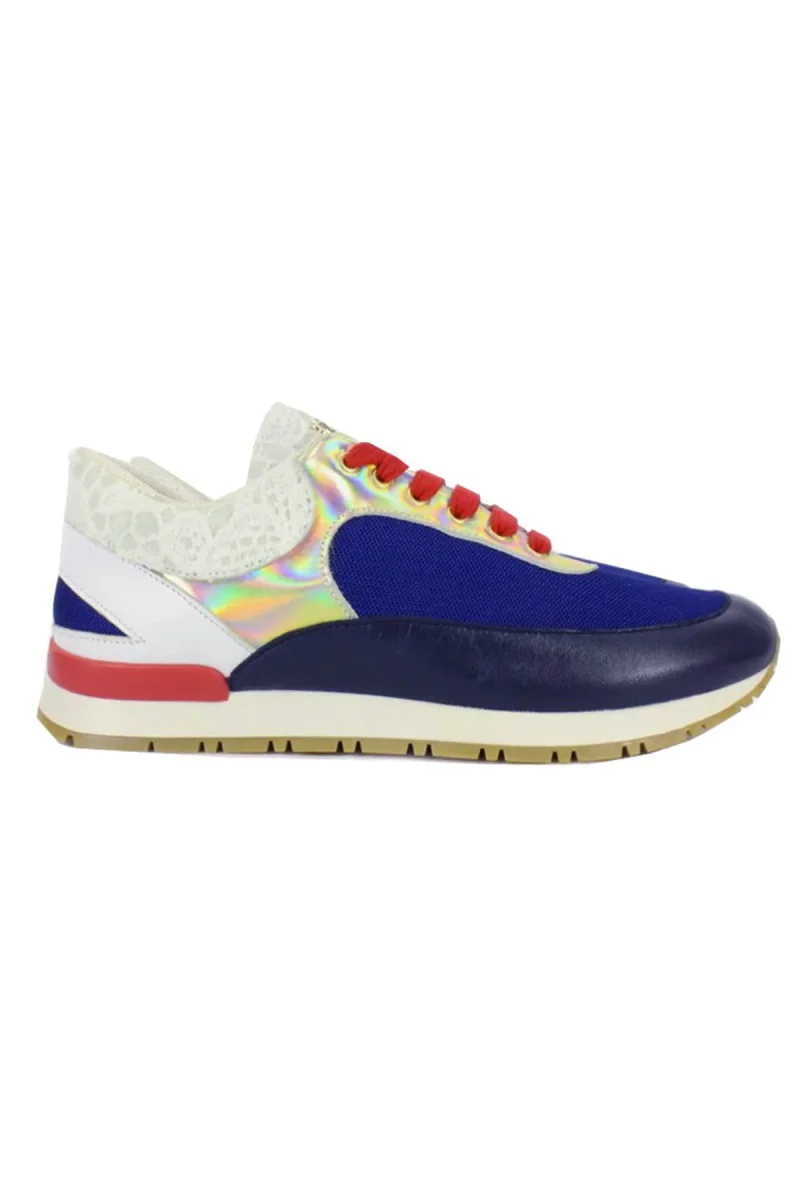 Scarpe casual da donna estive modello sneakers multicolor in tela e pelle e con suola in gomma
